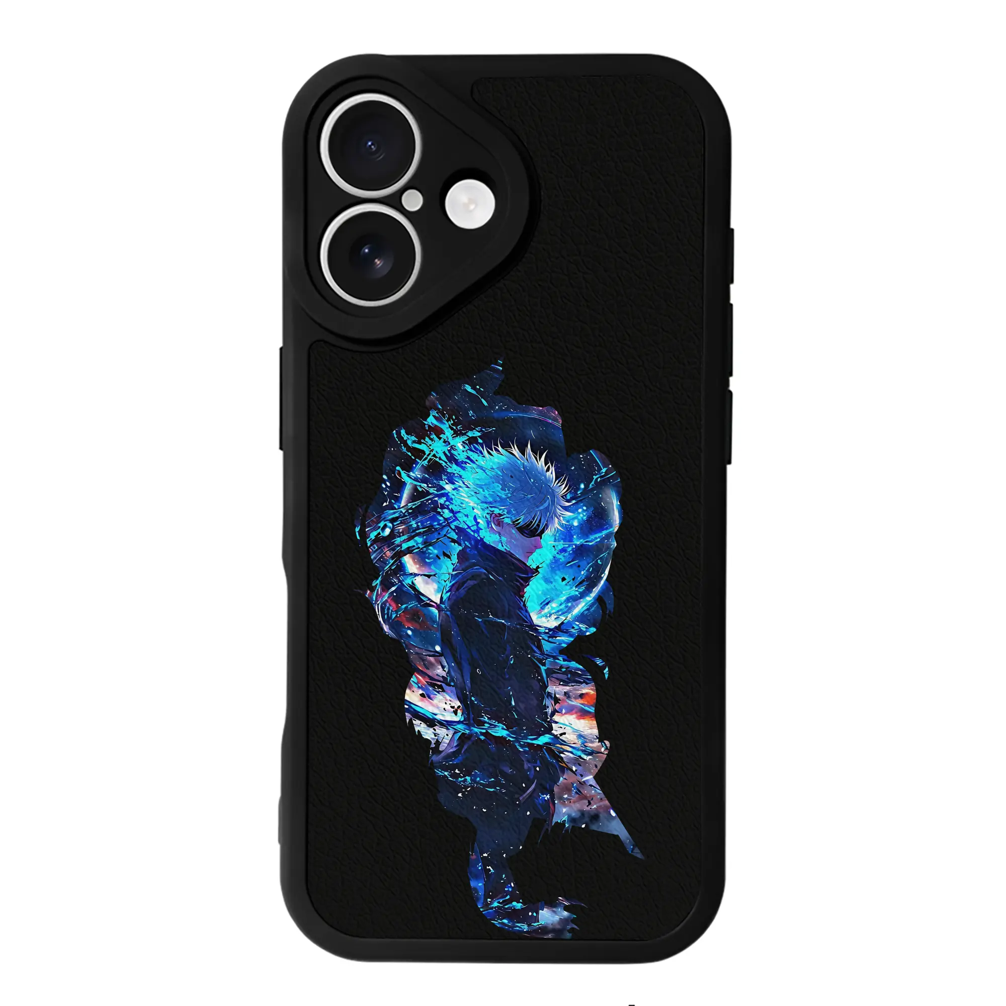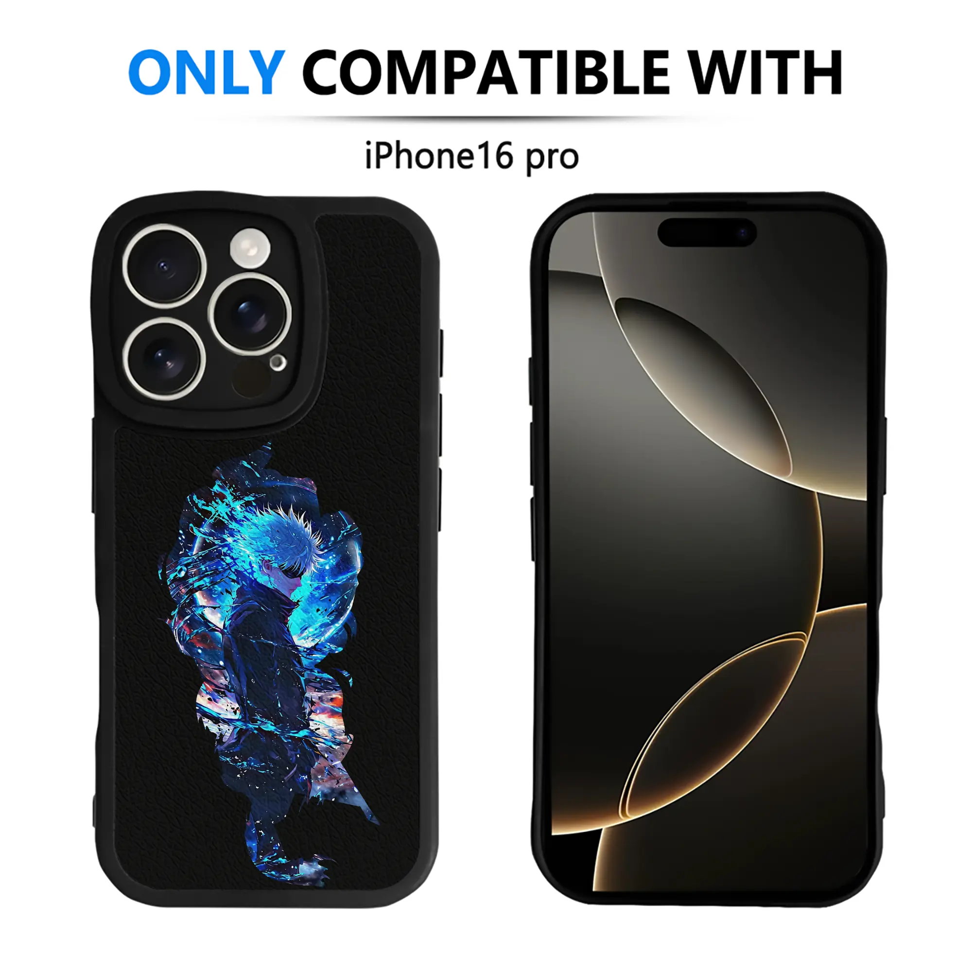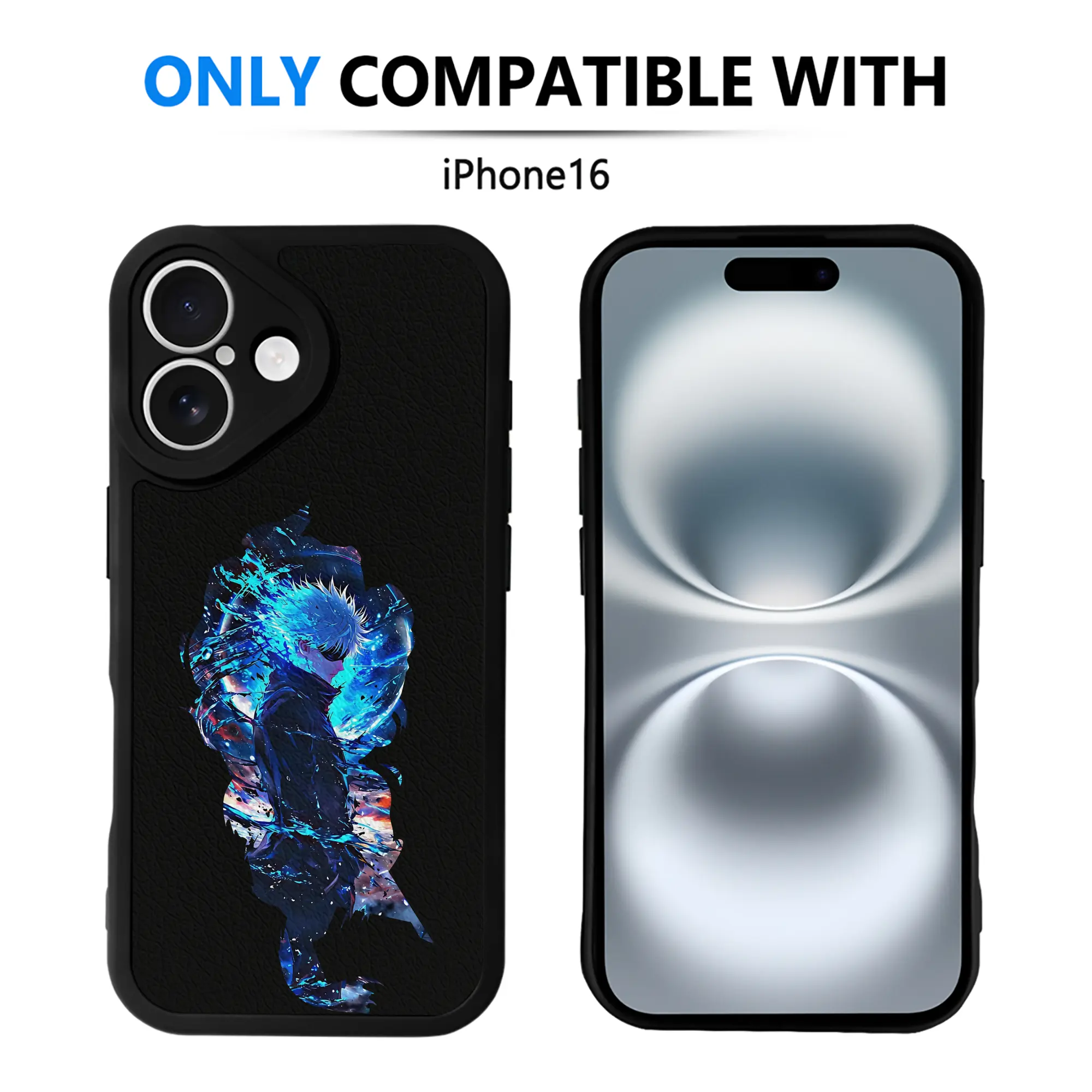 呪術廻戦 グッズ,五条 悟 - IPhone 16シリーズ対応 ・ シリコンスマホケース ・ レザー調 ・ 高精度フィット ・ 耐衝撃 ・ ワイヤレス充電対応 ・ 精密カット