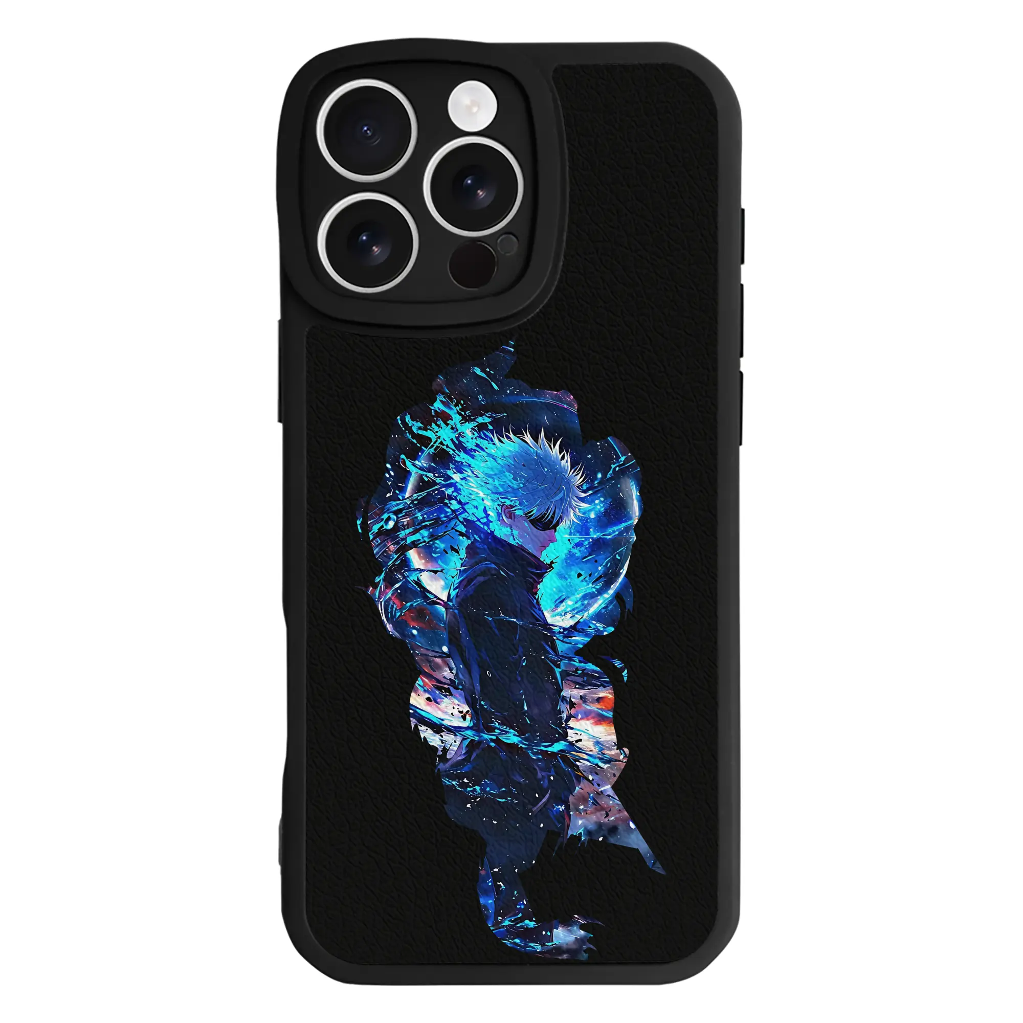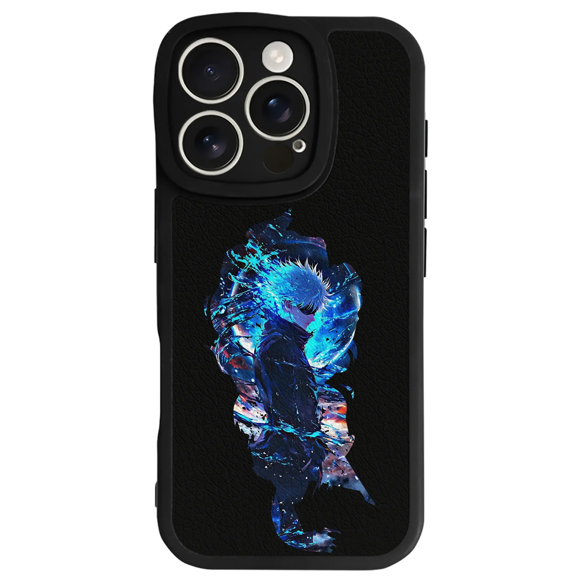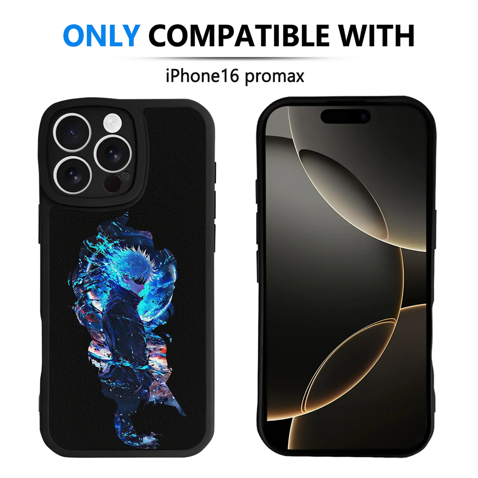 呪術廻戦 グッズ,五条 悟 - IPhone 16シリーズ対応 ・ シリコンスマホケース ・ レザー調 ・ 高精度フィット ・ 耐衝撃 ・ ワイヤレス充電対応 ・ 精密カット