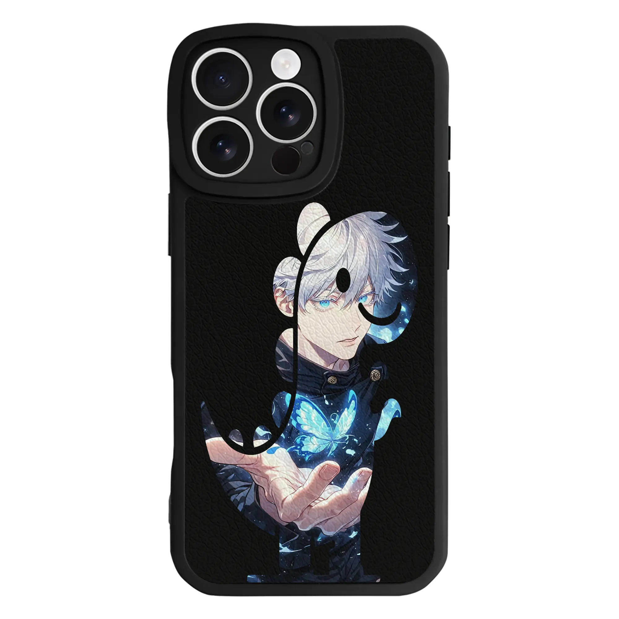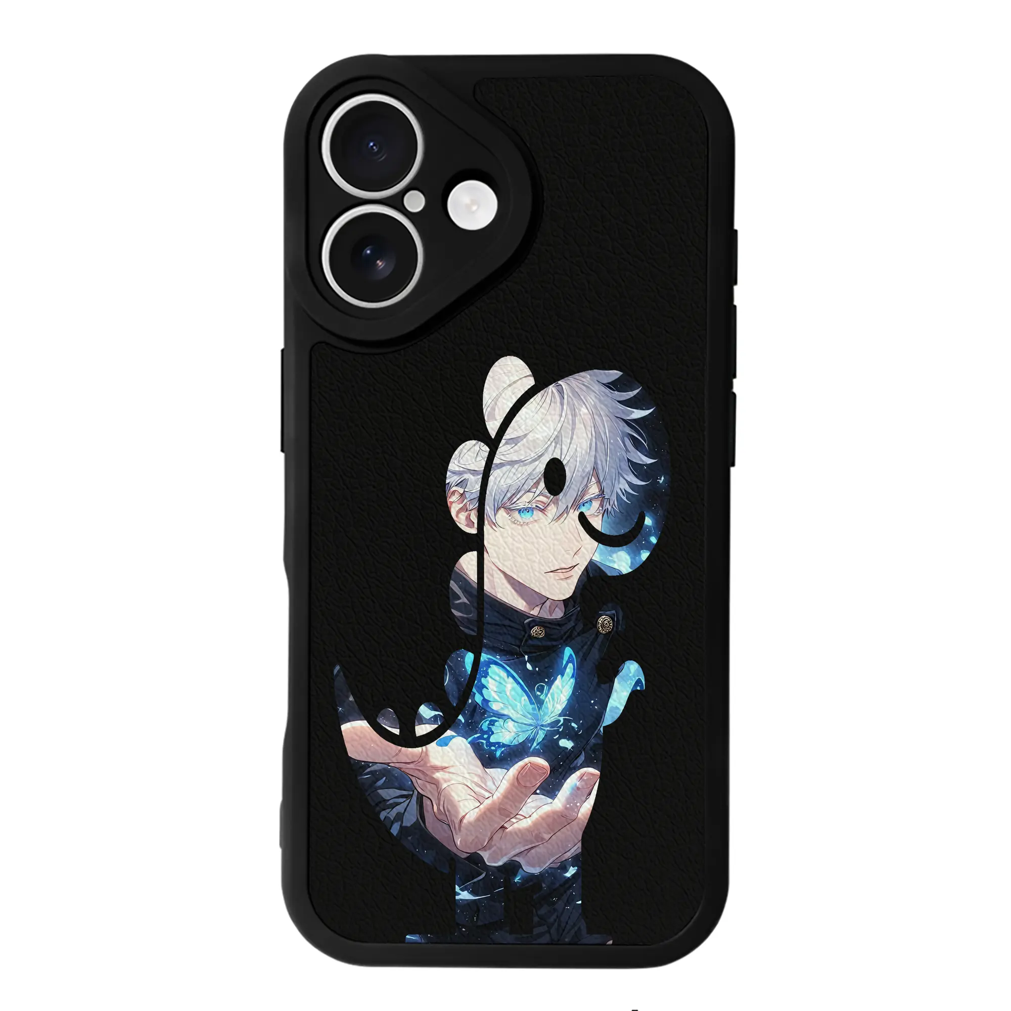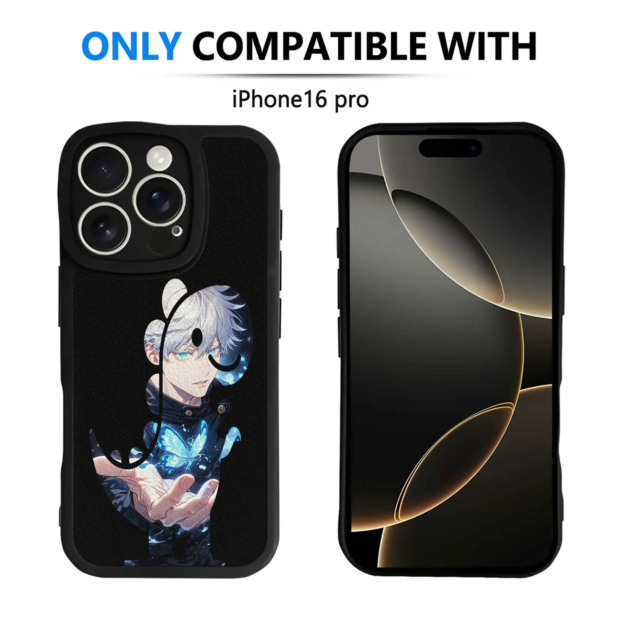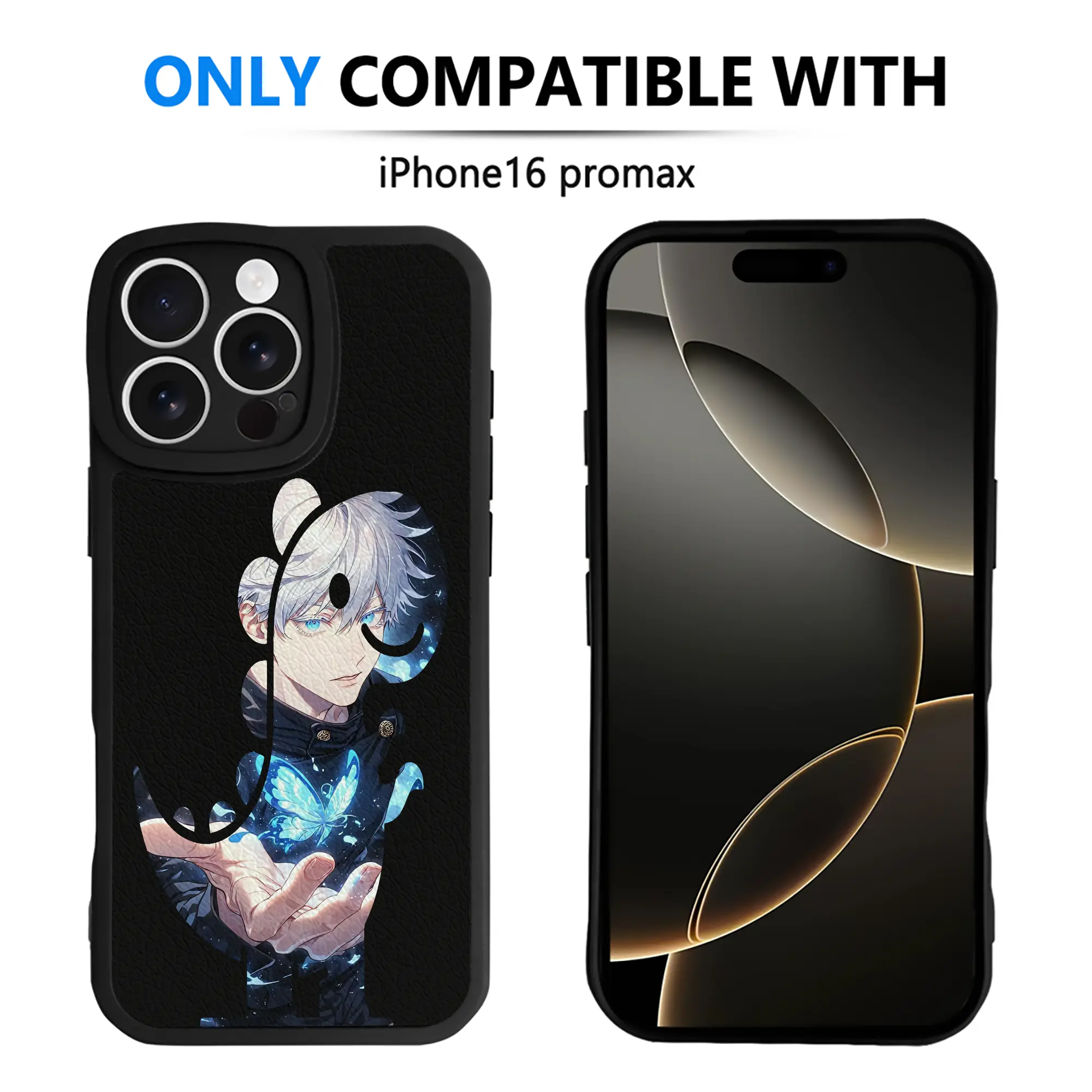 呪術廻戦 グッズ,五条 悟 - IPhone 16シリーズ対応 ・ シリコンスマホケース ・ レザー調 ・ 高精度フィット ・ 耐衝撃 ・ ワイヤレス充電対応 ・ 精密カット