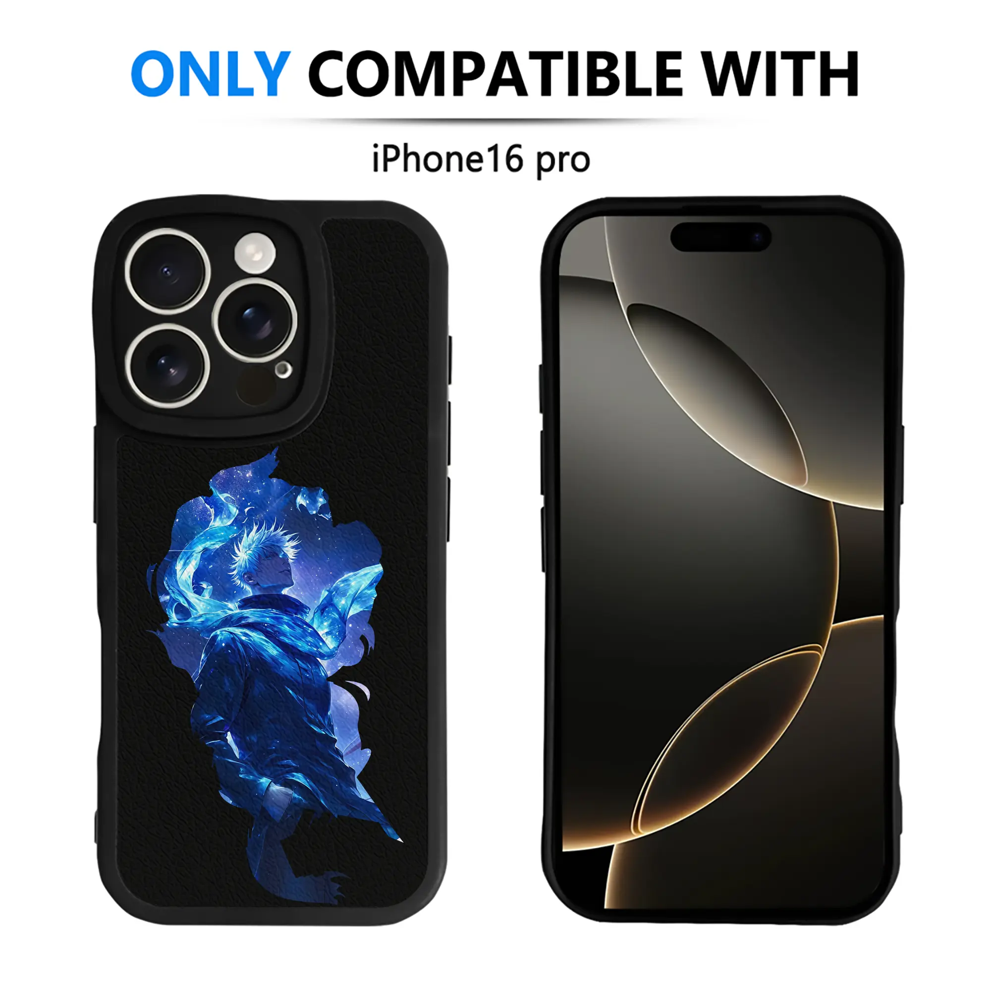 呪術廻戦 グッズ,五条 悟 - IPhone 16シリーズ対応 ・ シリコンスマホケース ・ レザー調 ・ 高精度フィット ・ 耐衝撃 ・ ワイヤレス充電対応 ・ 精密カット
