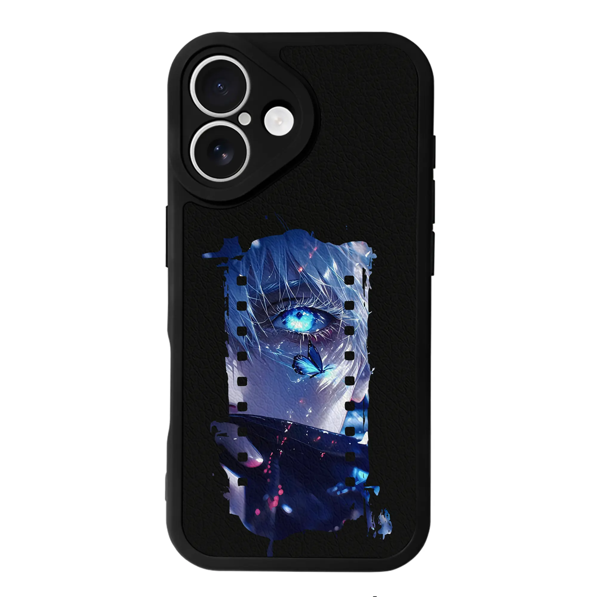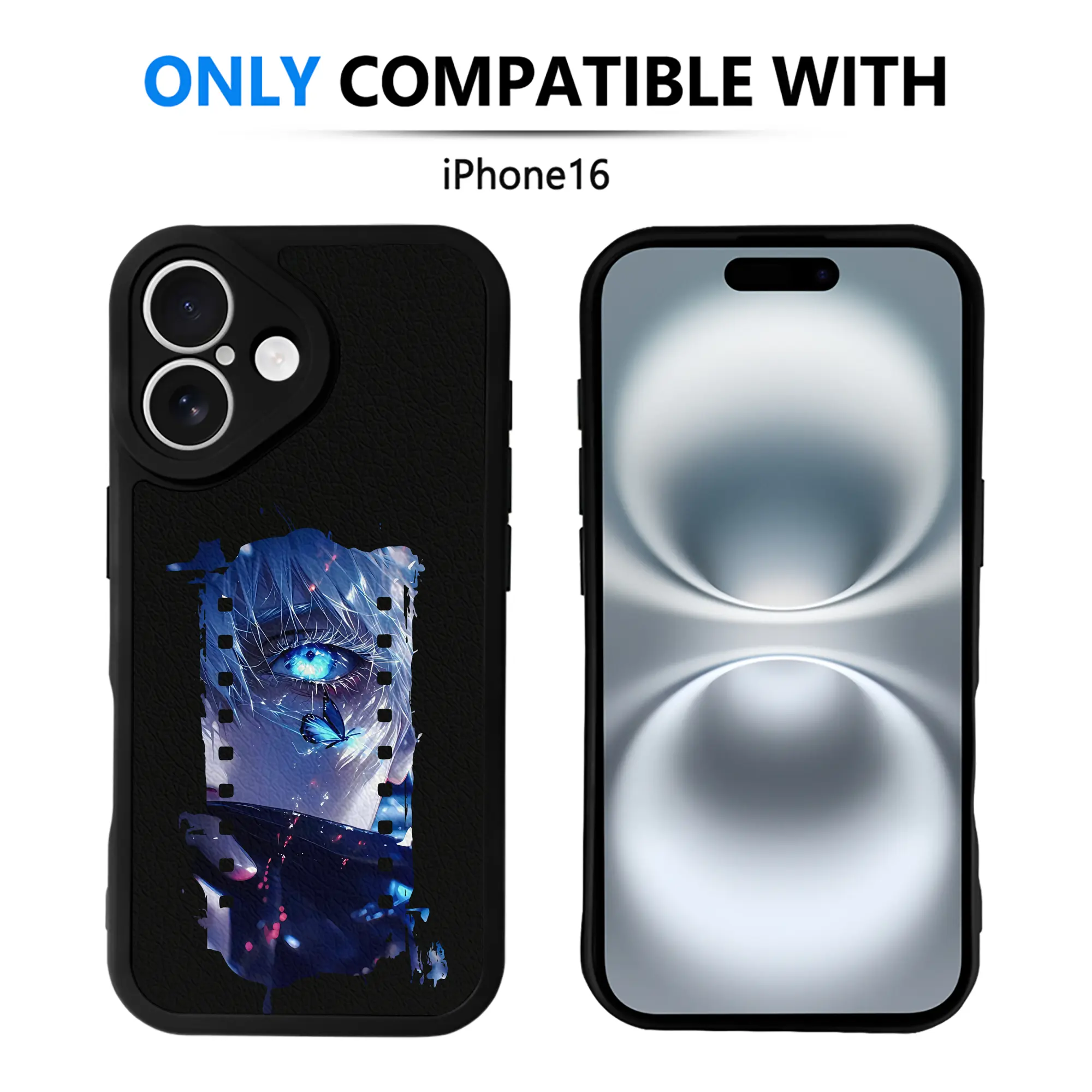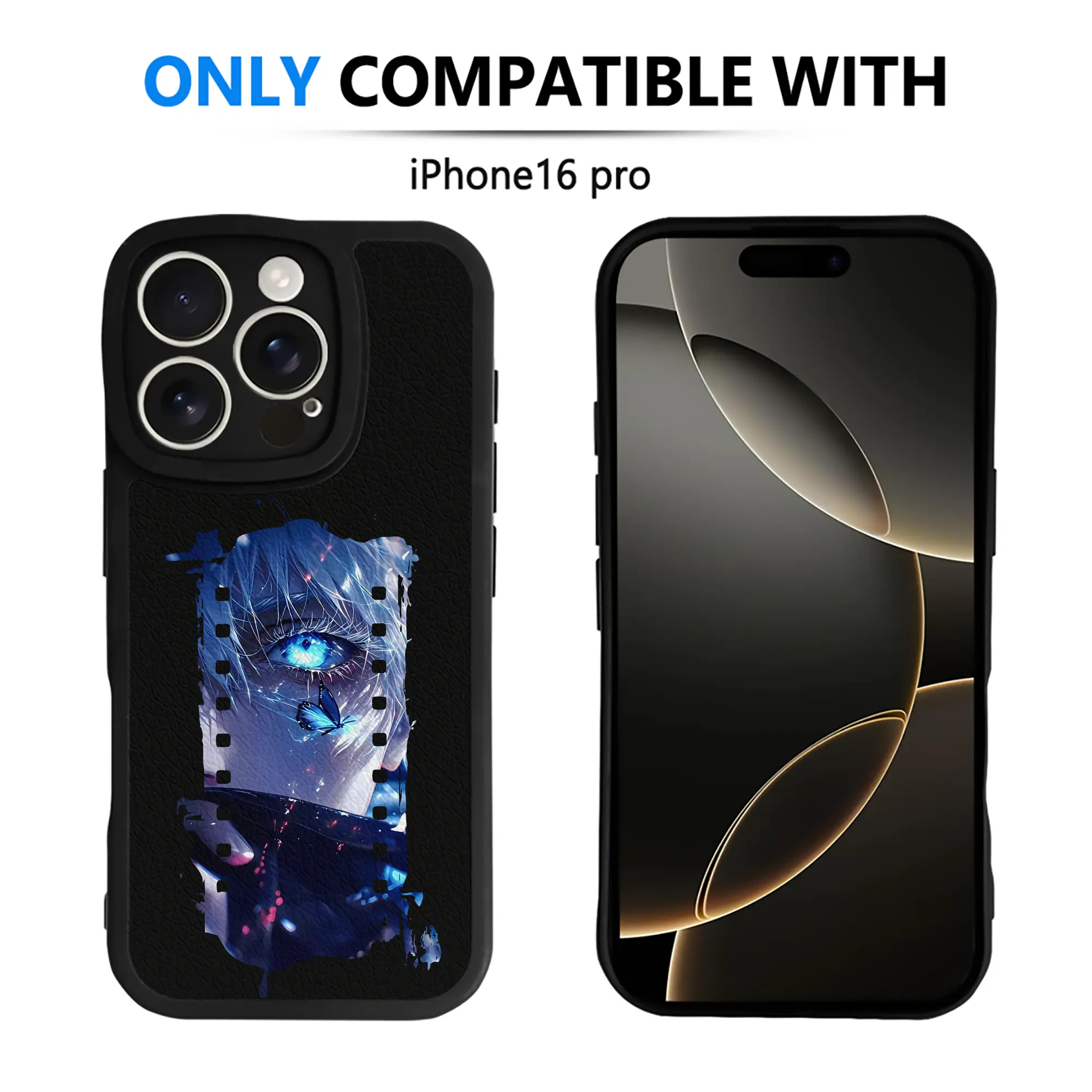 呪術廻戦 グッズ,五条 悟 - IPhone 16シリーズ対応 ・ シリコンスマホケース ・ レザー調 ・ 高精度フィット ・ 耐衝撃 ・ ワイヤレス充電対応 ・ 精密カット