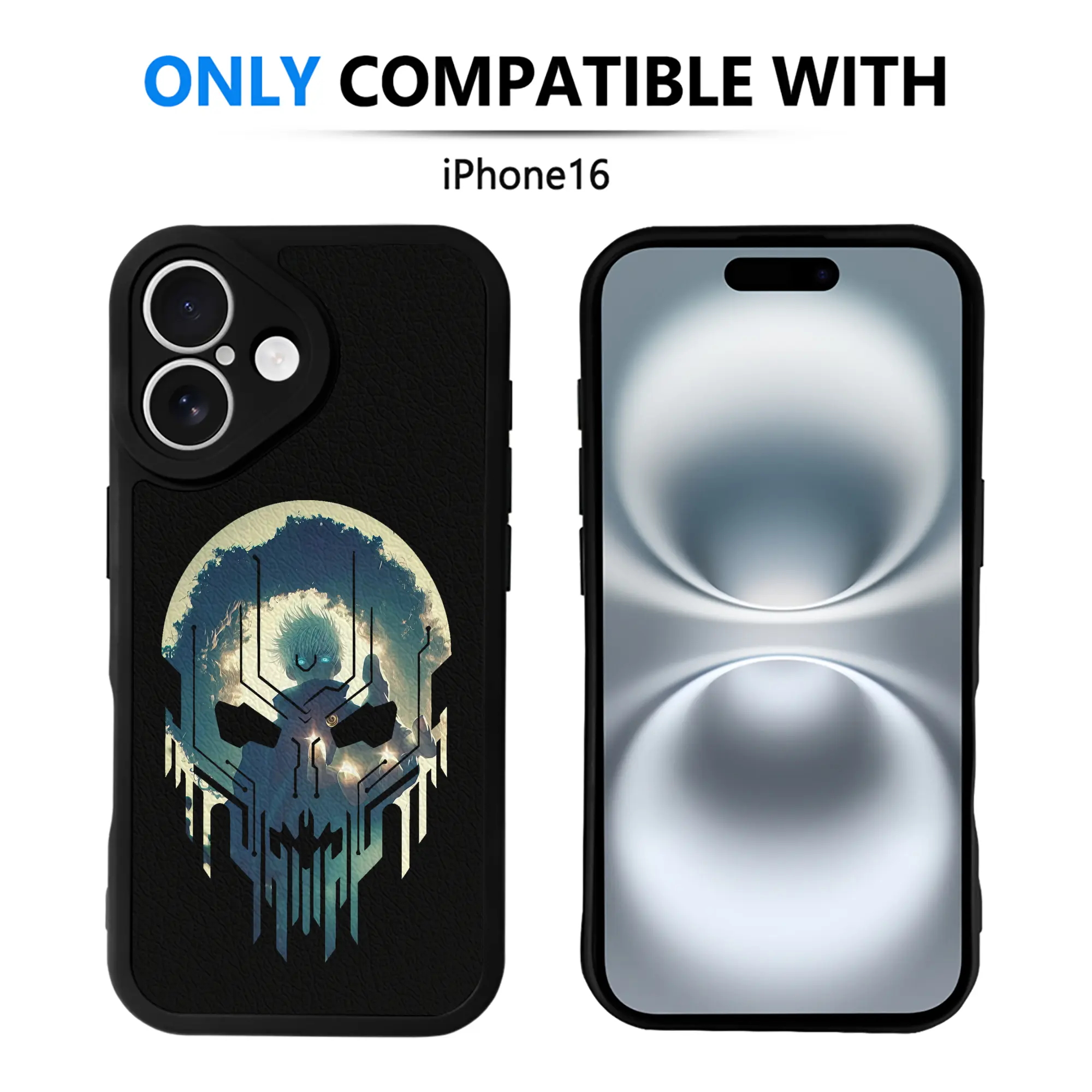 呪術廻戦 グッズ,五条 悟 - IPhone 16シリーズ対応 ・ シリコンスマホケース ・ レザー調 ・ 高精度フィット ・ 耐衝撃 ・ ワイヤレス充電対応 ・ 精密カット