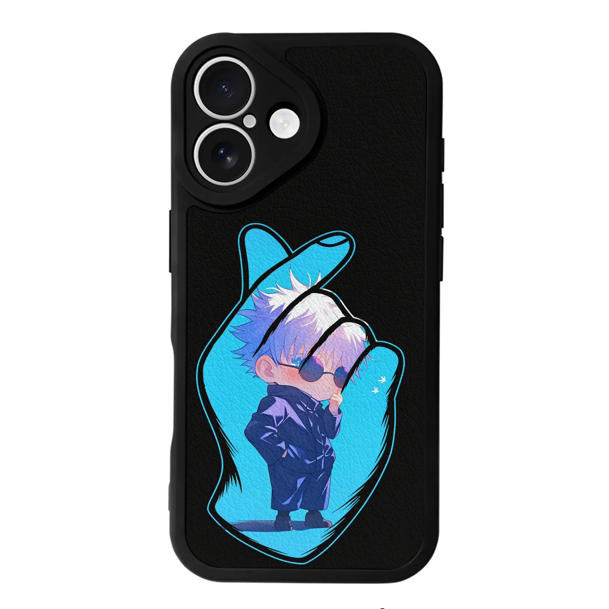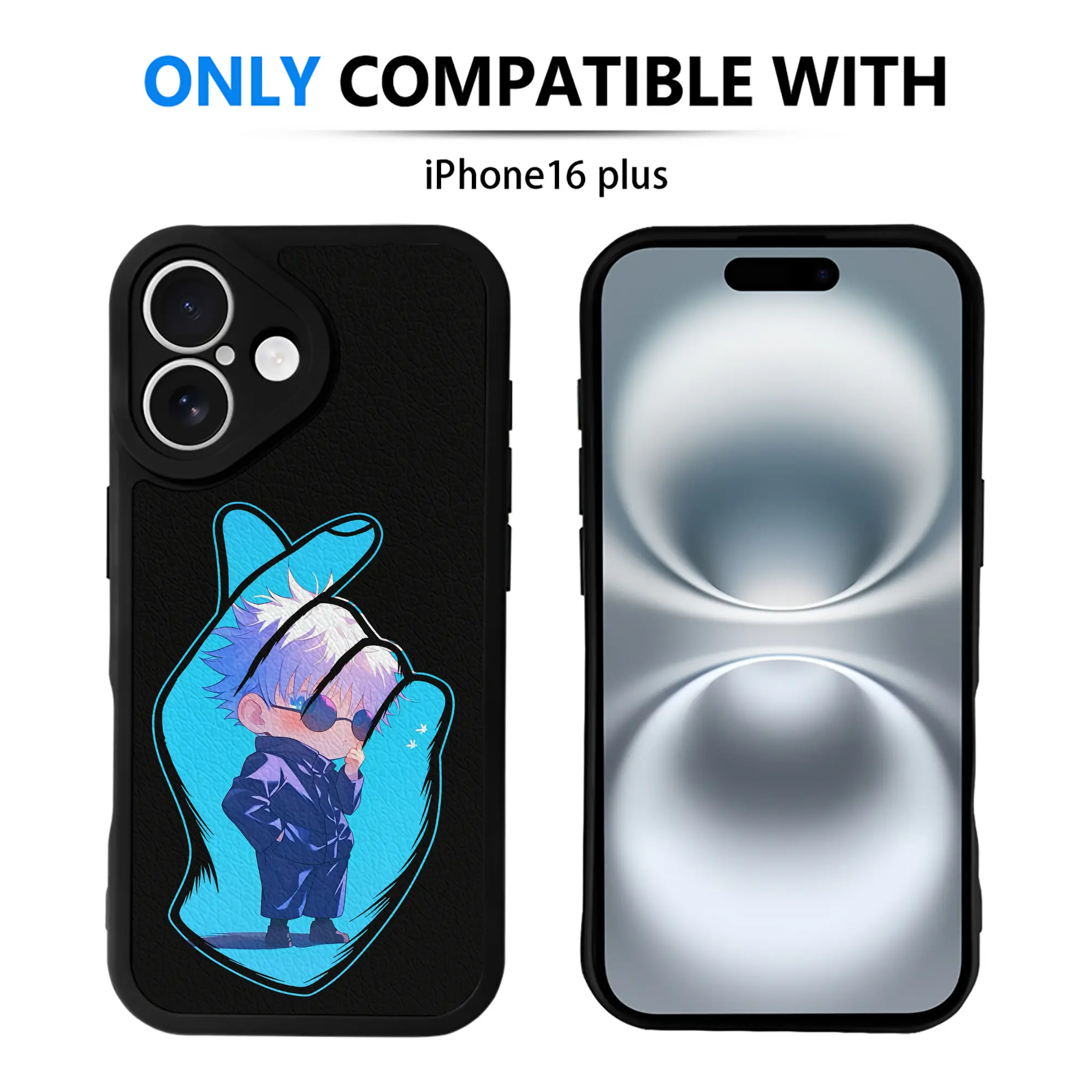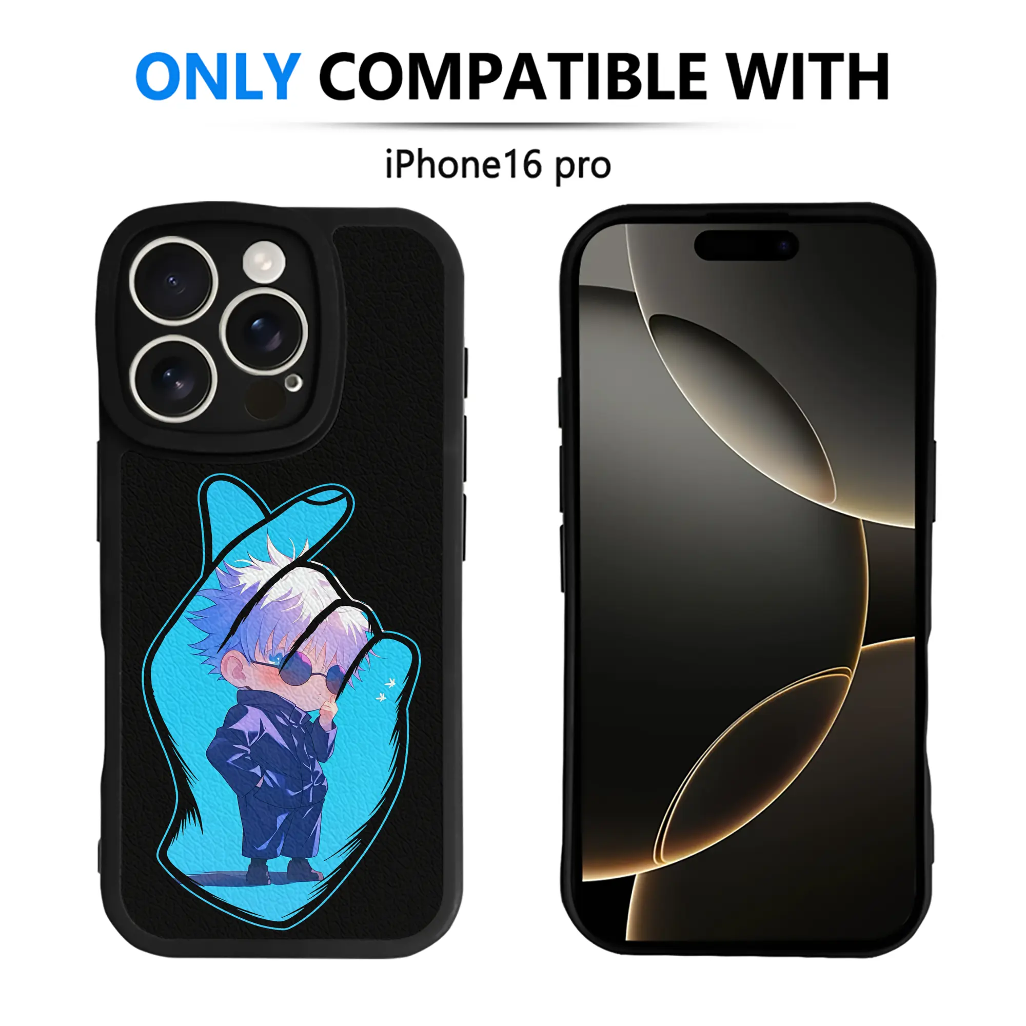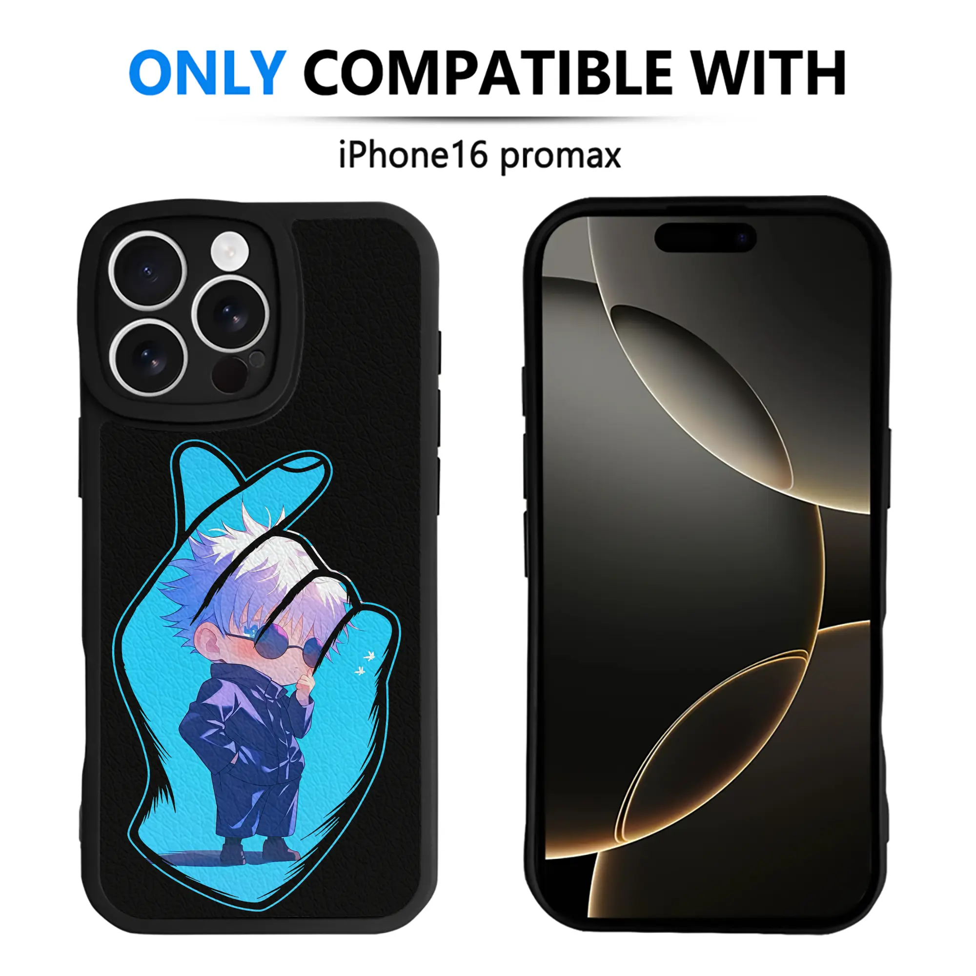 呪術廻戦 グッズ,五条 悟 - IPhone 16シリーズ対応 ・ シリコンスマホケース ・ レザー調 ・ 高精度フィット ・ 耐衝撃 ・ ワイヤレス充電対応 ・ 精密カット