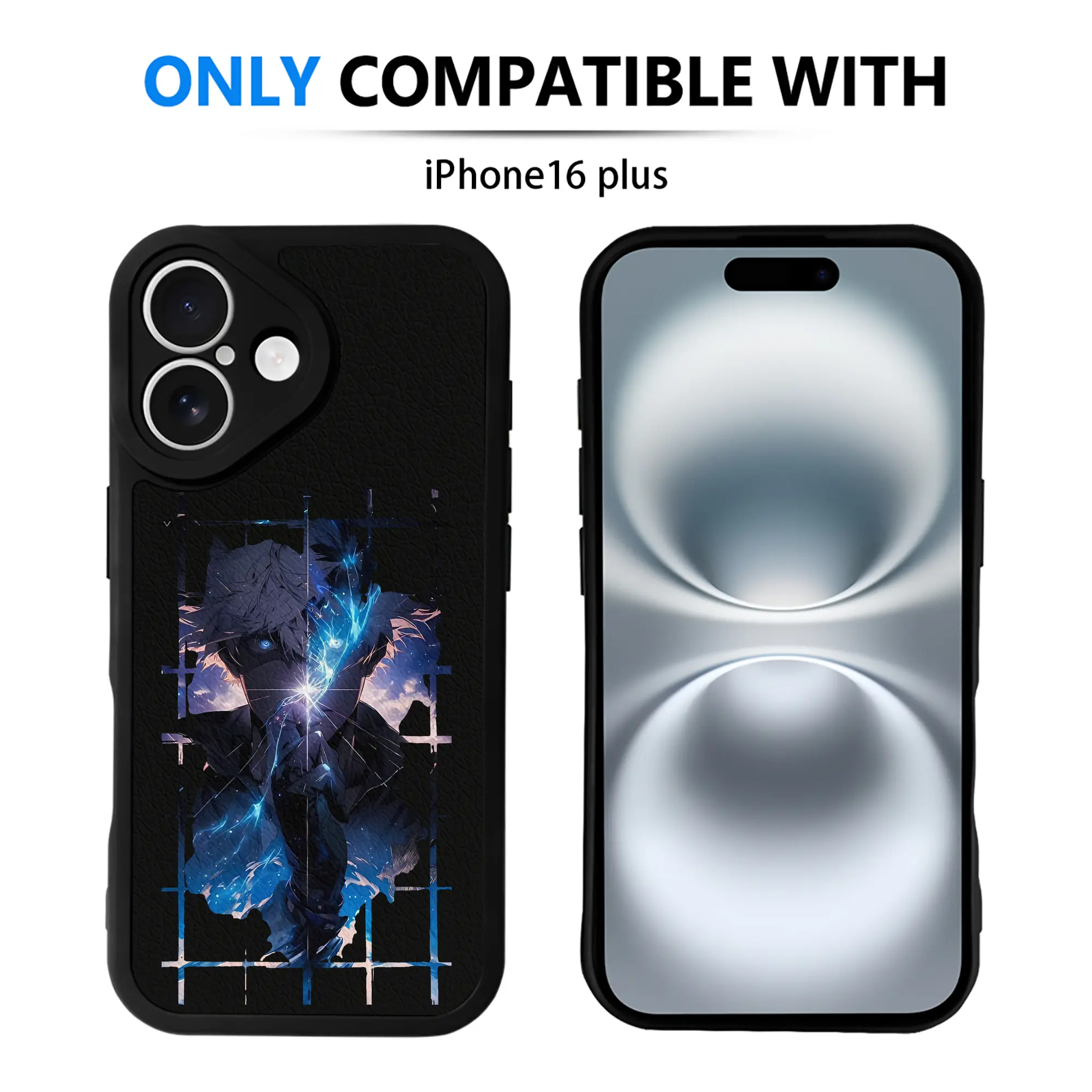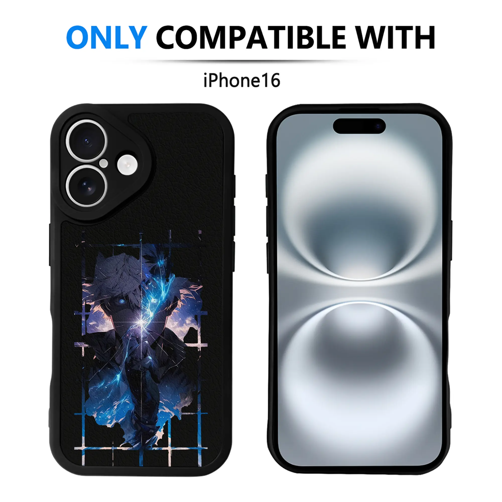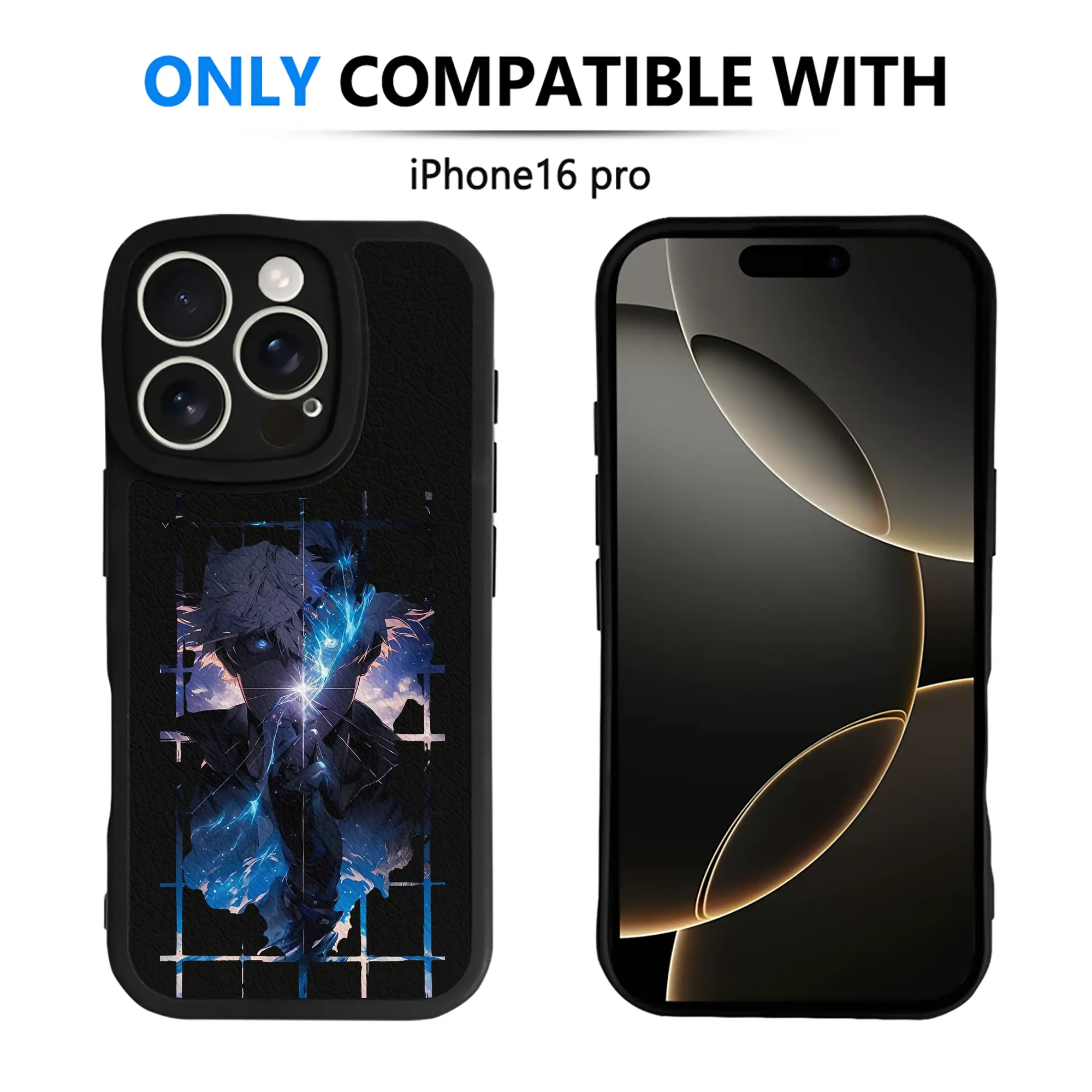 呪術廻戦 グッズ,五条 悟 - IPhone 16シリーズ対応 ・ シリコンスマホケース ・ レザー調 ・ 高精度フィット ・ 耐衝撃 ・ ワイヤレス充電対応 ・ 精密カット