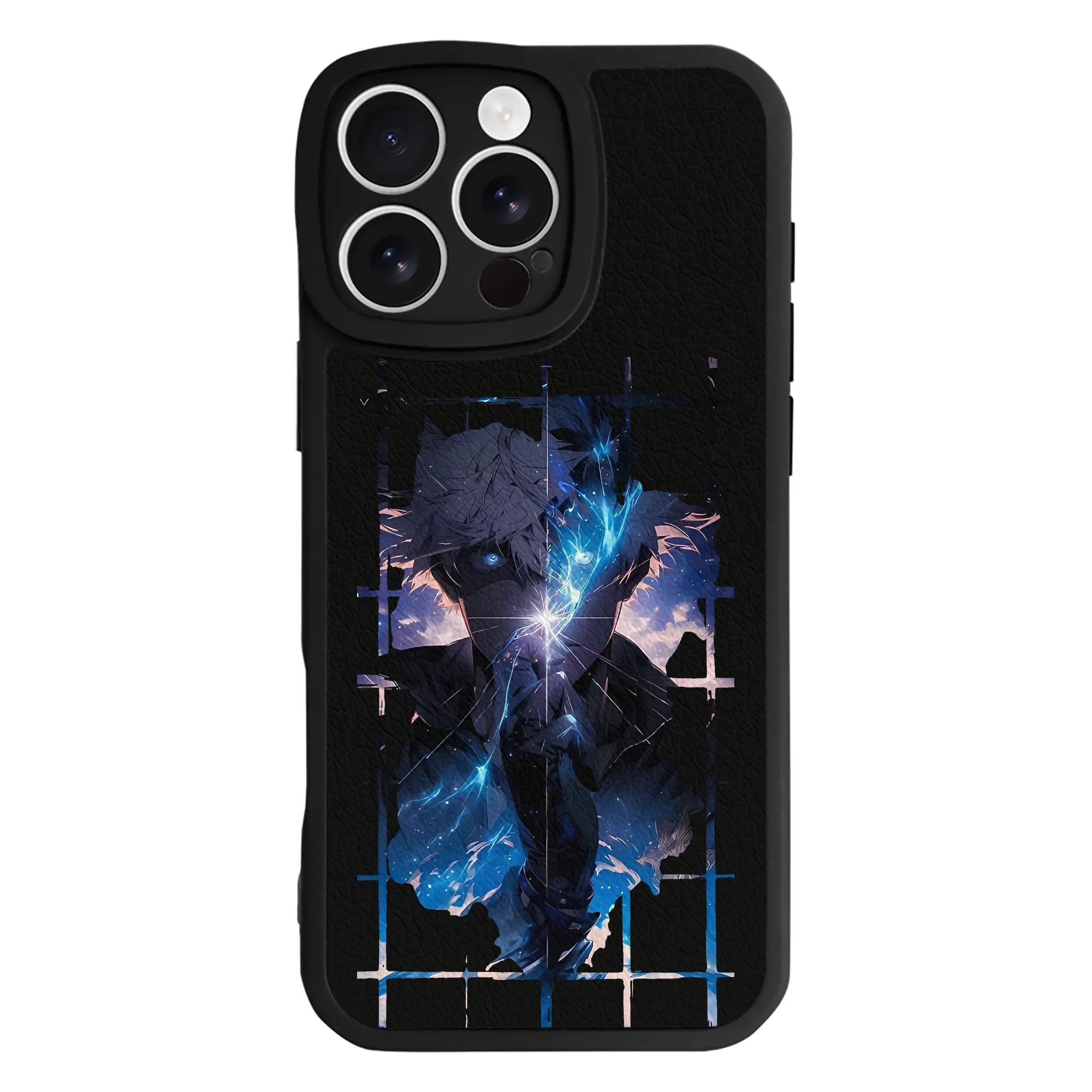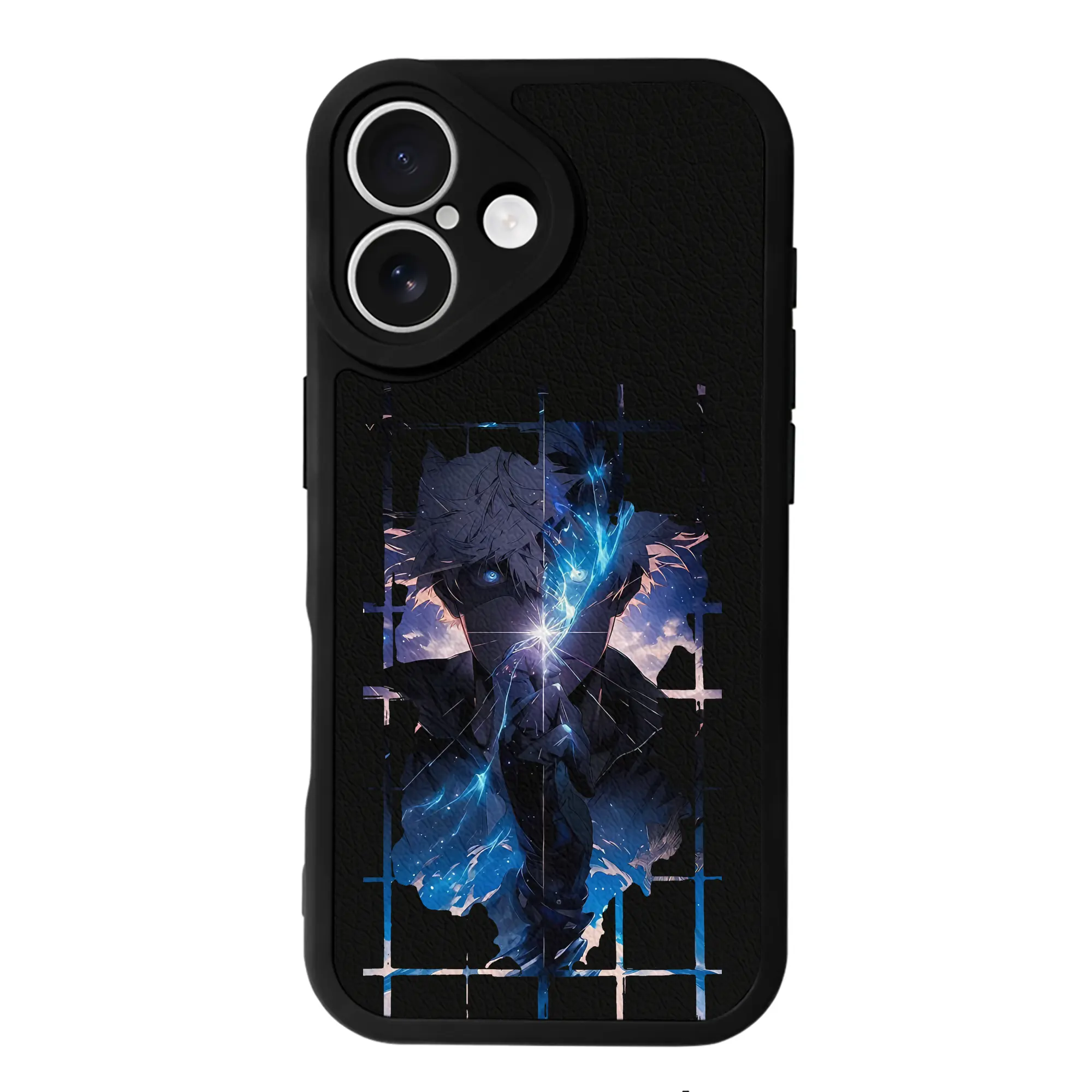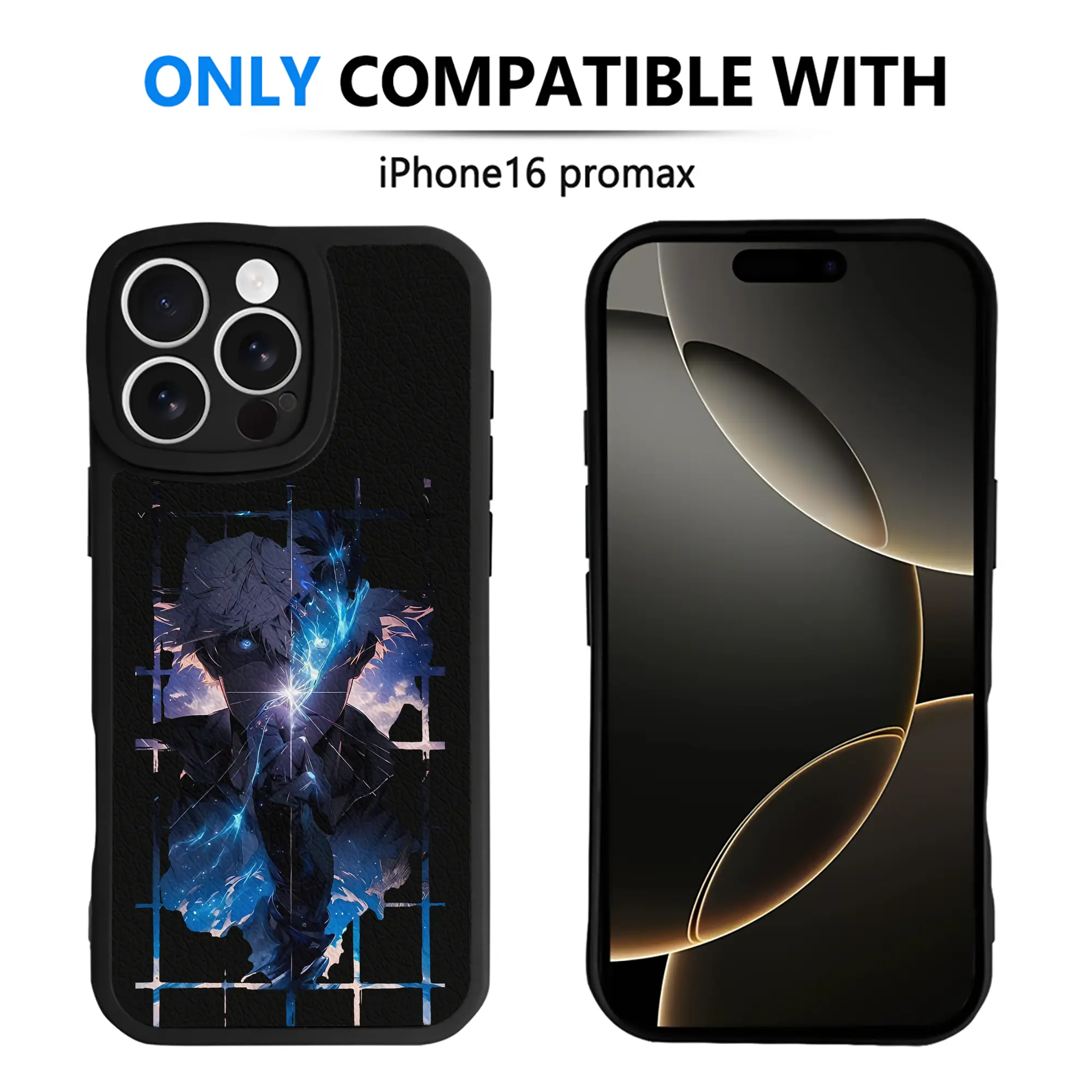 呪術廻戦 グッズ,五条 悟 - IPhone 16シリーズ対応 ・ シリコンスマホケース ・ レザー調 ・ 高精度フィット ・ 耐衝撃 ・ ワイヤレス充電対応 ・ 精密カット