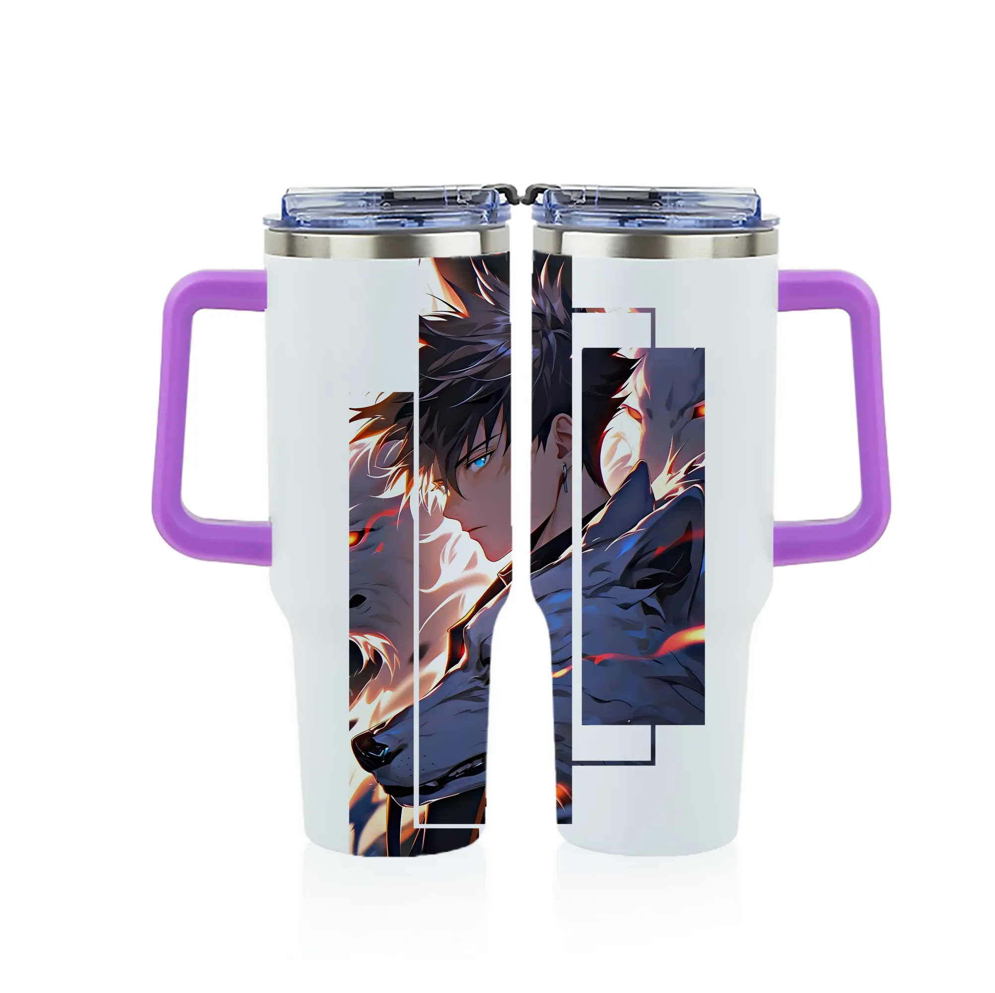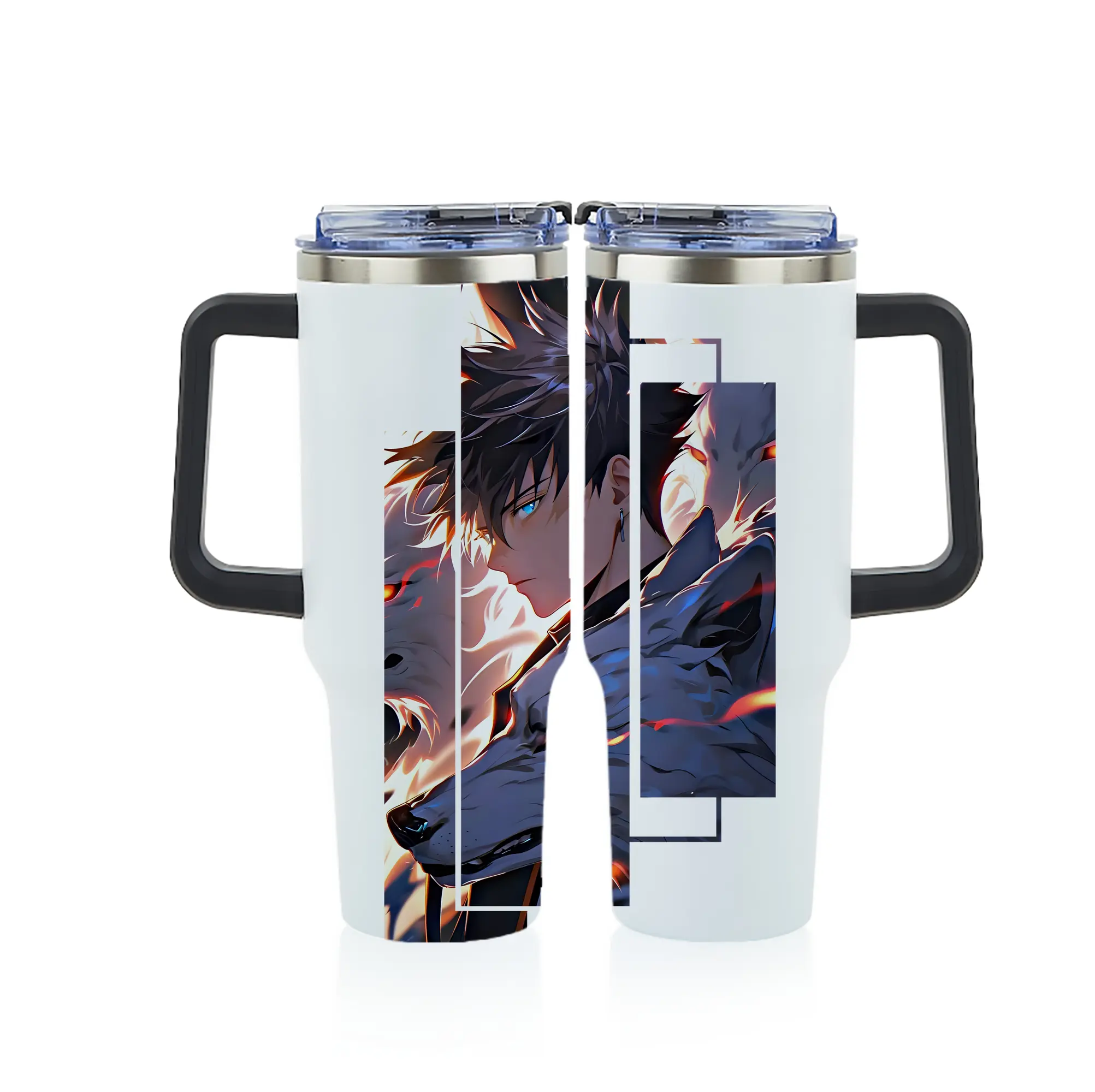 呪術廻戦 グッズ,伏黒 恵 - 1200mL フルプリント車用タンブラー ・ 304ステンレス 内側 ・ 201ステンレス 外側 ・ 保温 保冷 ・ 通勤 ドライブ アウトドア用