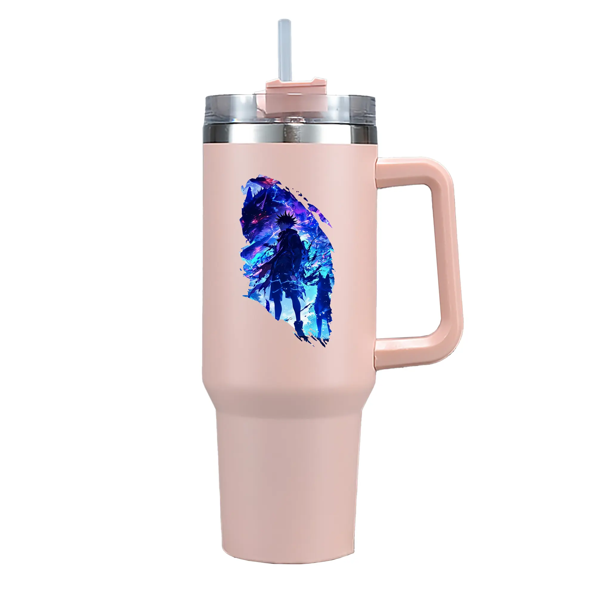1200mL(40オンス)の大容量ハンドル付きカータンブラー。キラキラと輝くクリスタルステッカーデザインが、毎日の使用に華やかさをプラスします。食品グレード304ステンレスの内側と頑丈な201ステンレスの外側を採用し、耐久性・耐腐食性・安全性を兼ね備えています。