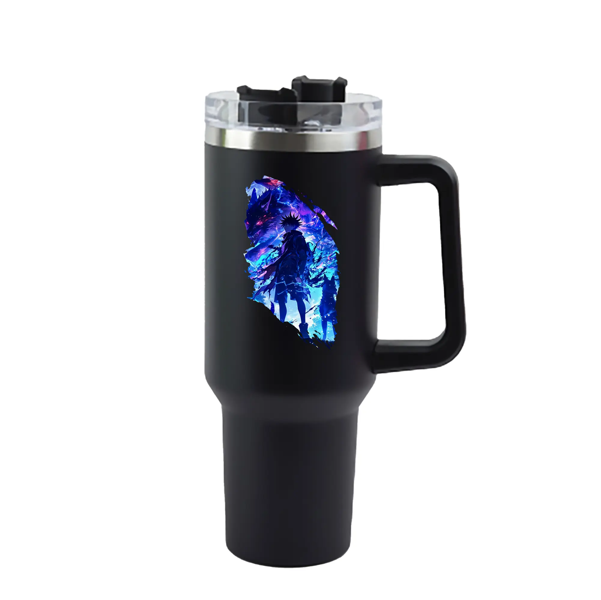 呪術廻戦 グッズ,伏黒 恵 - 1200mL 車用タンブラー ・ クリスタルステッカー ・ 304ステンレス 内側 ・ 201ステンレス 外側 ・ 保温 保冷 ・ ハンドル&ストロー付き ・ 通勤 ドライブ アウトドア用