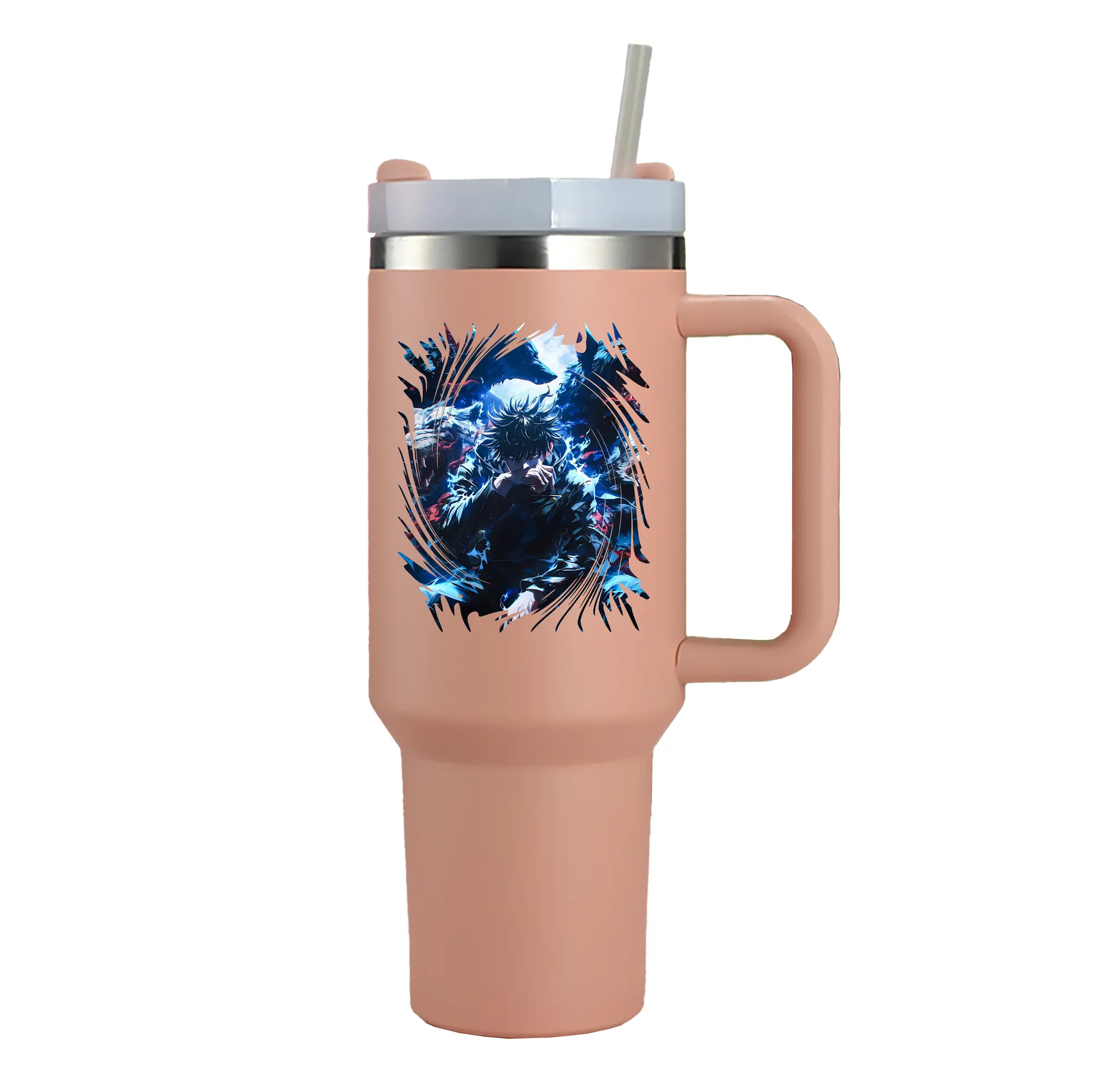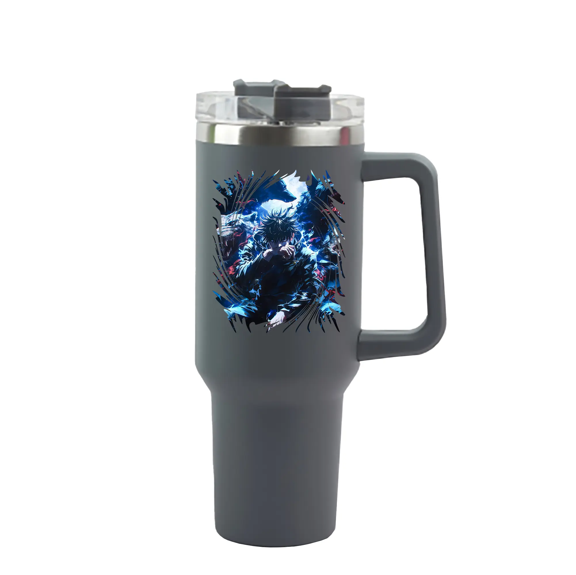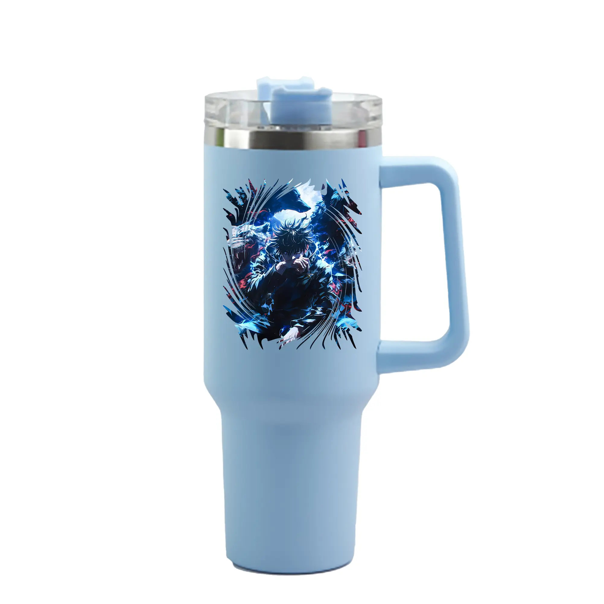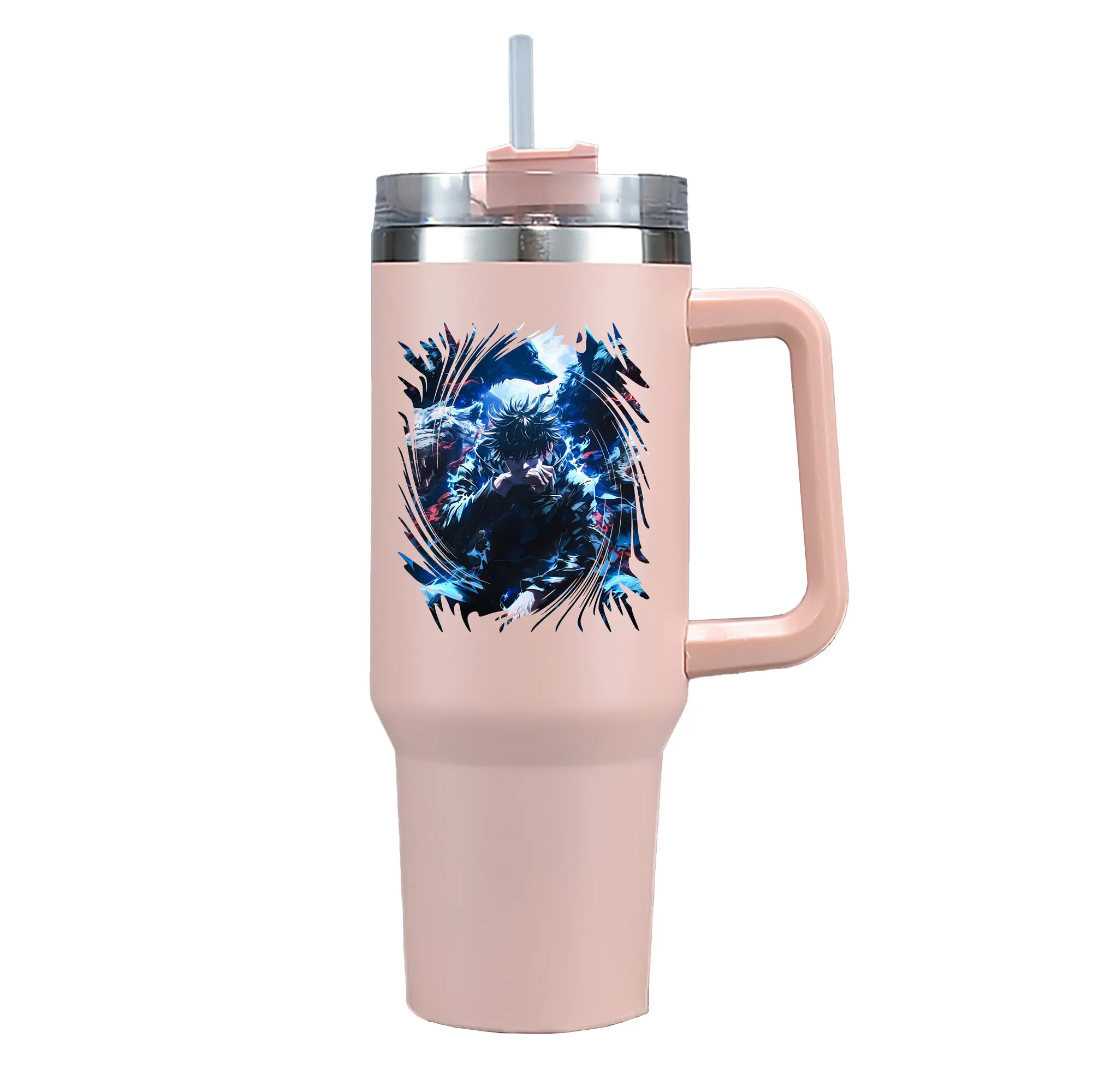 呪術廻戦 グッズ,伏黒 恵 - 1200mL 車用タンブラー ・ クリスタルステッカー ・ 304ステンレス 内側 ・ 201ステンレス 外側 ・ 保温 保冷 ・ ハンドル&ストロー付き ・ 通勤 ドライブ アウトドア用