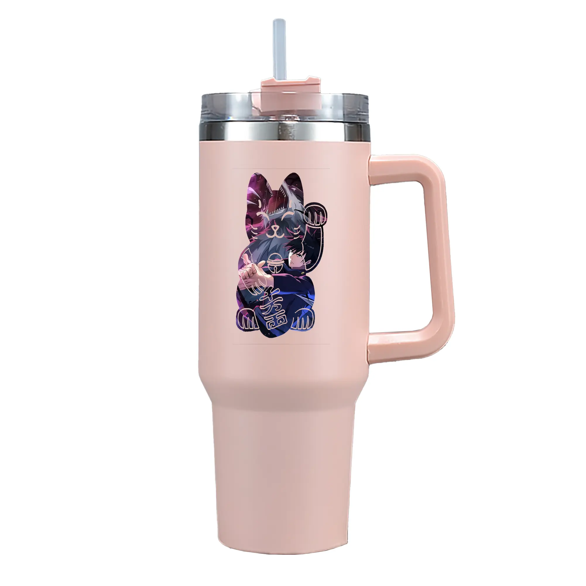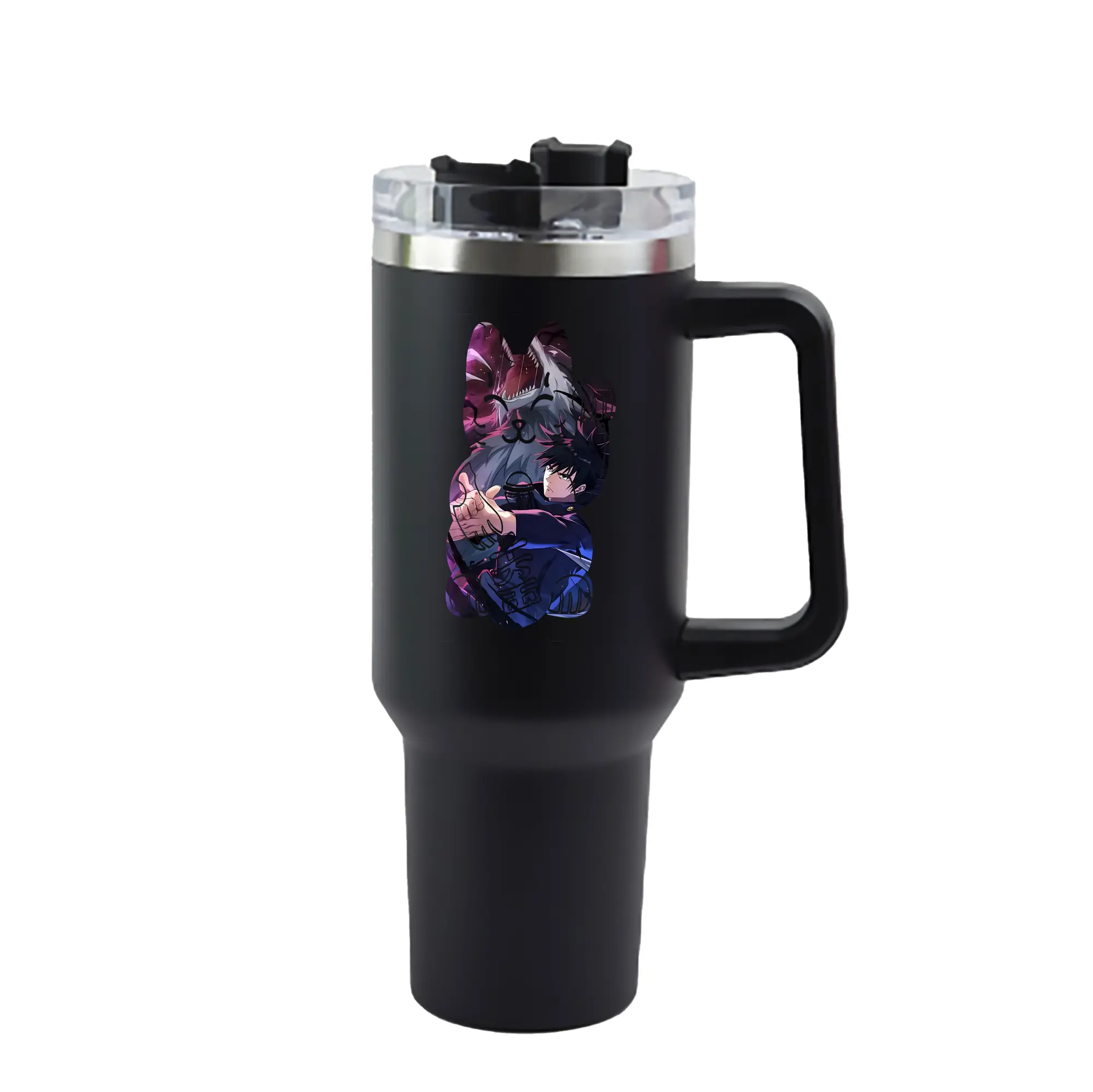 呪術廻戦 グッズ,伏黒 恵 - 1200mL 車用タンブラー ・ クリスタルステッカー ・ 304ステンレス 内側 ・ 201ステンレス 外側 ・ 保温 保冷 ・ ハンドル&ストロー付き ・ 通勤 ドライブ アウトドア用