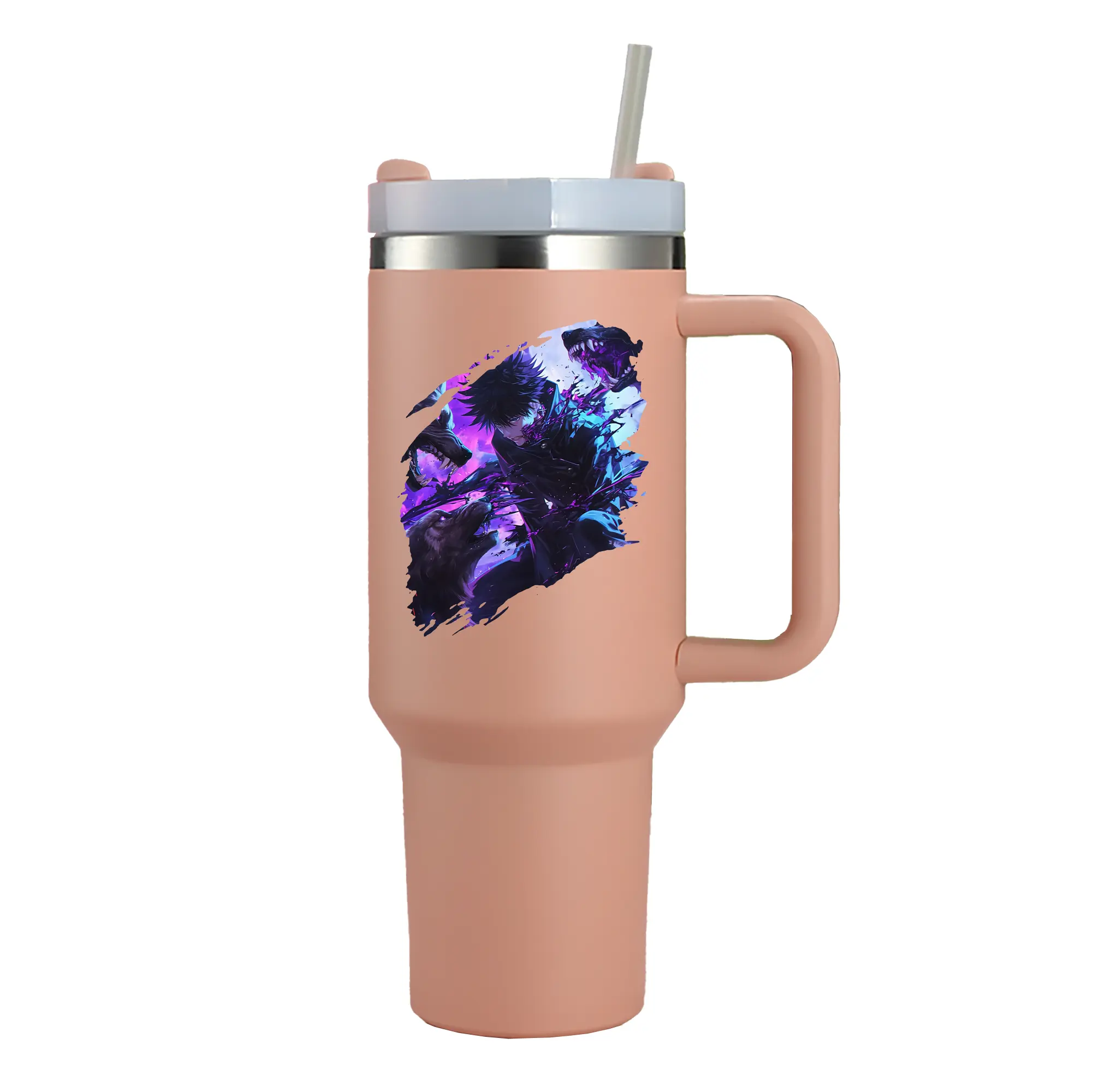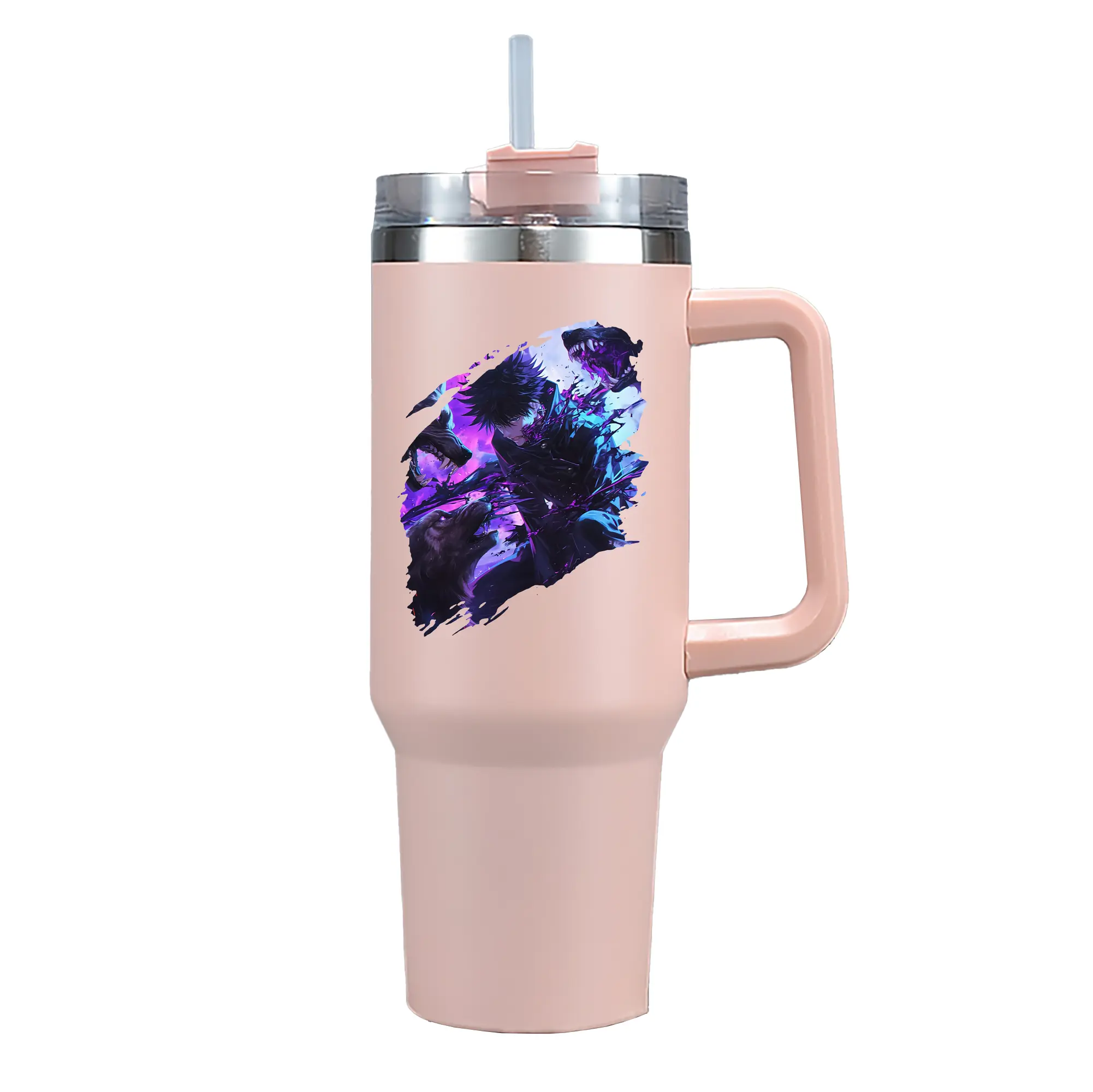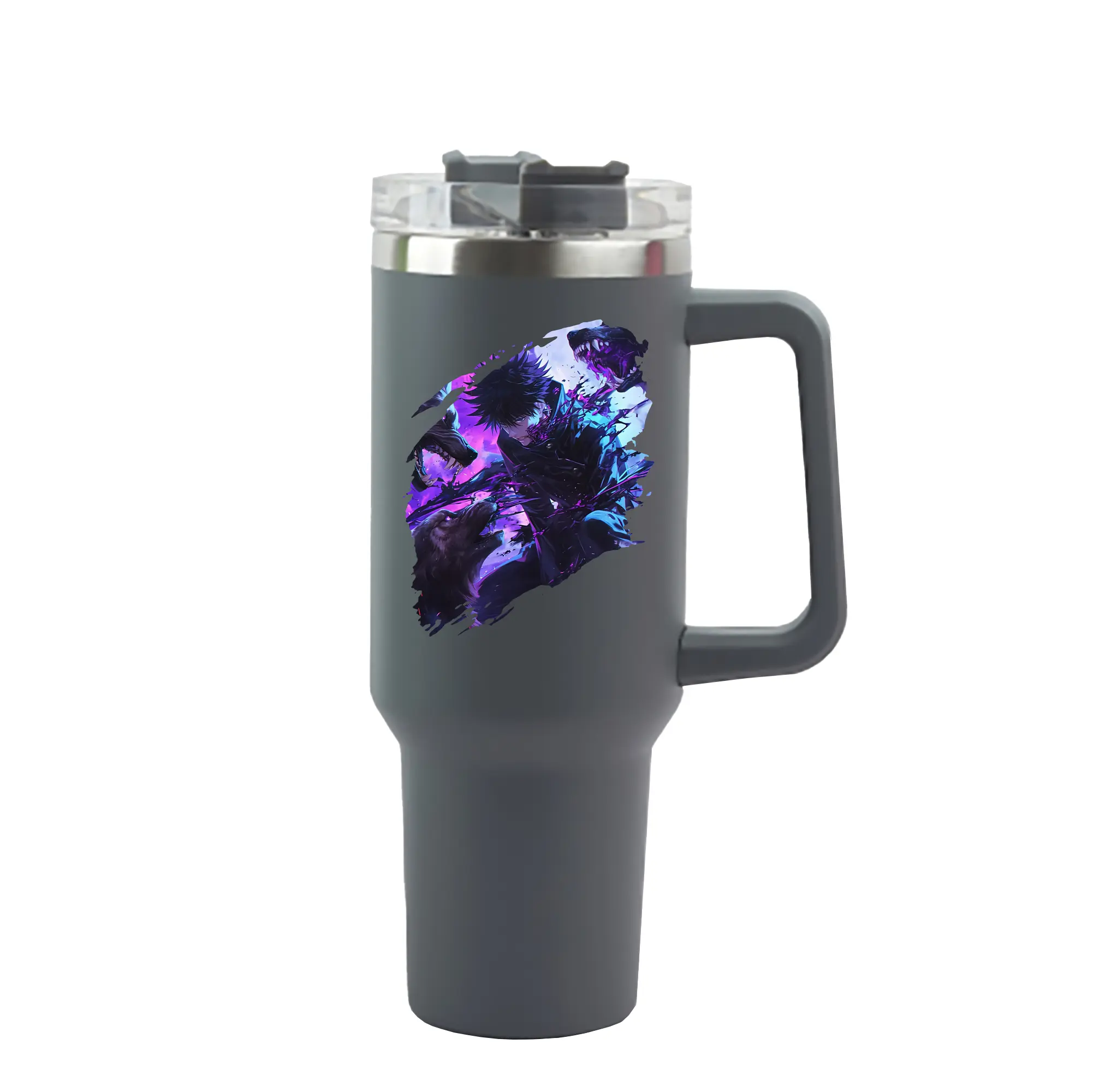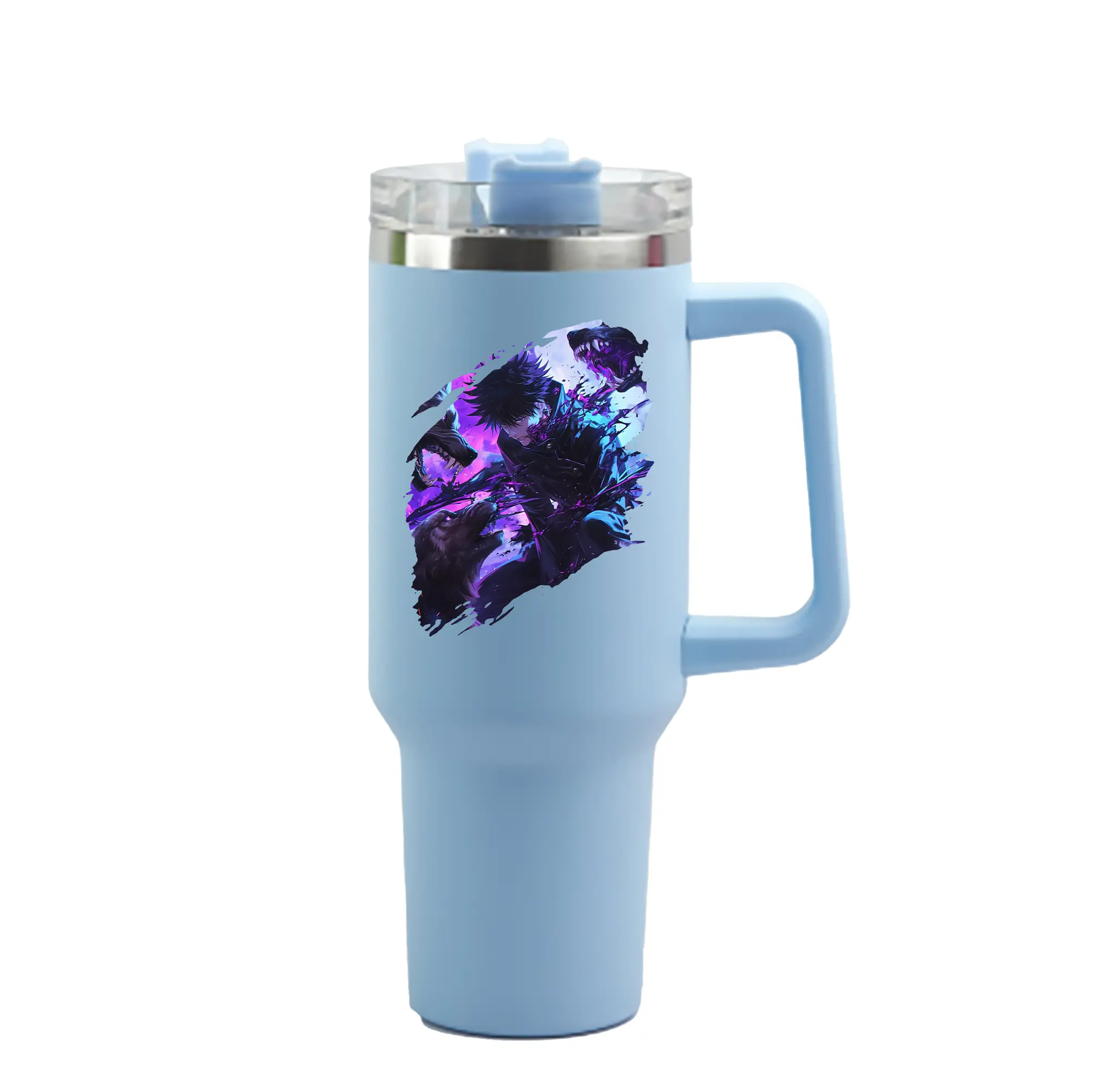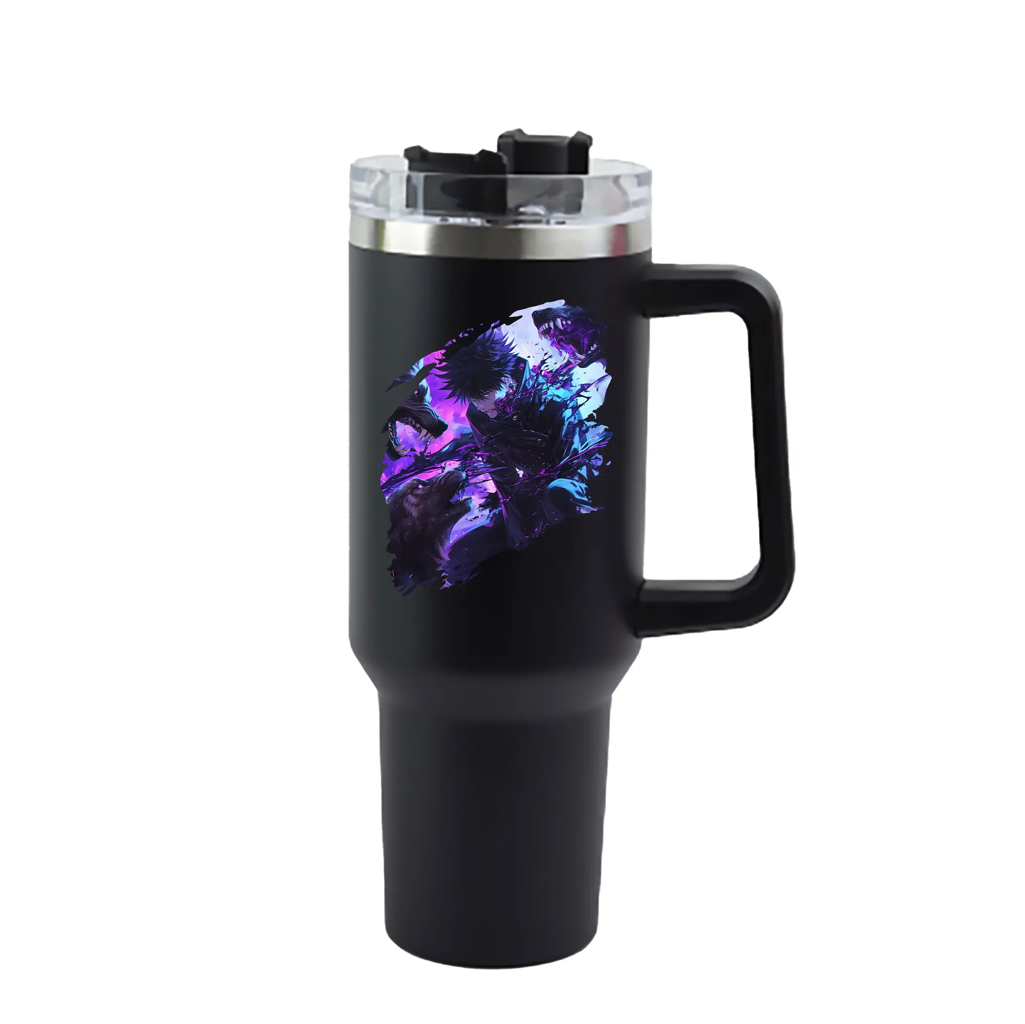 呪術廻戦 グッズ,伏黒 恵 - 1200mL 車用タンブラー ・ クリスタルステッカー ・ 304ステンレス 内側 ・ 201ステンレス 外側 ・ 保温 保冷 ・ ハンドル&ストロー付き ・ 通勤 ドライブ アウトドア用
