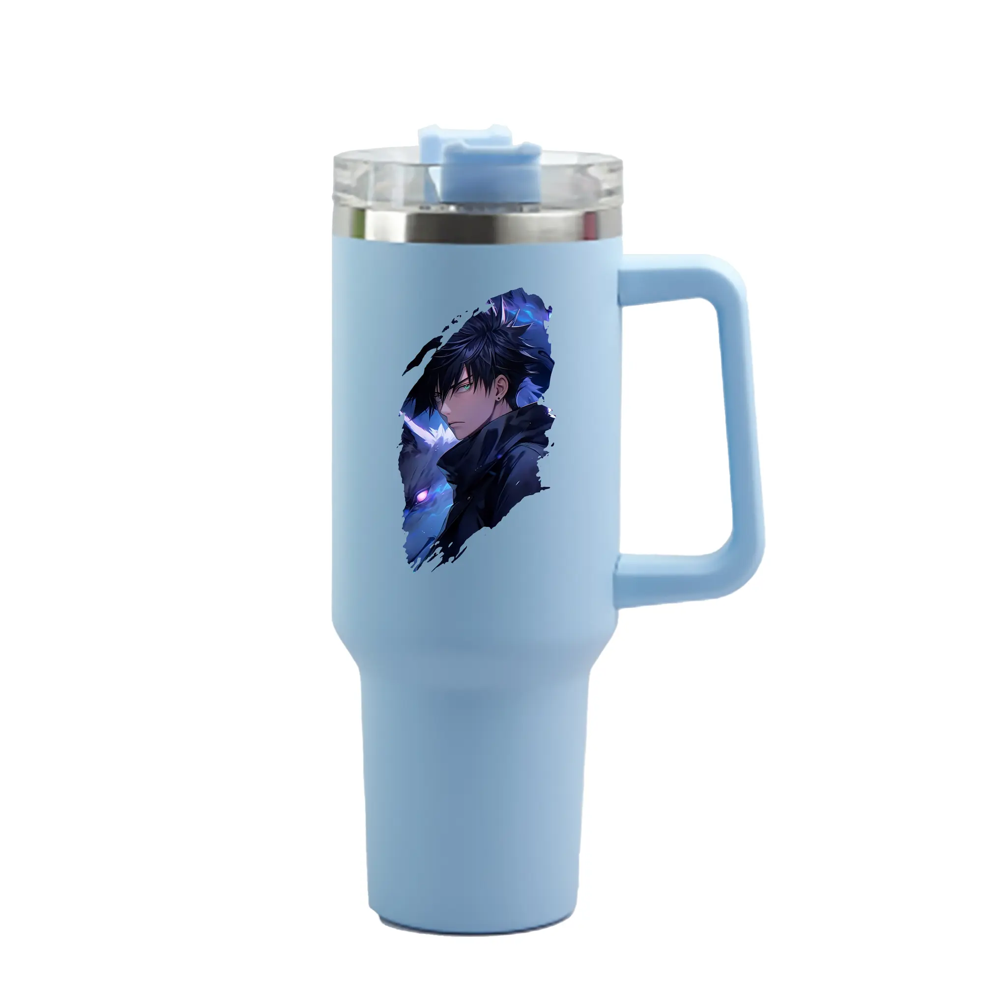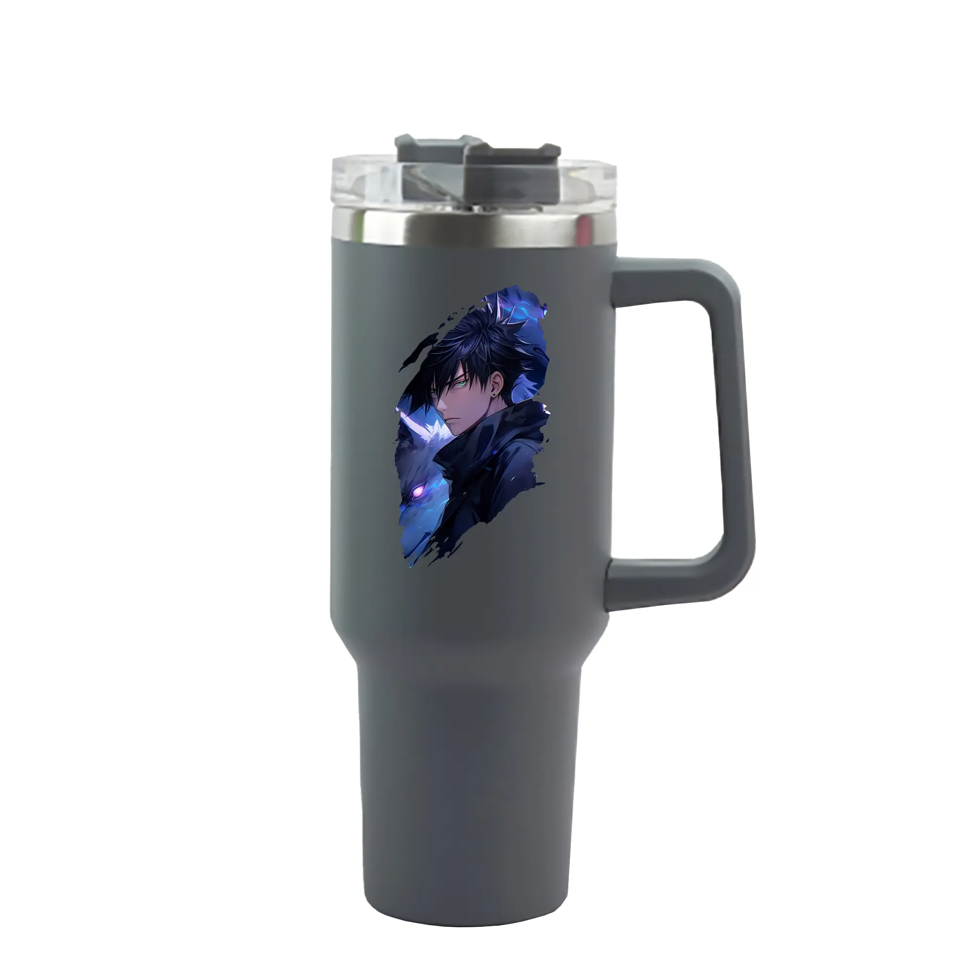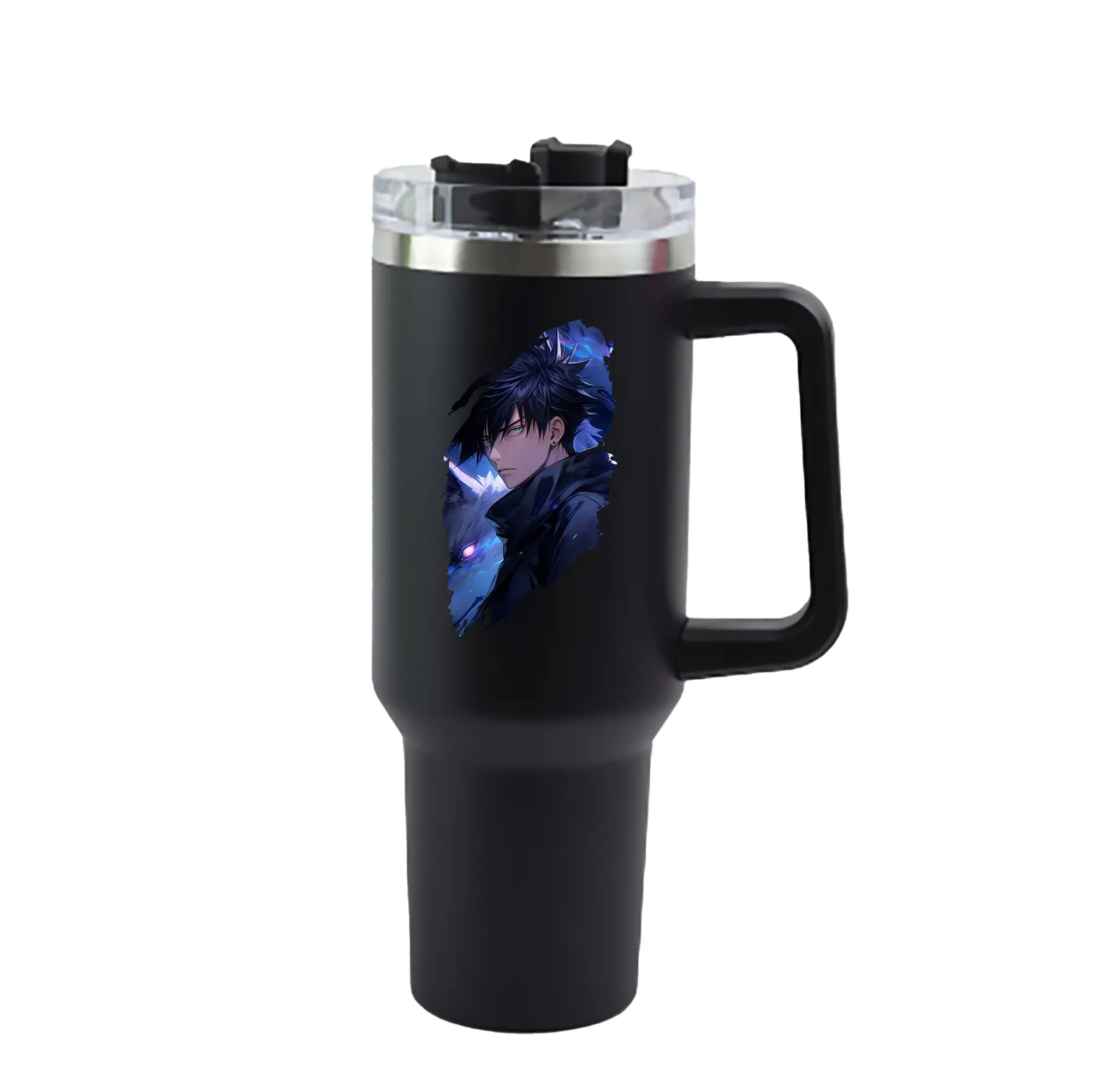 呪術廻戦 グッズ,伏黒 恵 - 1200mL 車用タンブラー ・ クリスタルステッカー ・ 304ステンレス 内側 ・ 201ステンレス 外側 ・ 保温 保冷 ・ ハンドル&ストロー付き ・ 通勤 ドライブ アウトドア用