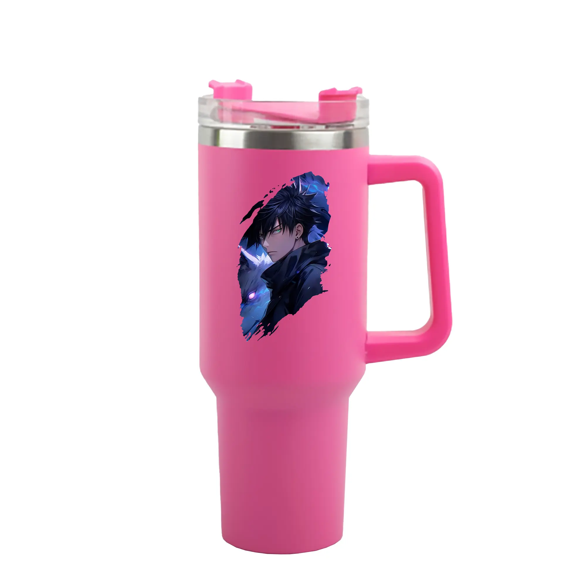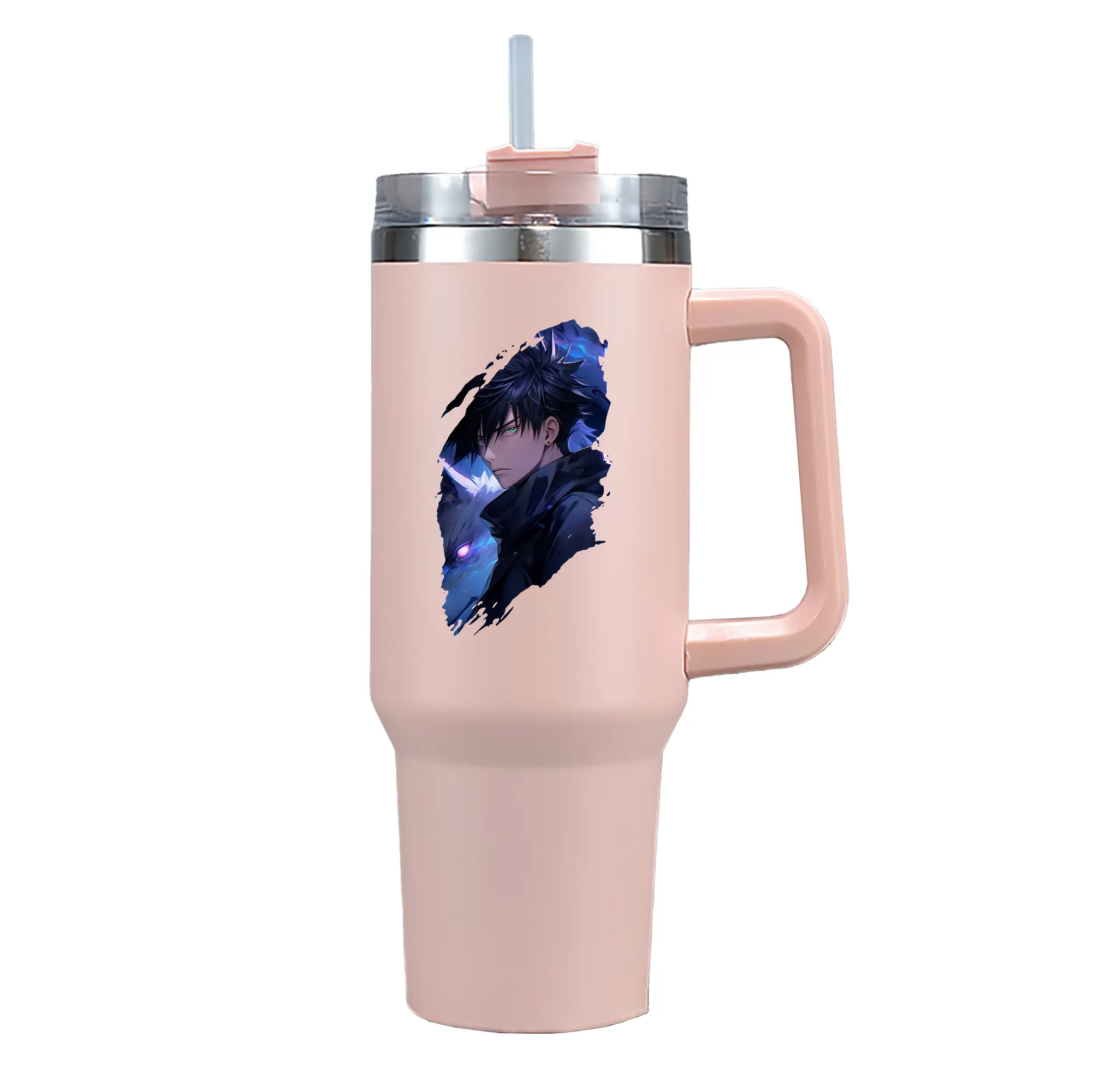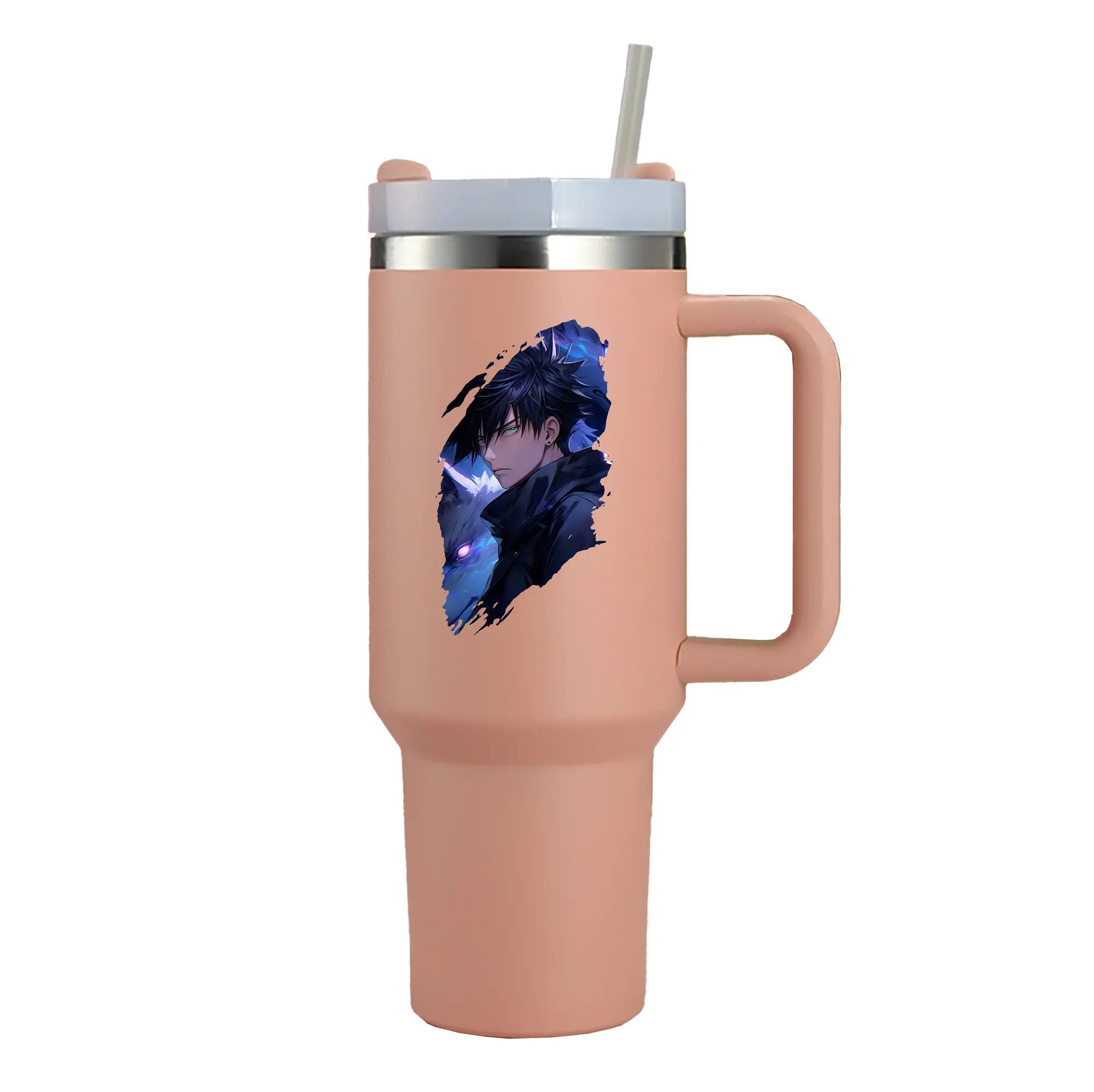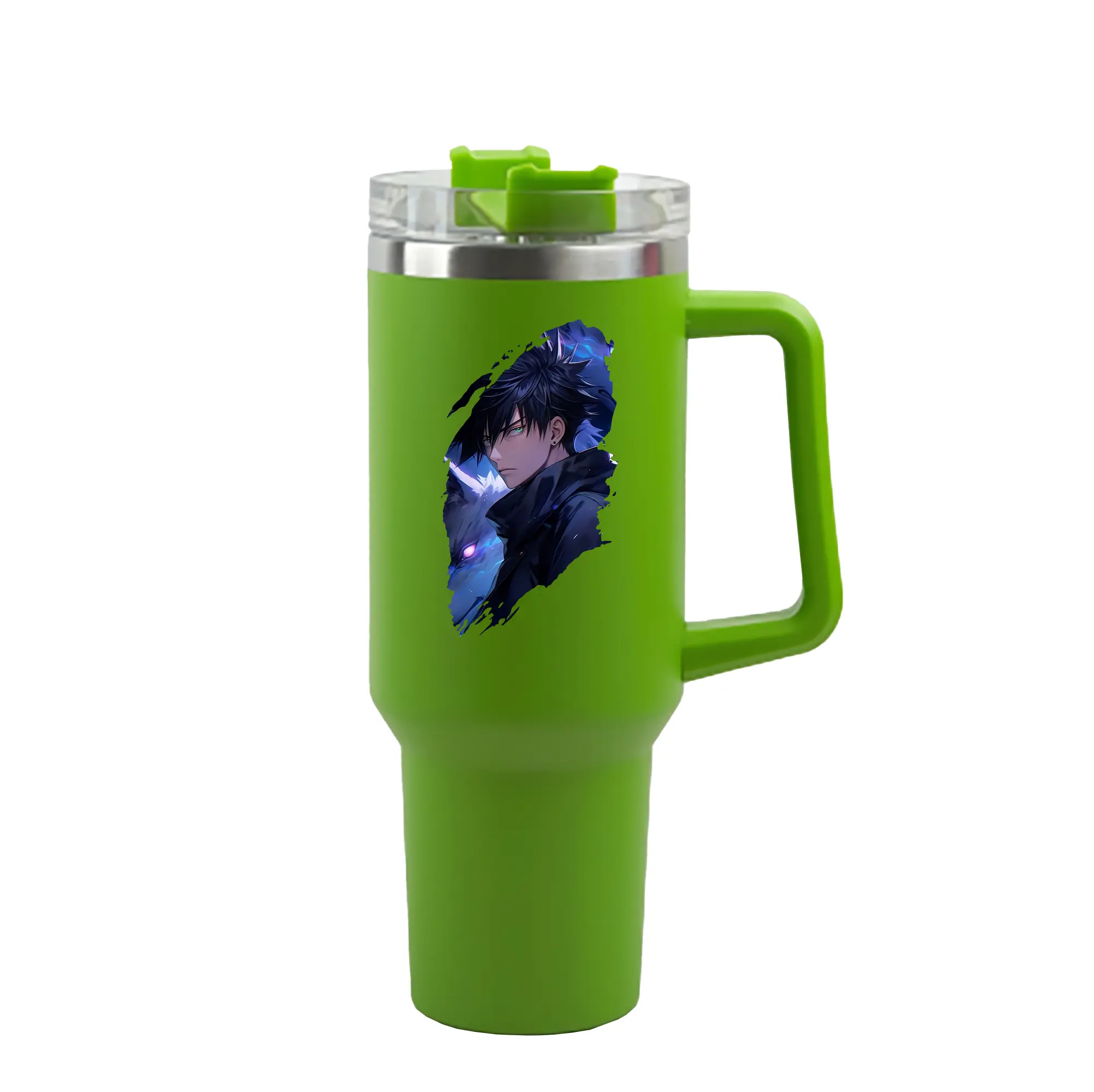 呪術廻戦 グッズ,伏黒 恵 - 1200mL 車用タンブラー ・ クリスタルステッカー ・ 304ステンレス 内側 ・ 201ステンレス 外側 ・ 保温 保冷 ・ ハンドル&ストロー付き ・ 通勤 ドライブ アウトドア用