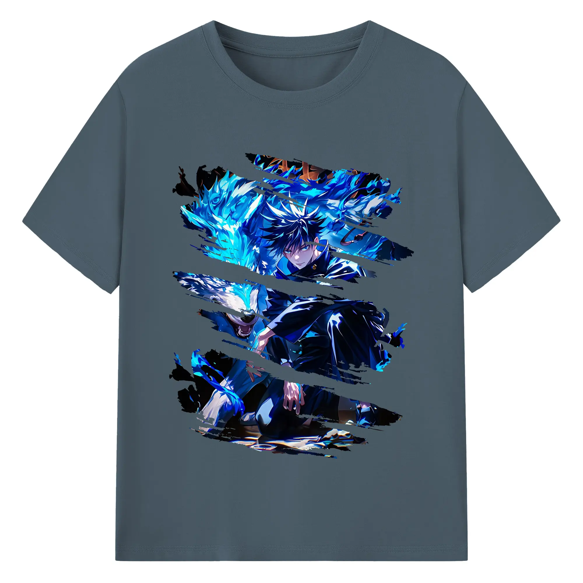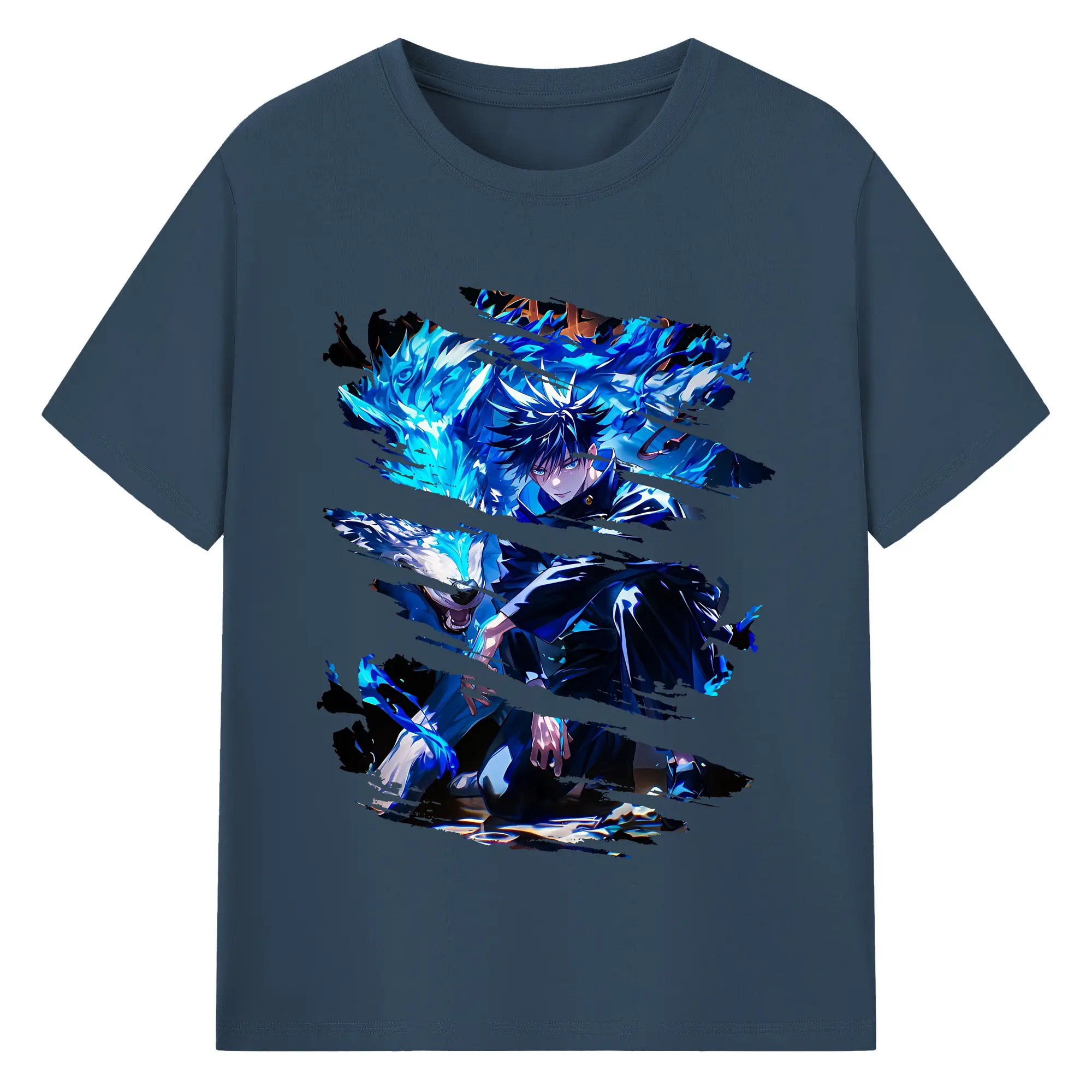 呪術廻戦 グッズ,伏黒 恵 - 綿100% 半袖Tシャツ ・ バックプリント ・ 快適 通気性 ・ 日常使い 散歩 スポーツ用