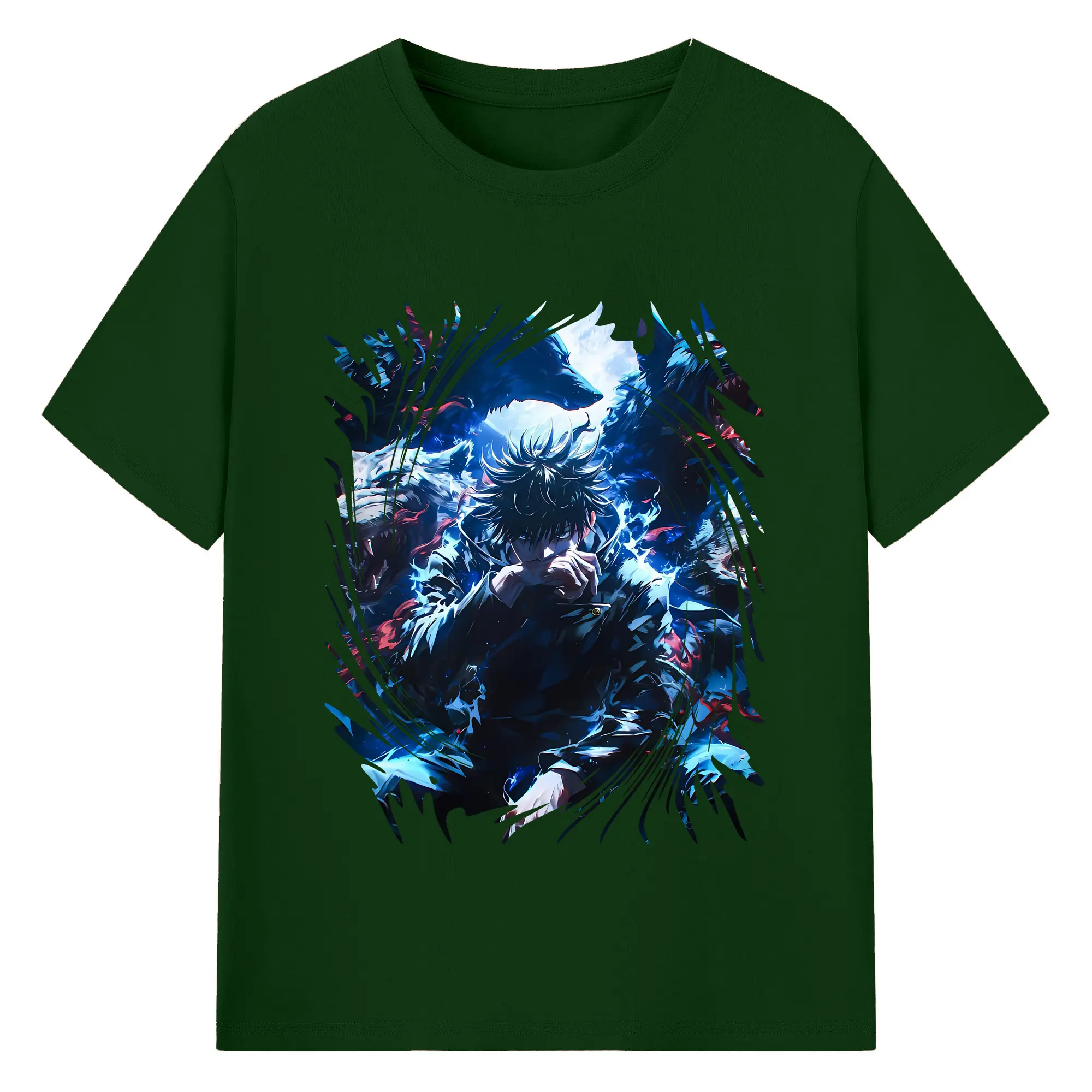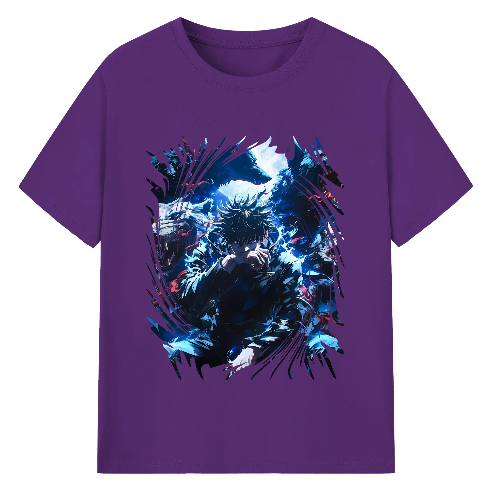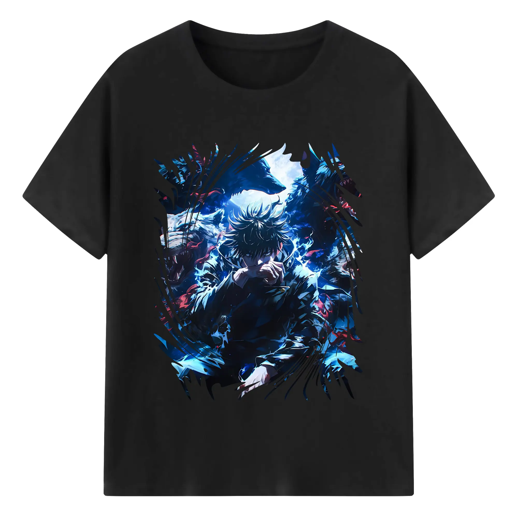 呪術廻戦 グッズ,伏黒 恵 - 綿100% 半袖Tシャツ ・ バックプリント ・ 快適 通気性 ・ 日常使い 散歩 スポーツ用