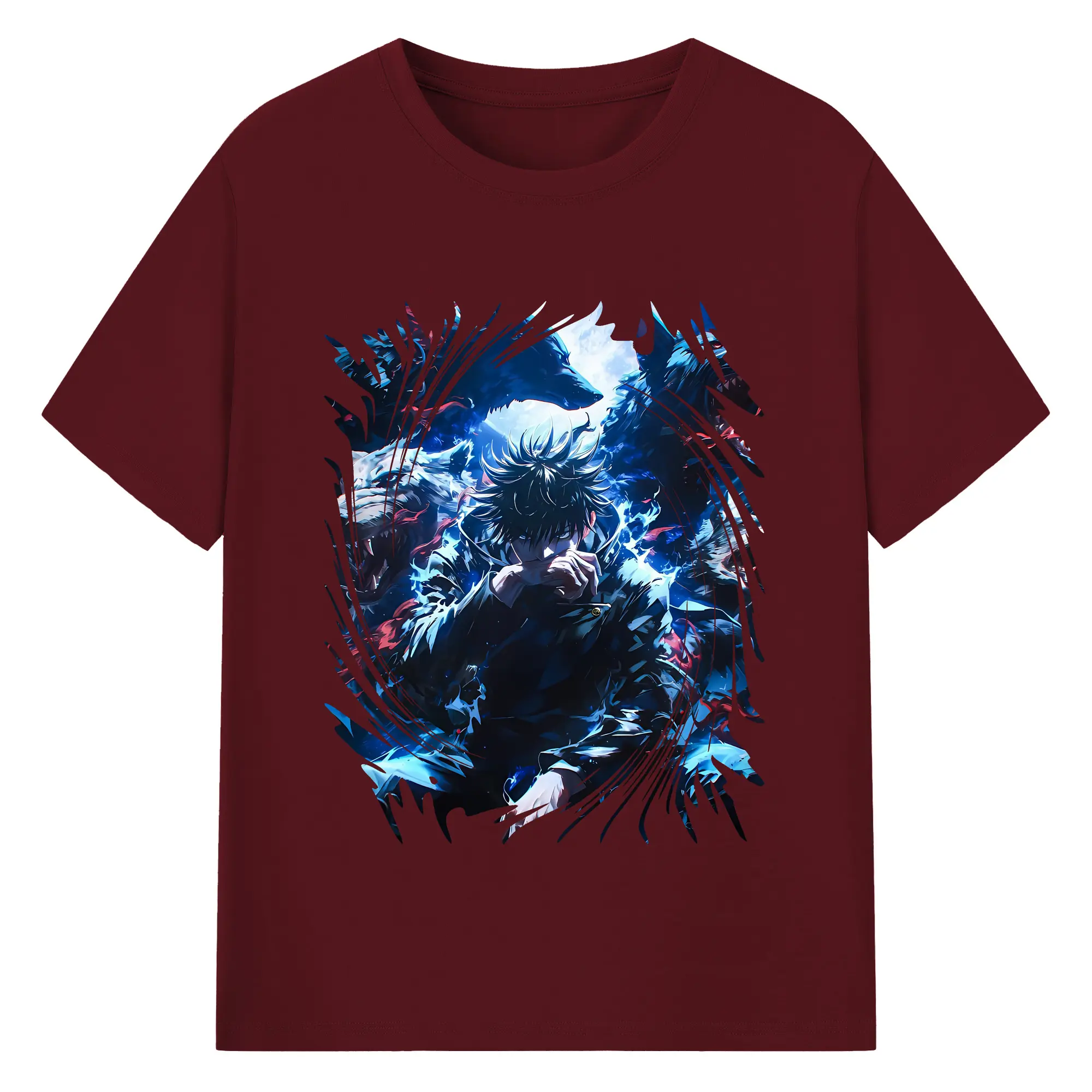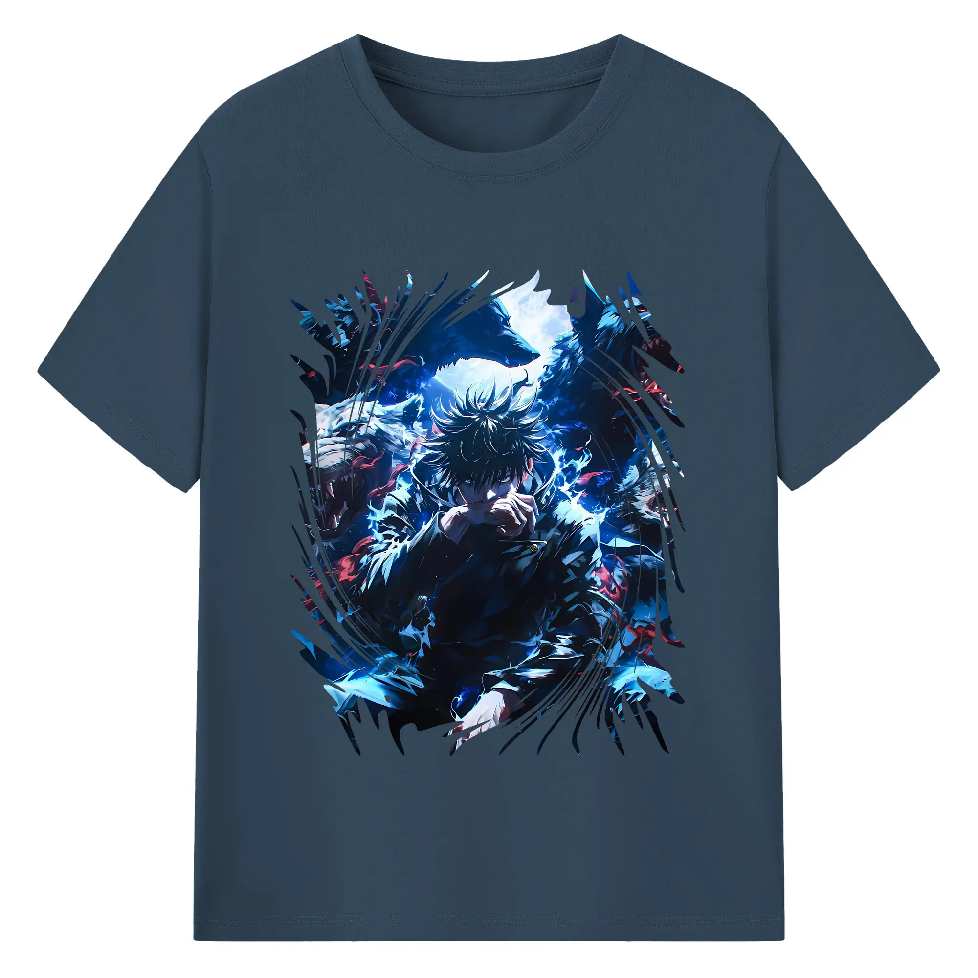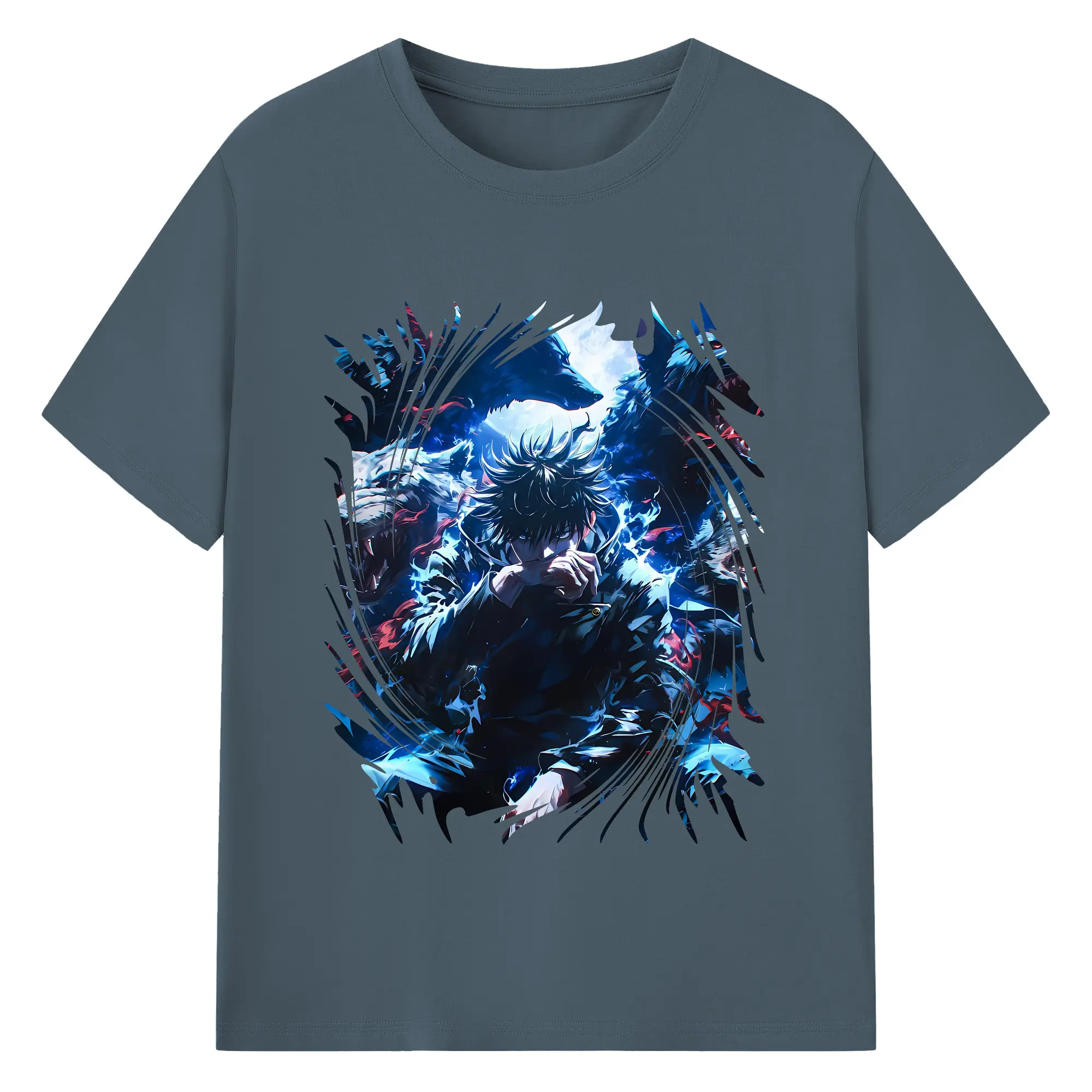 呪術廻戦 グッズ,伏黒 恵 - 綿100% 半袖Tシャツ ・ バックプリント ・ 快適 通気性 ・ 日常使い 散歩 スポーツ用