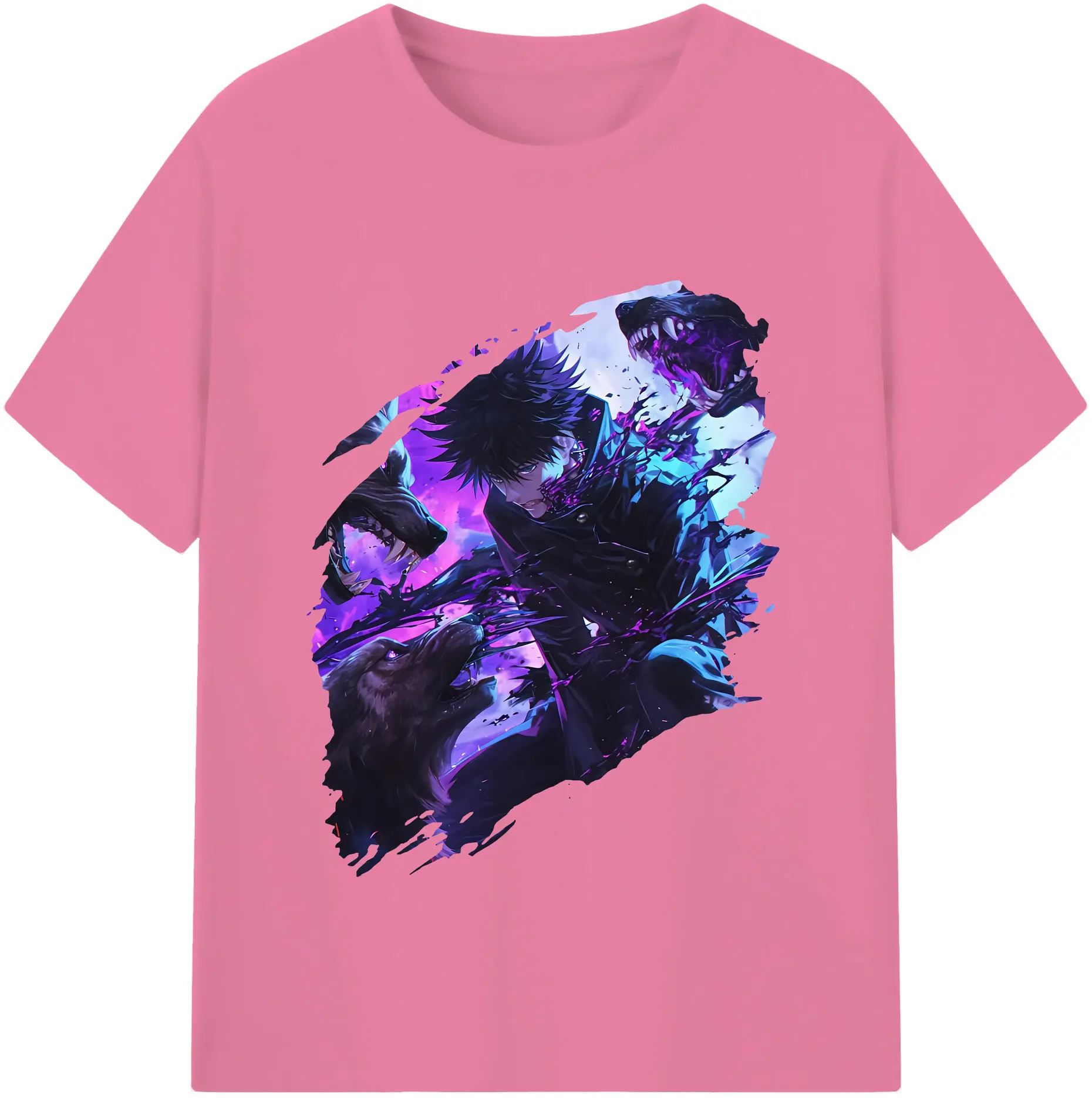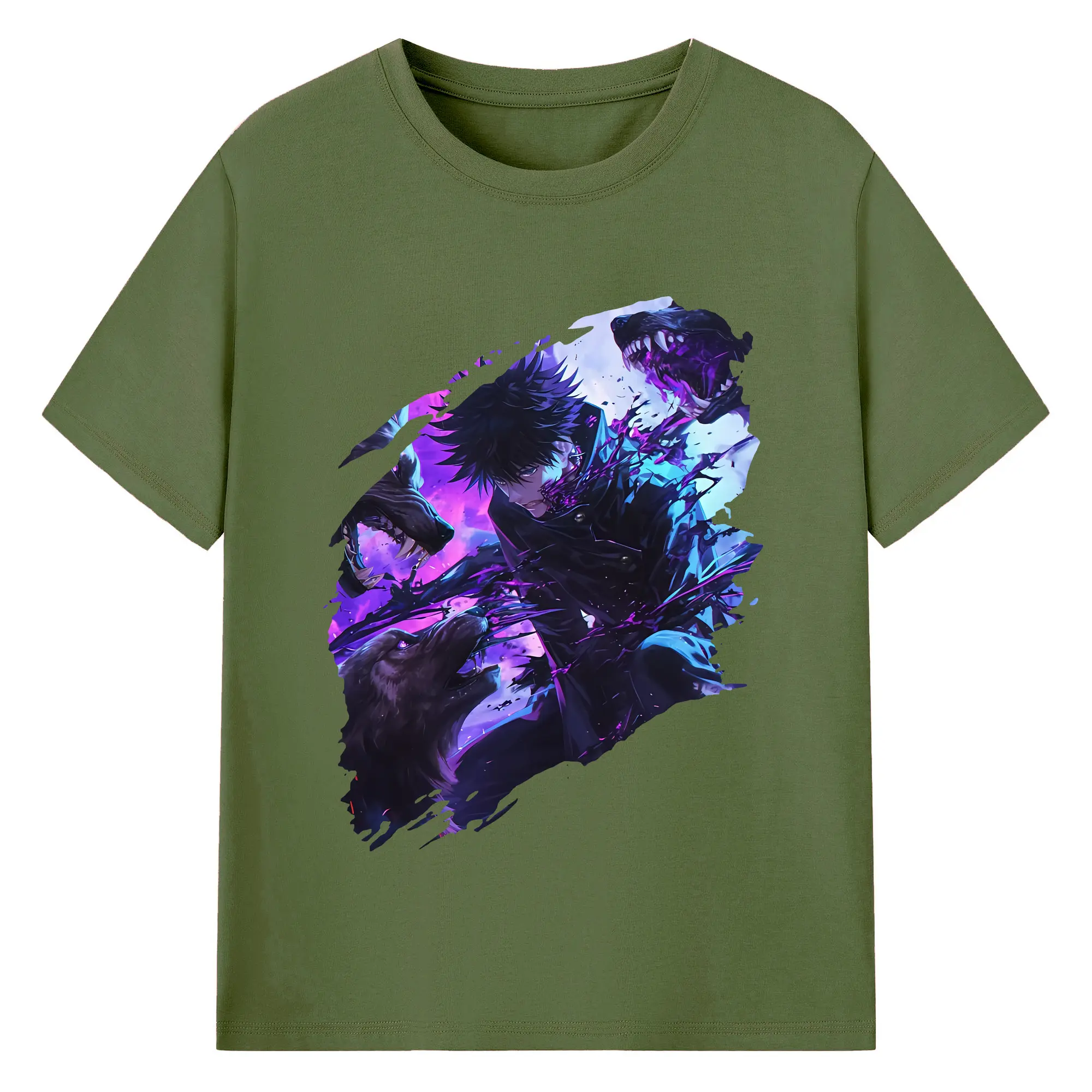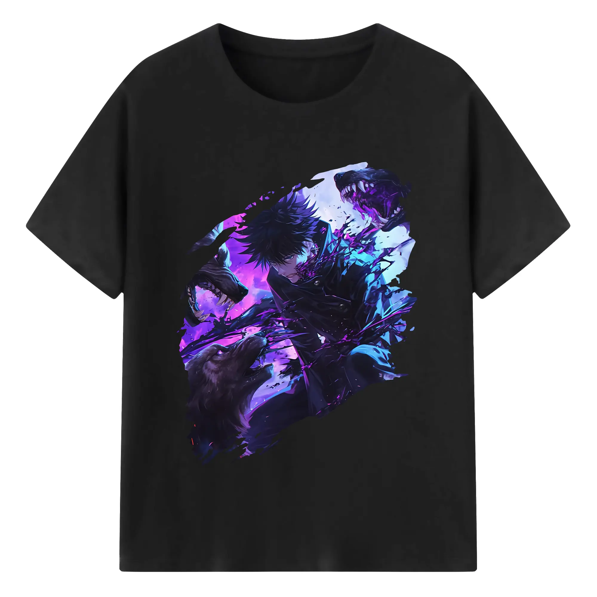呪術廻戦 グッズ,伏黒 恵 - 綿100% 半袖Tシャツ ・ バックプリント ・ 快適 通気性 ・ 日常使い 散歩 スポーツ用
