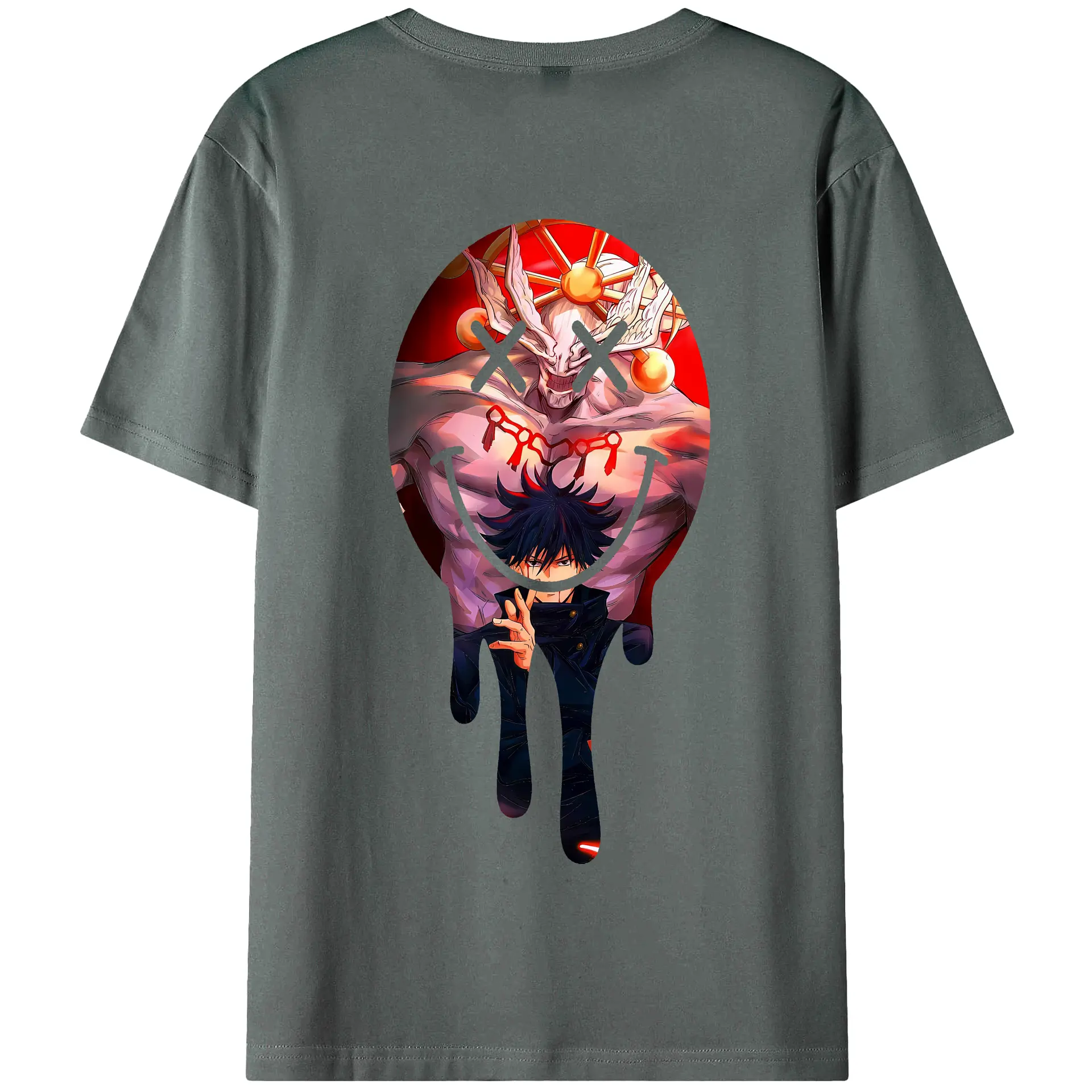 呪術廻戦 グッズ,伏黒 恵 - 綿100% 半袖Tシャツ ・ フロントプリント ・ 快適 通気性 ・ 日常使い 散歩 スポーツ用
