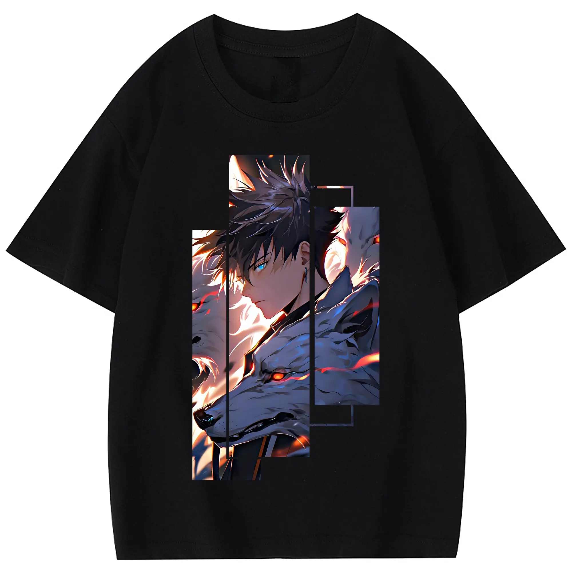 呪術廻戦 グッズ,伏黒 恵 - 綿100% 半袖Tシャツ ・ フロントプリント ・ 快適 通気性 ・ 日常使い 散歩 スポーツ用