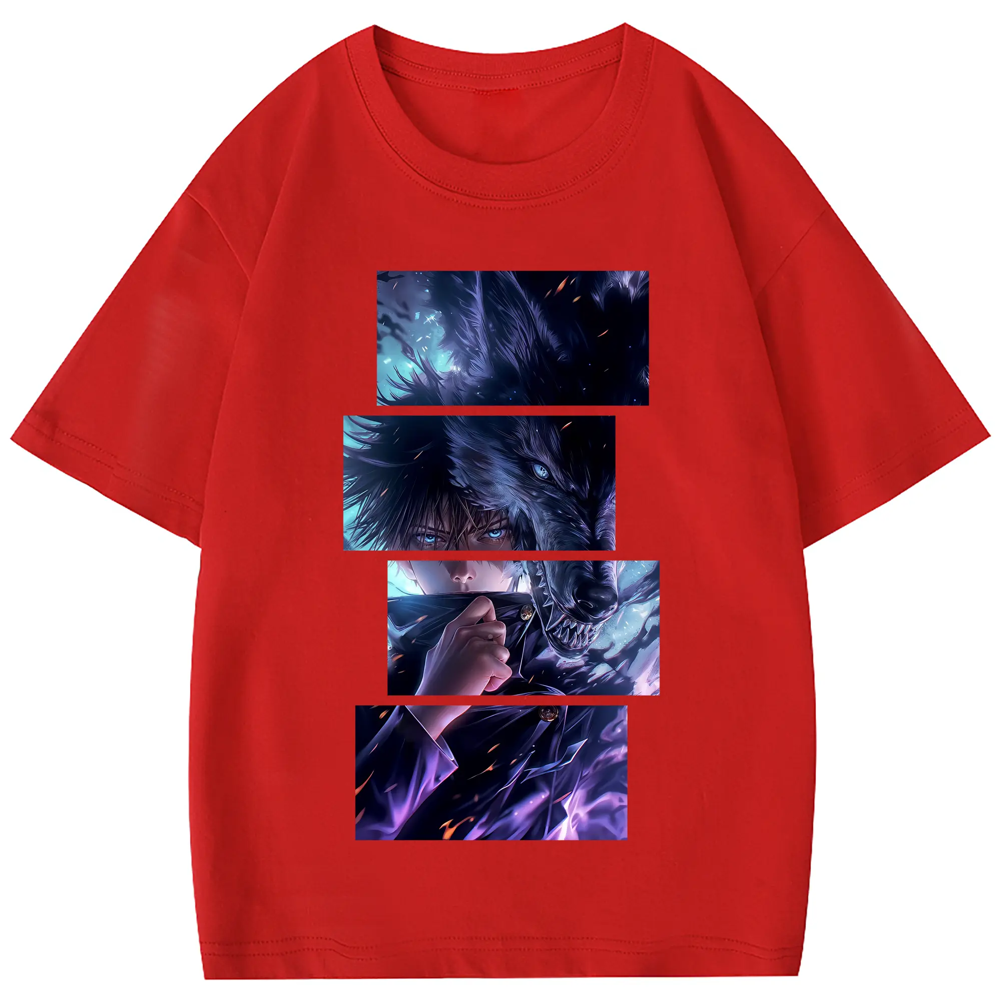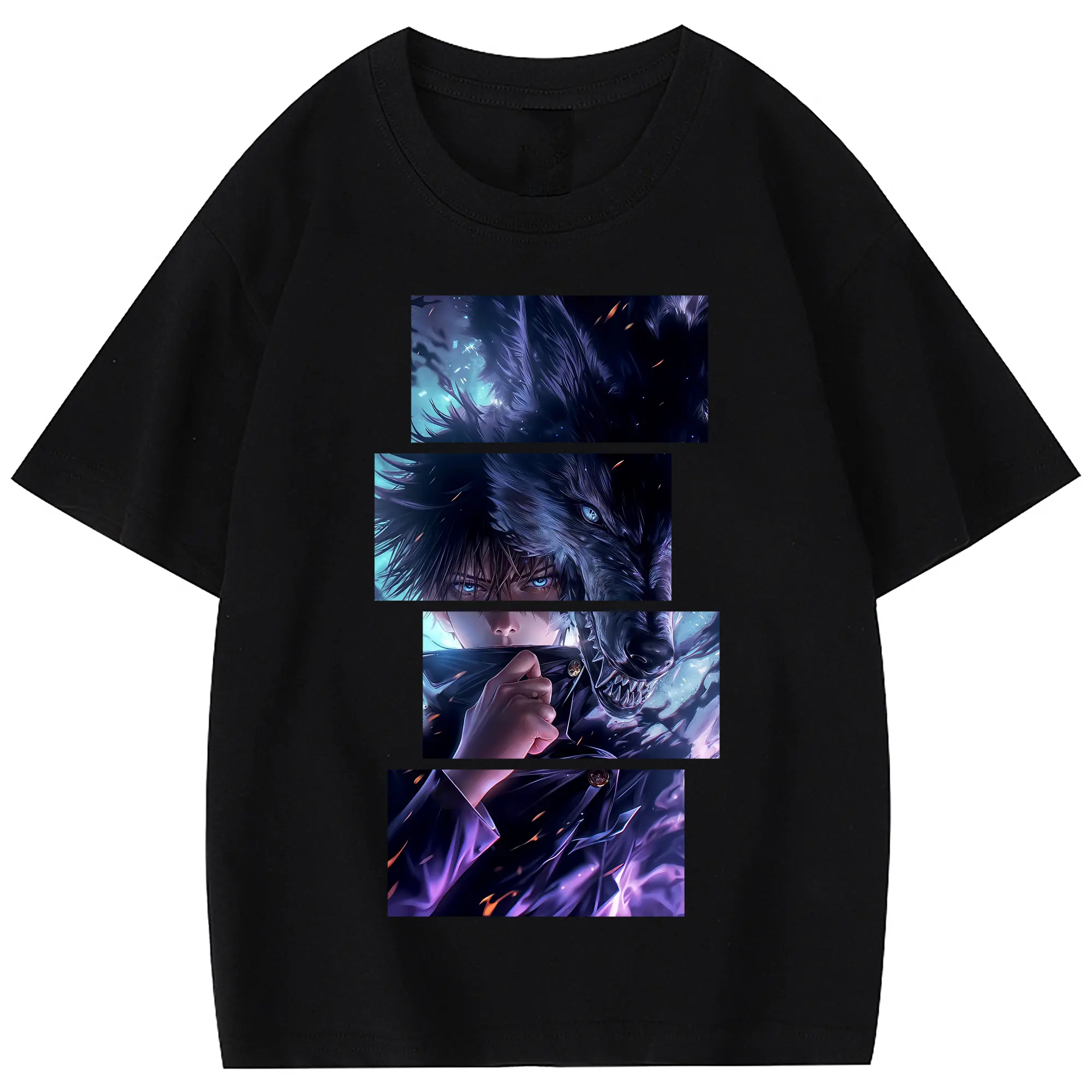 呪術廻戦 グッズ,伏黒 恵 - 綿100% 半袖Tシャツ ・ バックプリント ・ 快適 通気性 ・ 日常使い 散歩 スポーツ用