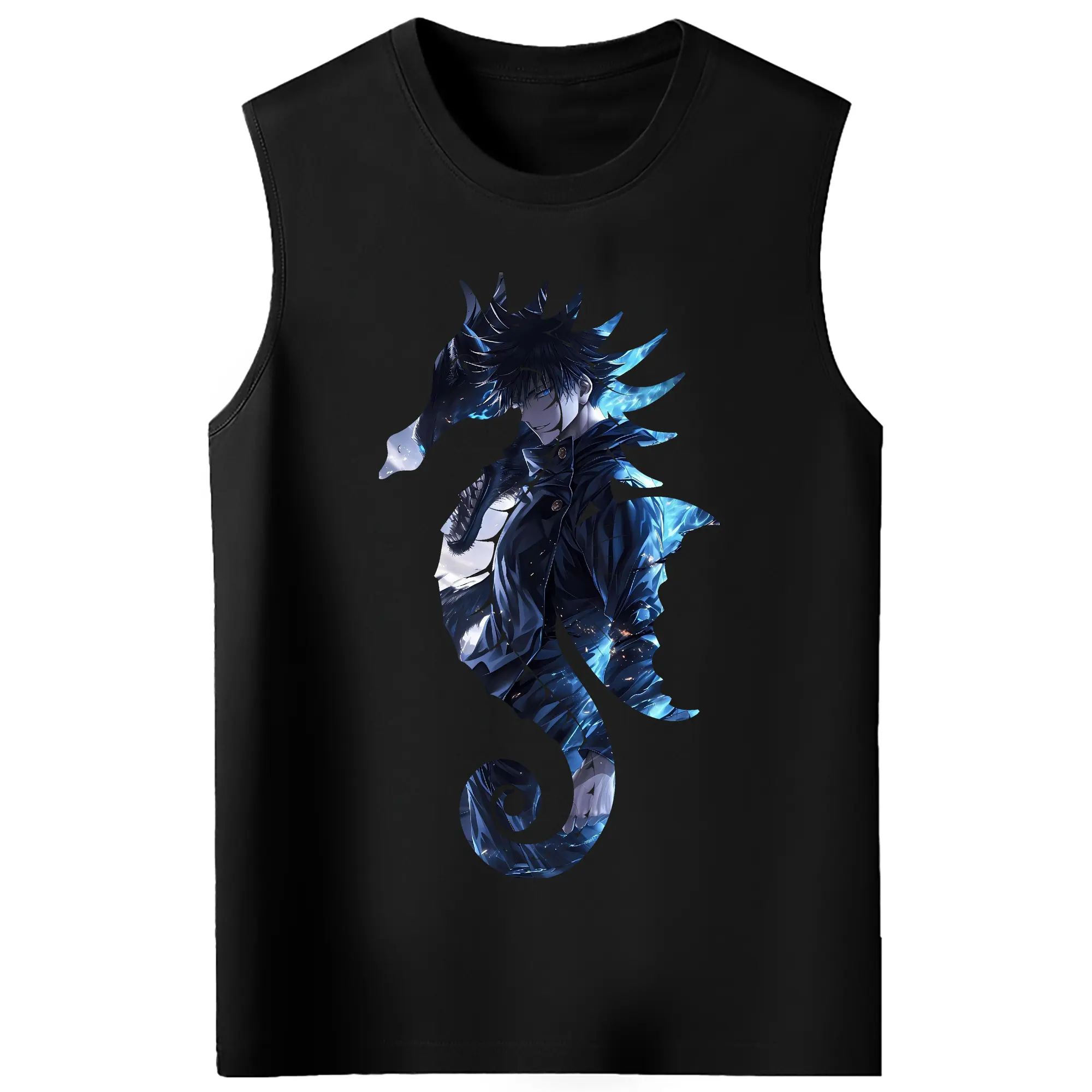 呪術廻戦 グッズ,伏黒 恵 - コットン100% タンクトップ ・ フロントプリント ・ タイトフィット ・ 快適 通気性 ・ スポーツ カジュアル 散歩用