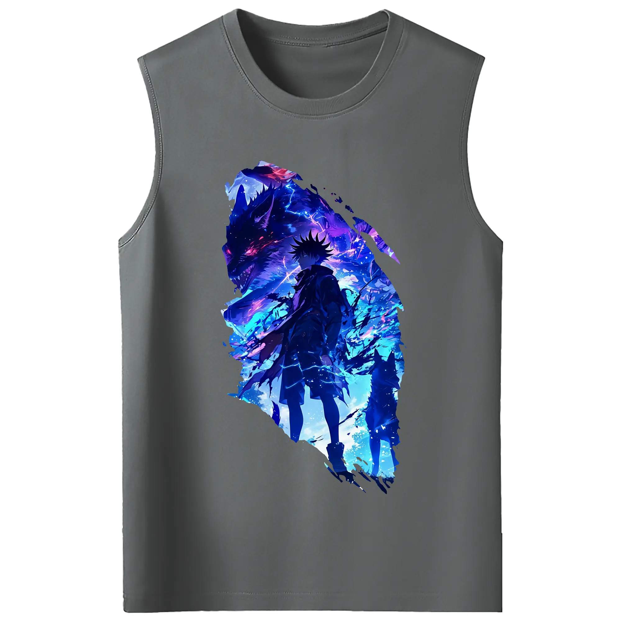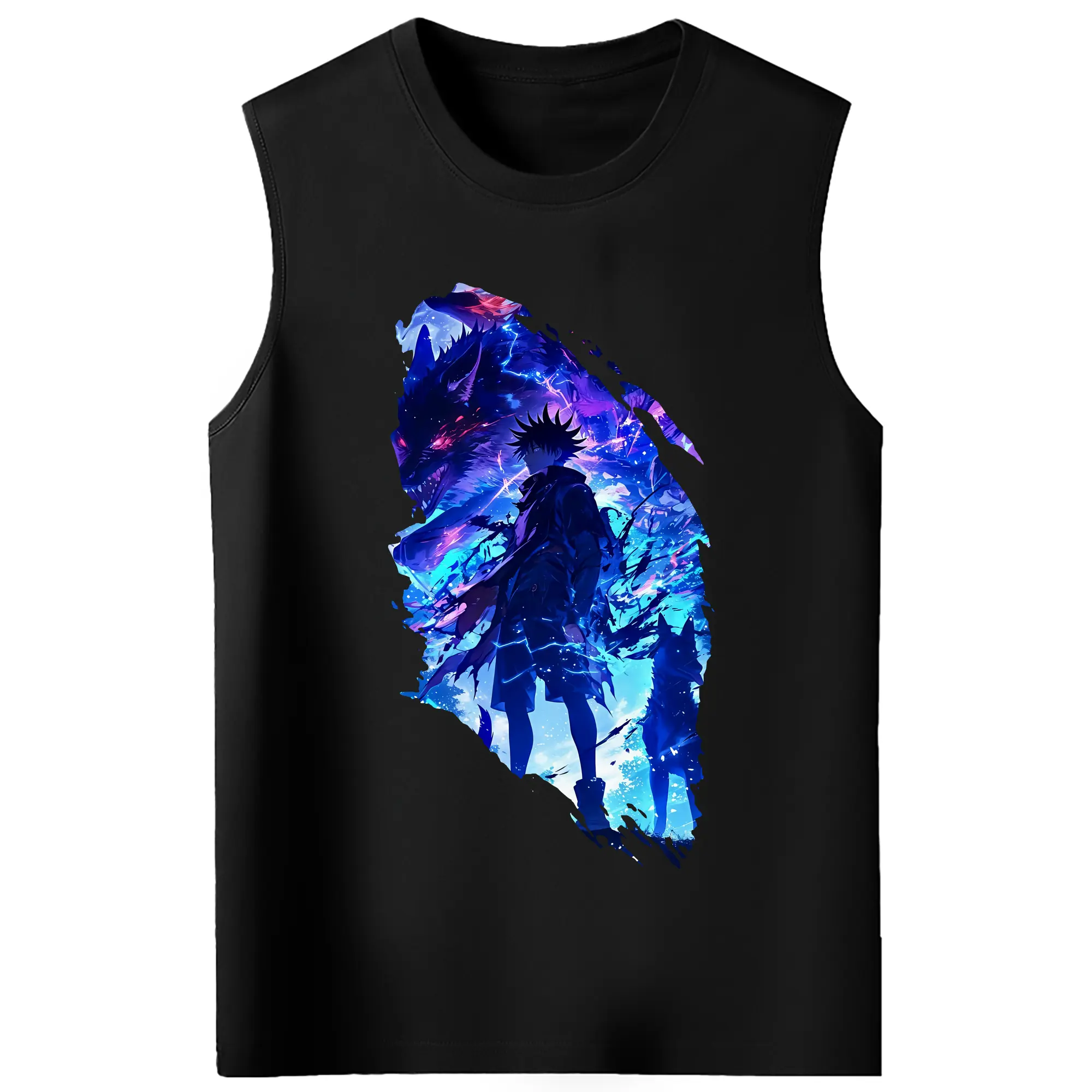 呪術廻戦 グッズ,伏黒 恵 - コットン100% タンクトップ ・ フロントプリント ・ タイトフィット ・ 快適 通気性 ・ スポーツ カジュアル 散歩用