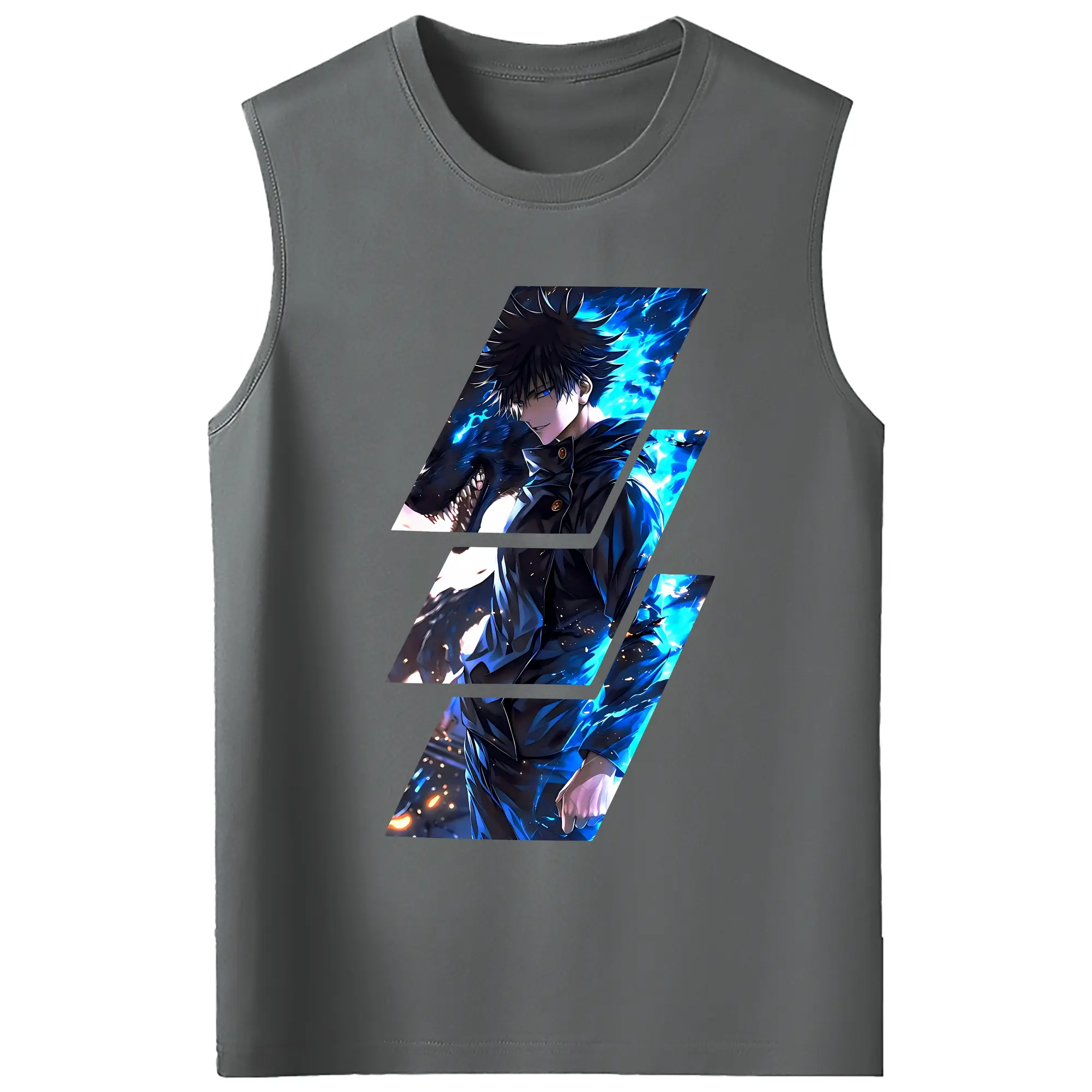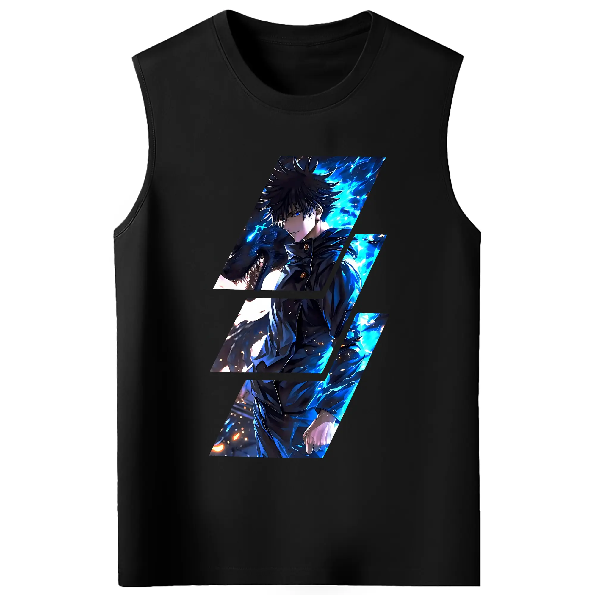 呪術廻戦 グッズ,伏黒 恵 - コットン100% タンクトップ ・ フロントプリント ・ タイトフィット ・ 快適 通気性 ・ スポーツ カジュアル 散歩用