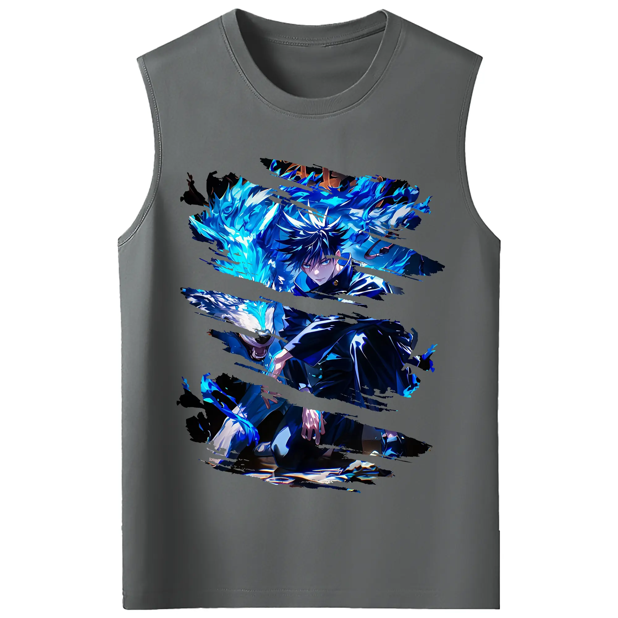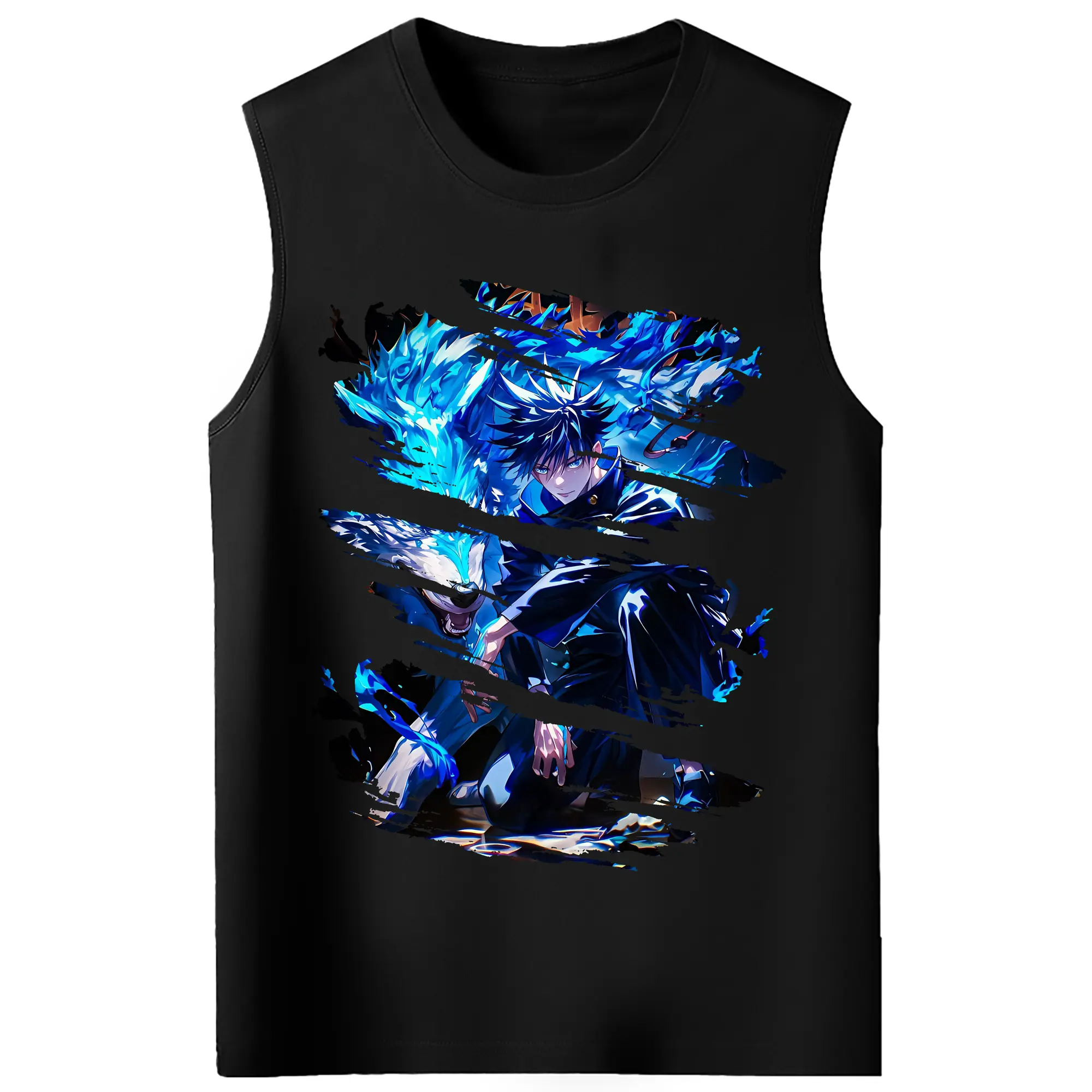 呪術廻戦 グッズ,伏黒 恵 - コットン100% タンクトップ ・ フロントプリント ・ タイトフィット ・ 快適 通気性 ・ スポーツ カジュアル 散歩用