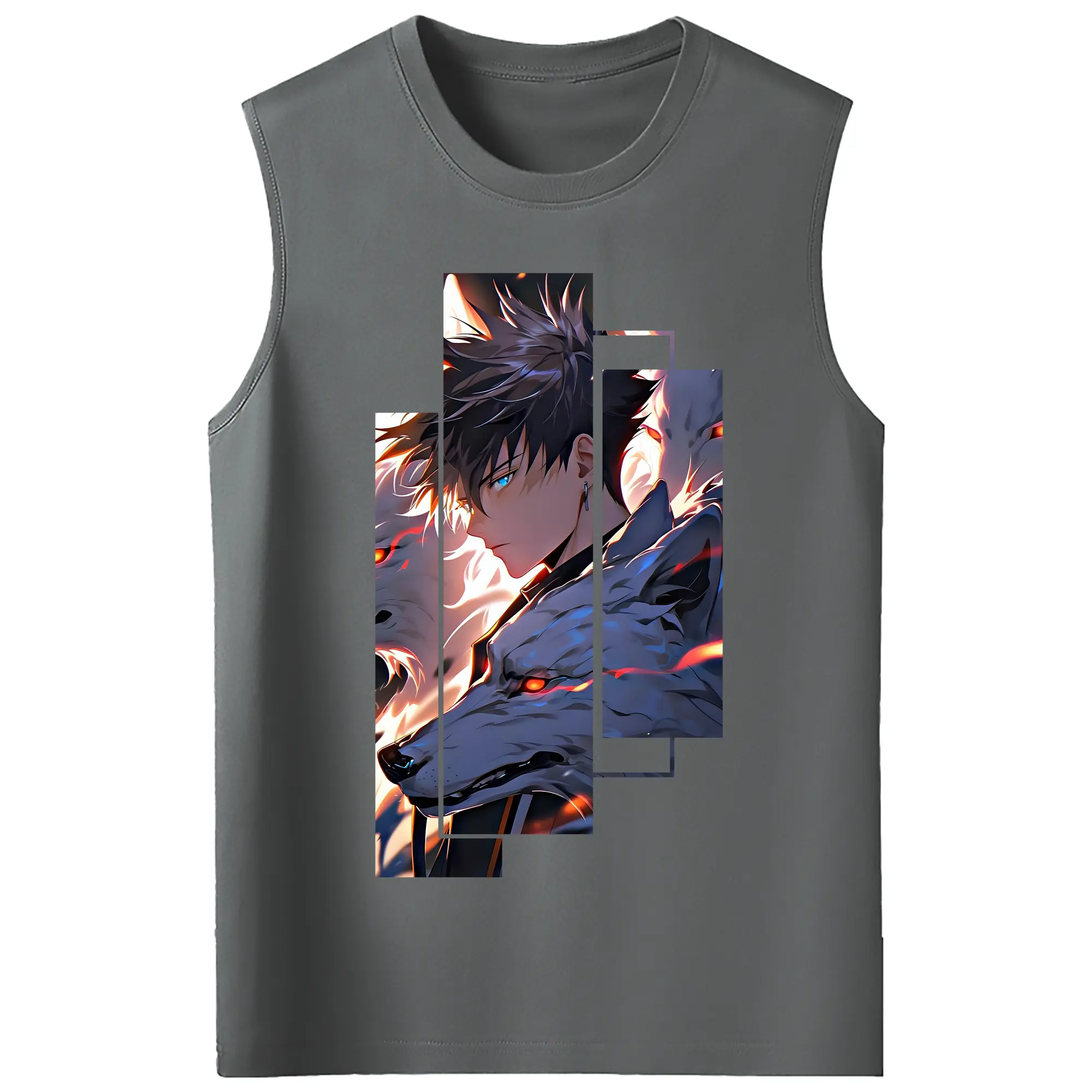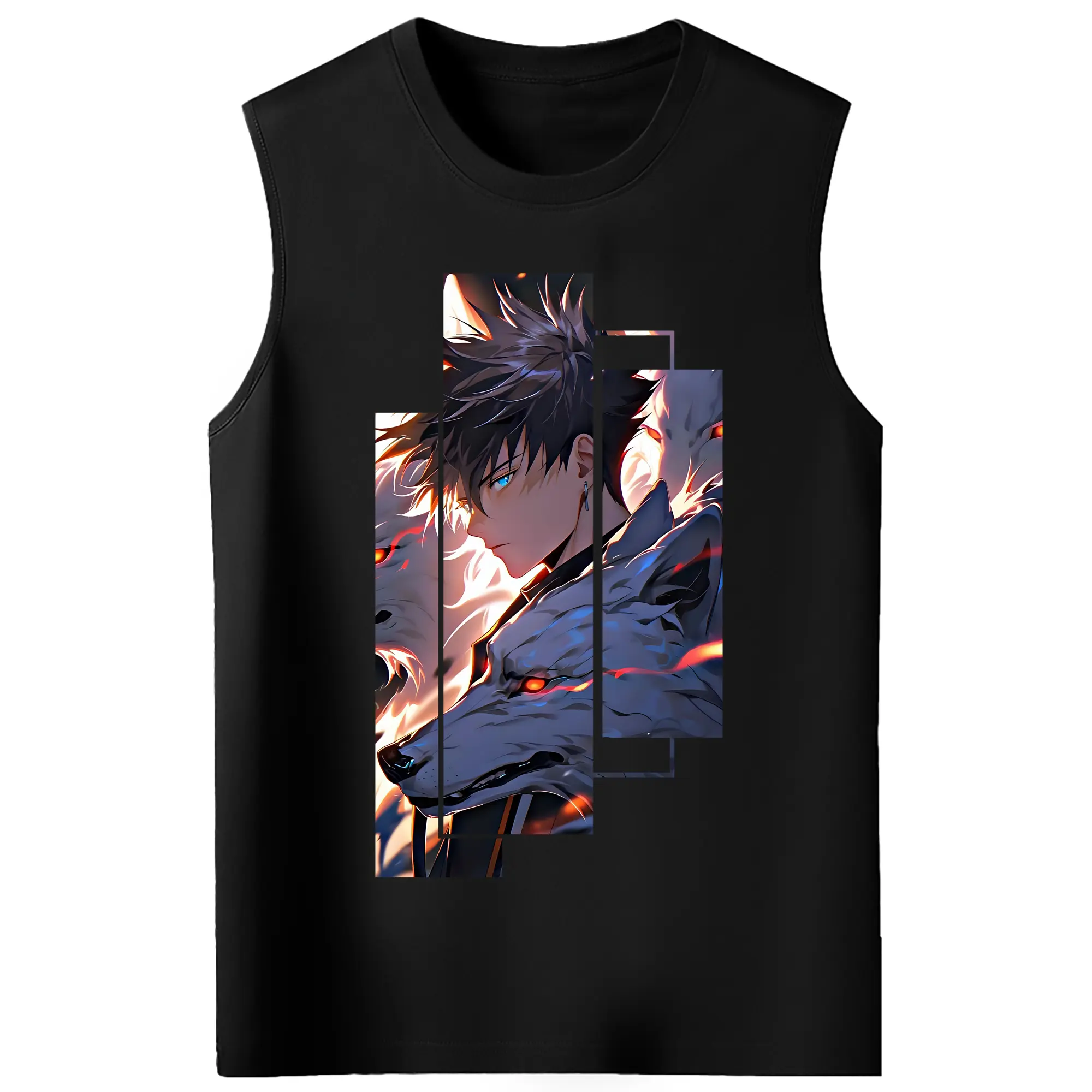 呪術廻戦 グッズ,伏黒 恵 - コットン100% タンクトップ ・ フロントプリント ・ タイトフィット ・ 快適 通気性 ・ スポーツ カジュアル 散歩用