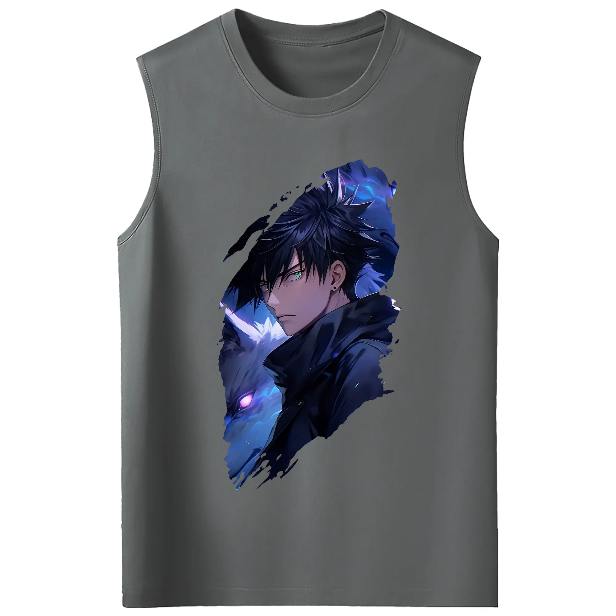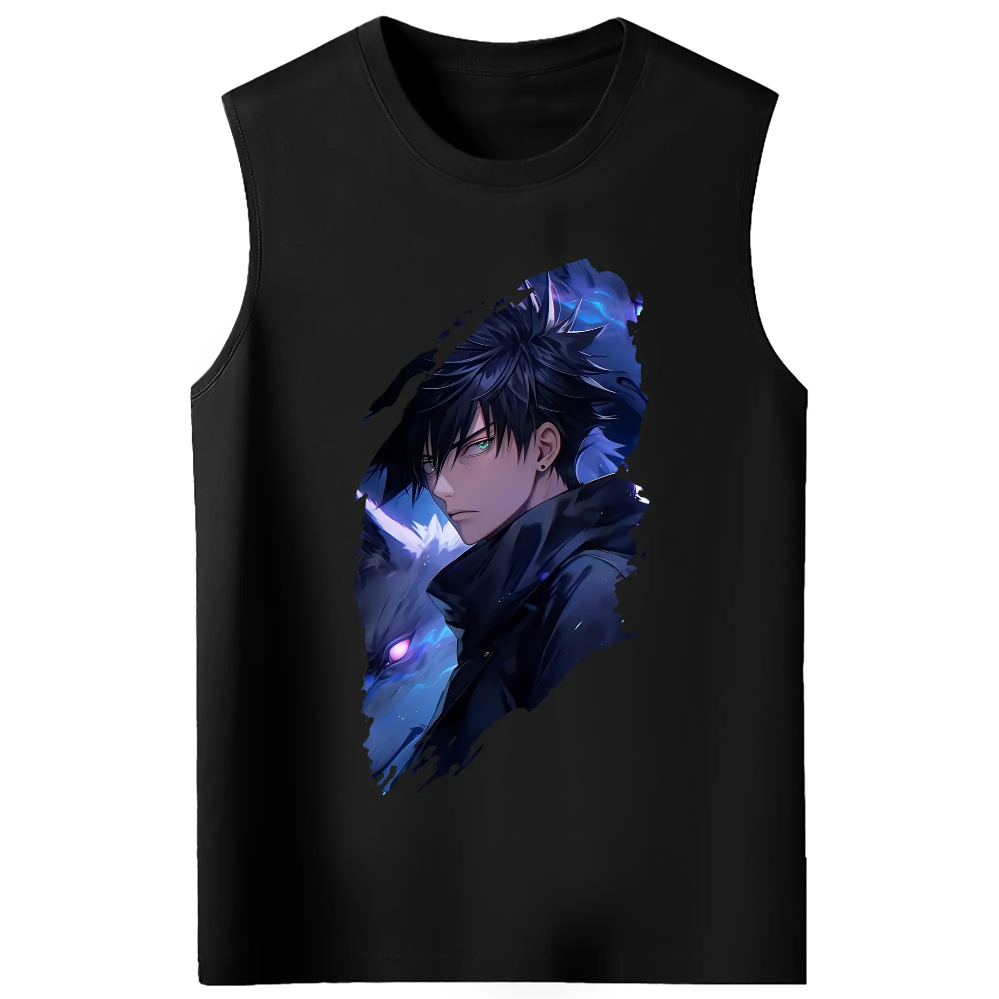 呪術廻戦 グッズ,伏黒 恵 - コットン100% タンクトップ ・ フロントプリント ・ タイトフィット ・ 快適 通気性 ・ スポーツ カジュアル 散歩用