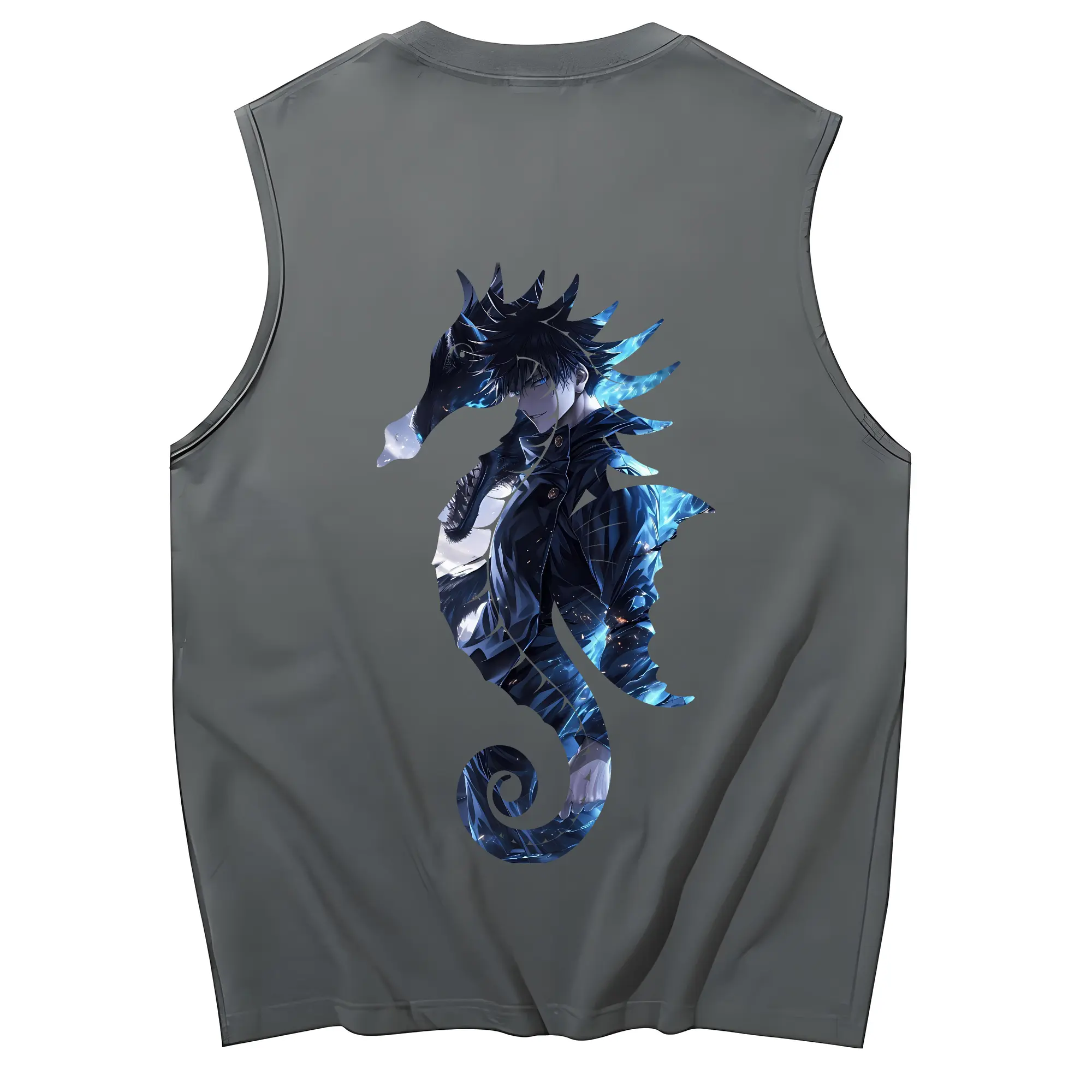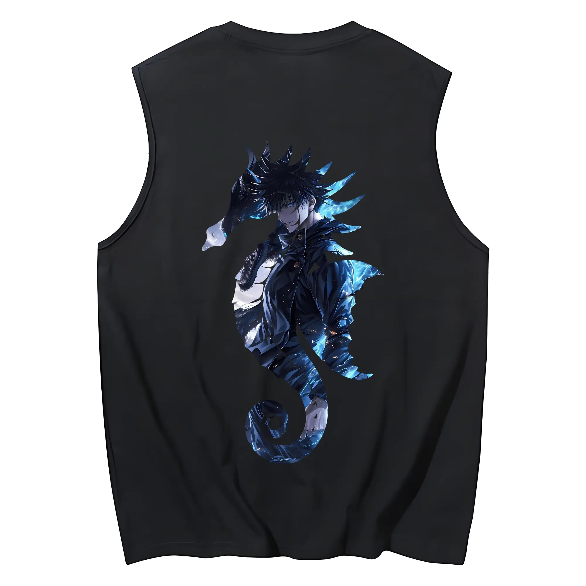 呪術廻戦 グッズ,伏黒 恵 - コットン100% タンクトップ ・ 背面プリント ・ タイトシルエット ・ 快適 通気性 ・ スポーツ カジュアル 散歩用