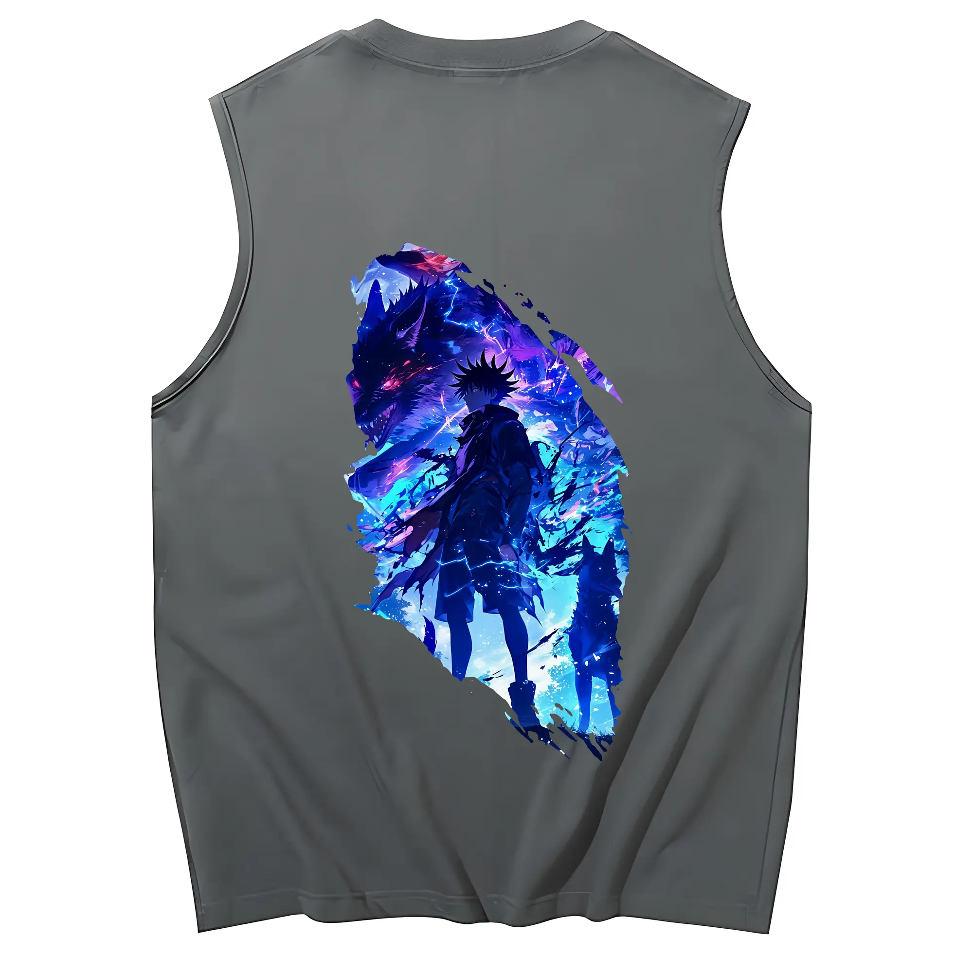 呪術廻戦 グッズ,伏黒 恵 - コットン100% タンクトップ ・ 背面プリント ・ タイトシルエット ・ 快適 通気性 ・ スポーツ カジュアル 散歩用