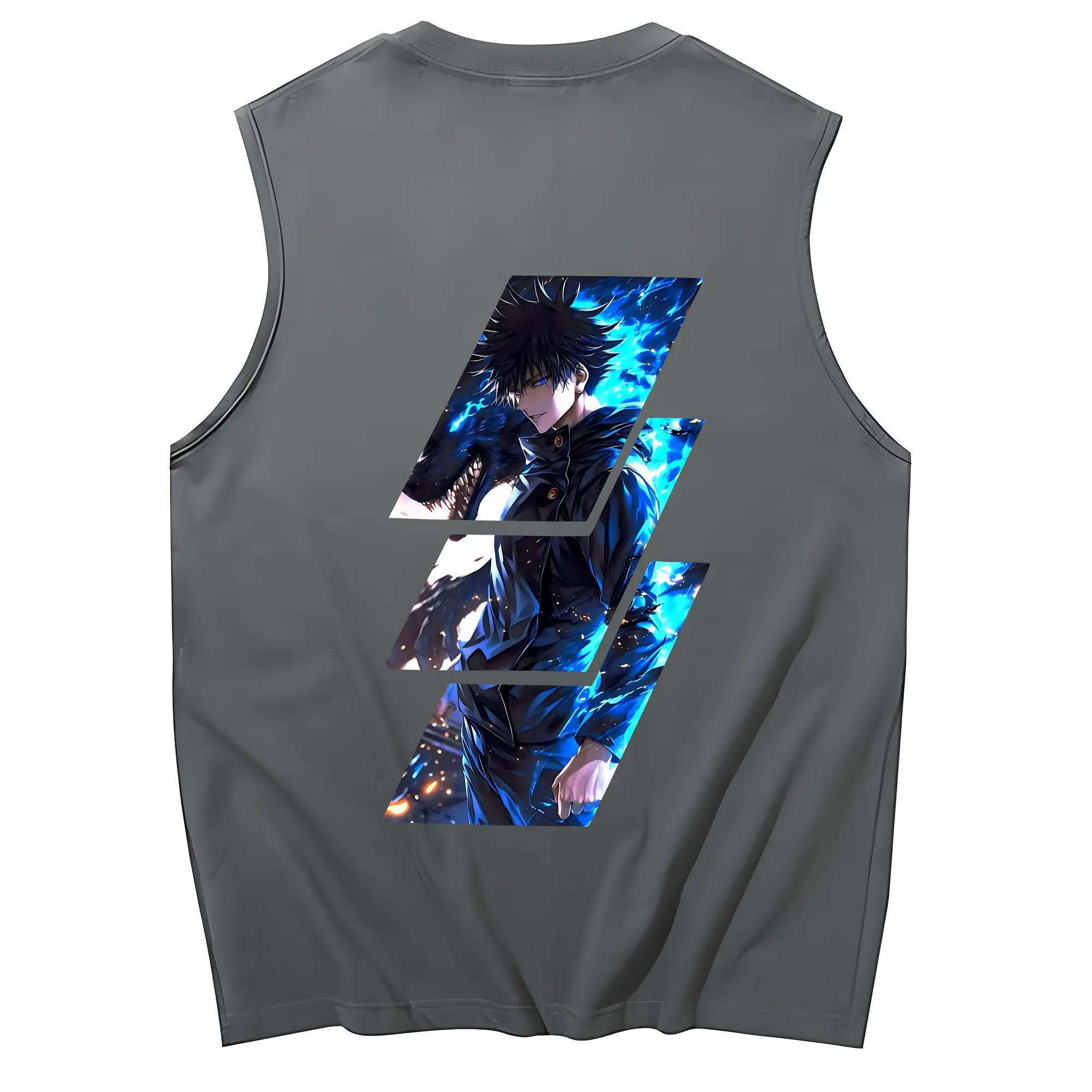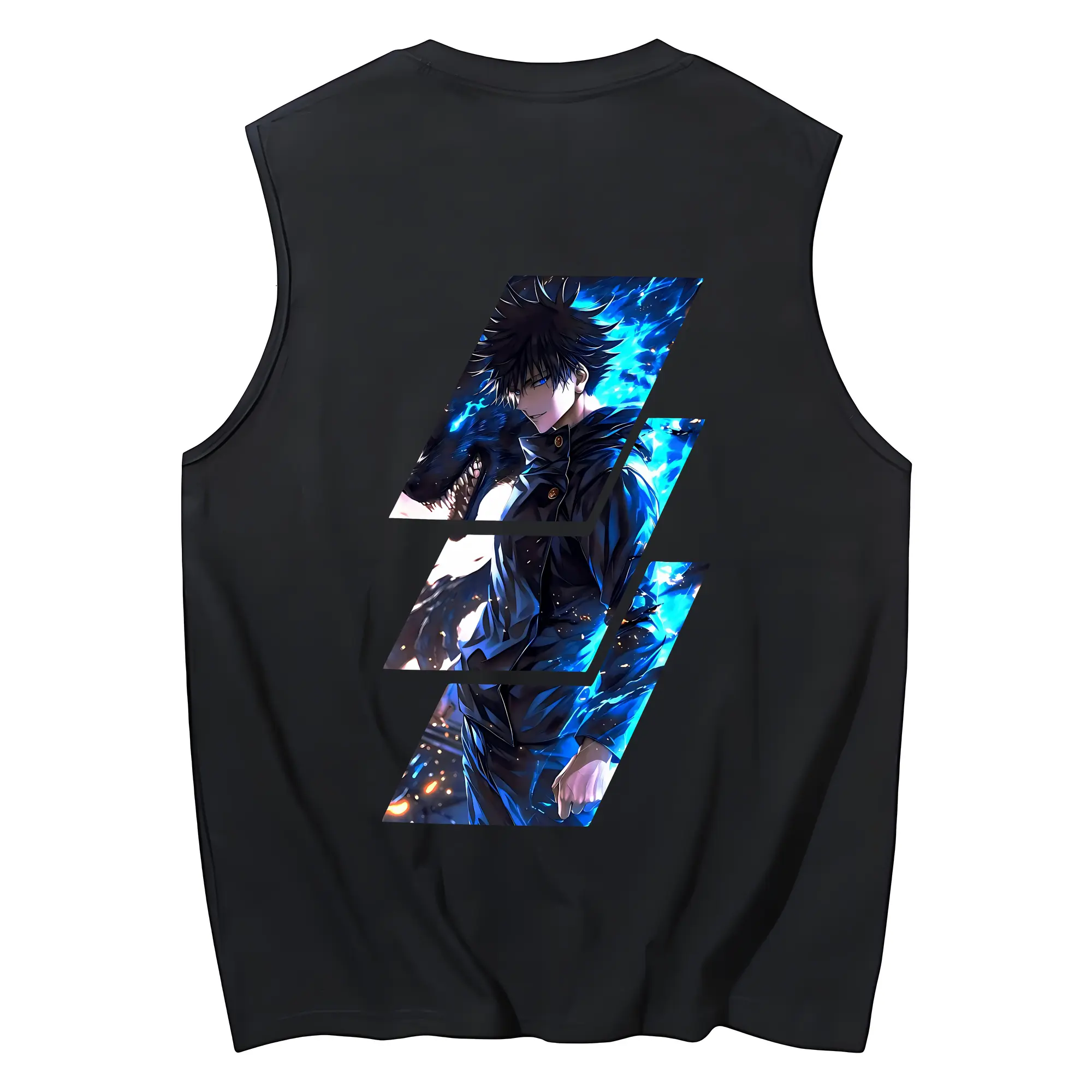 呪術廻戦 グッズ,伏黒 恵 - コットン100% タンクトップ ・ 背面プリント ・ タイトシルエット ・ 快適 通気性 ・ スポーツ カジュアル 散歩用