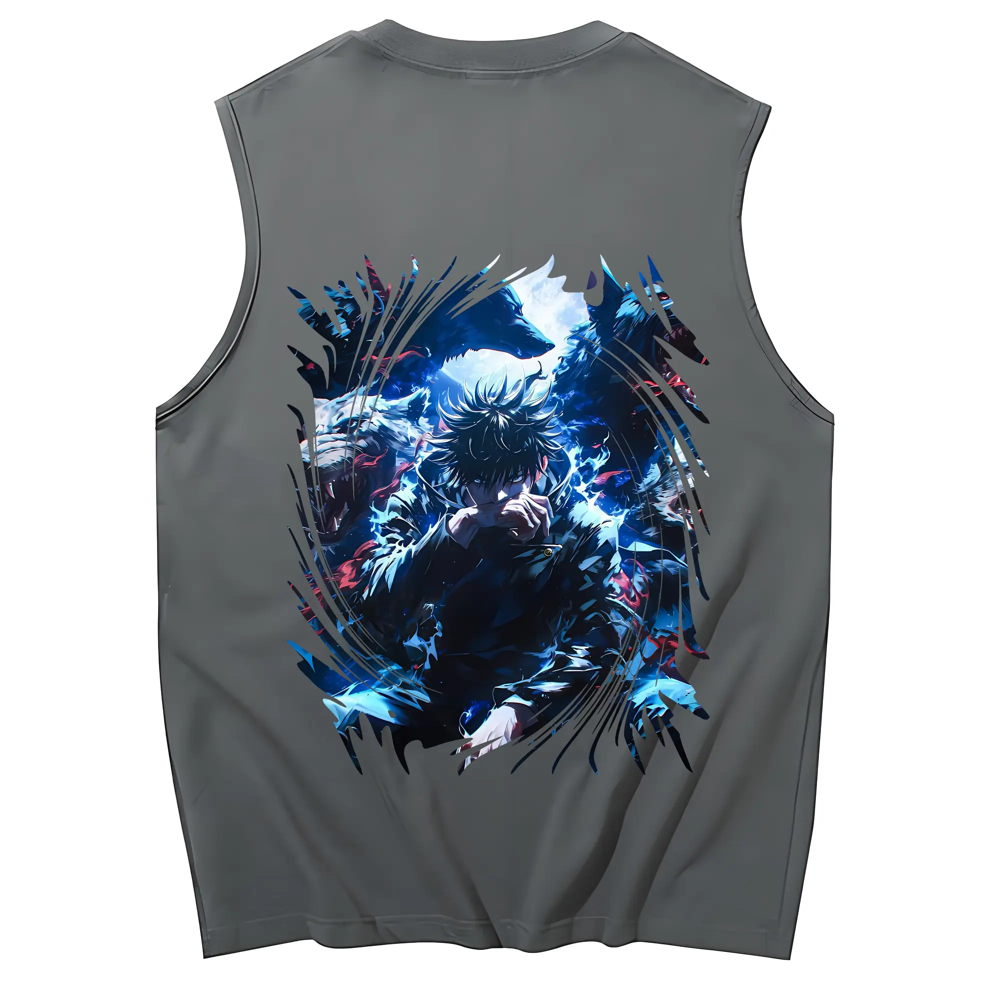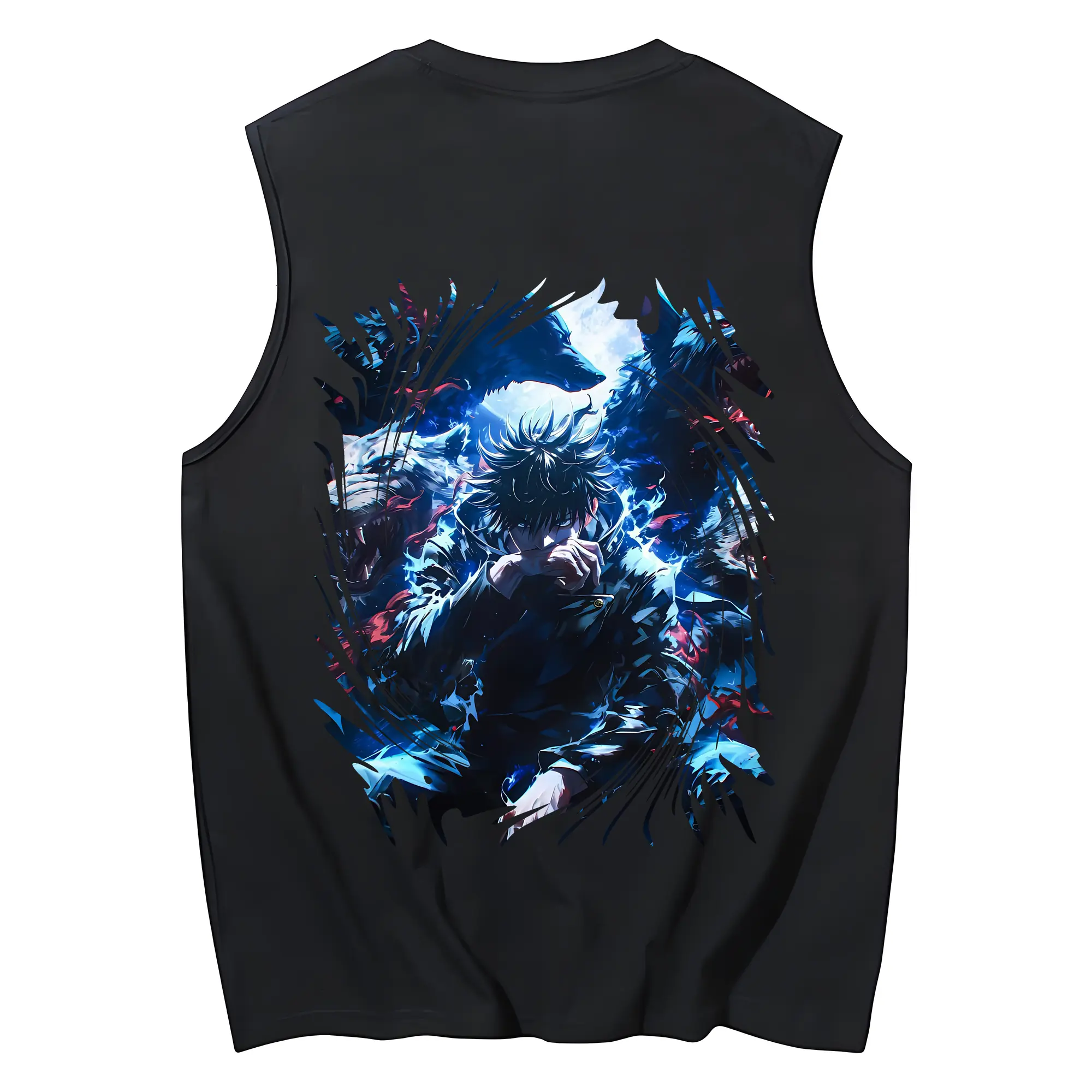 呪術廻戦 グッズ,伏黒 恵 - コットン100% タンクトップ ・ 背面プリント ・ タイトシルエット ・ 快適 通気性 ・ スポーツ カジュアル 散歩用