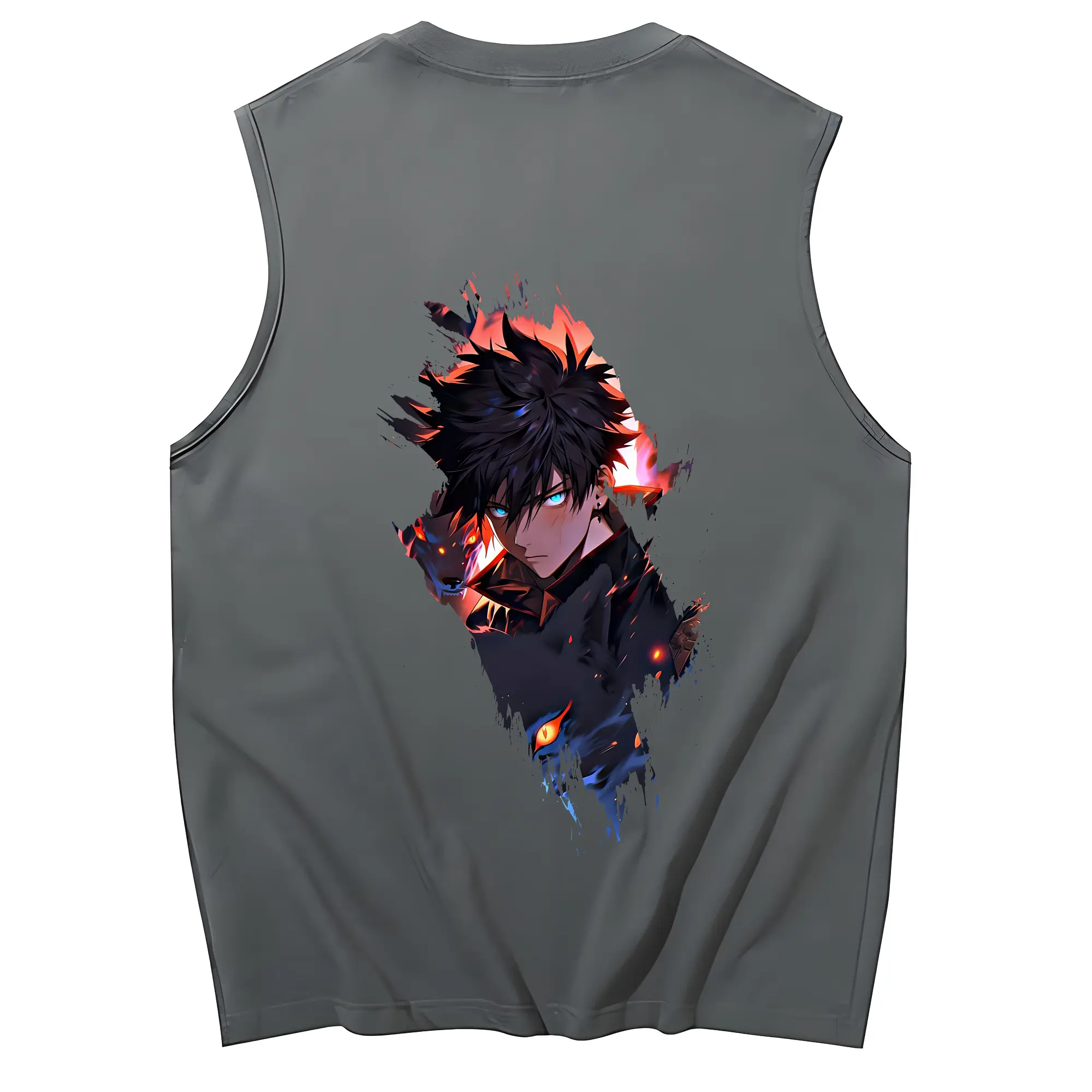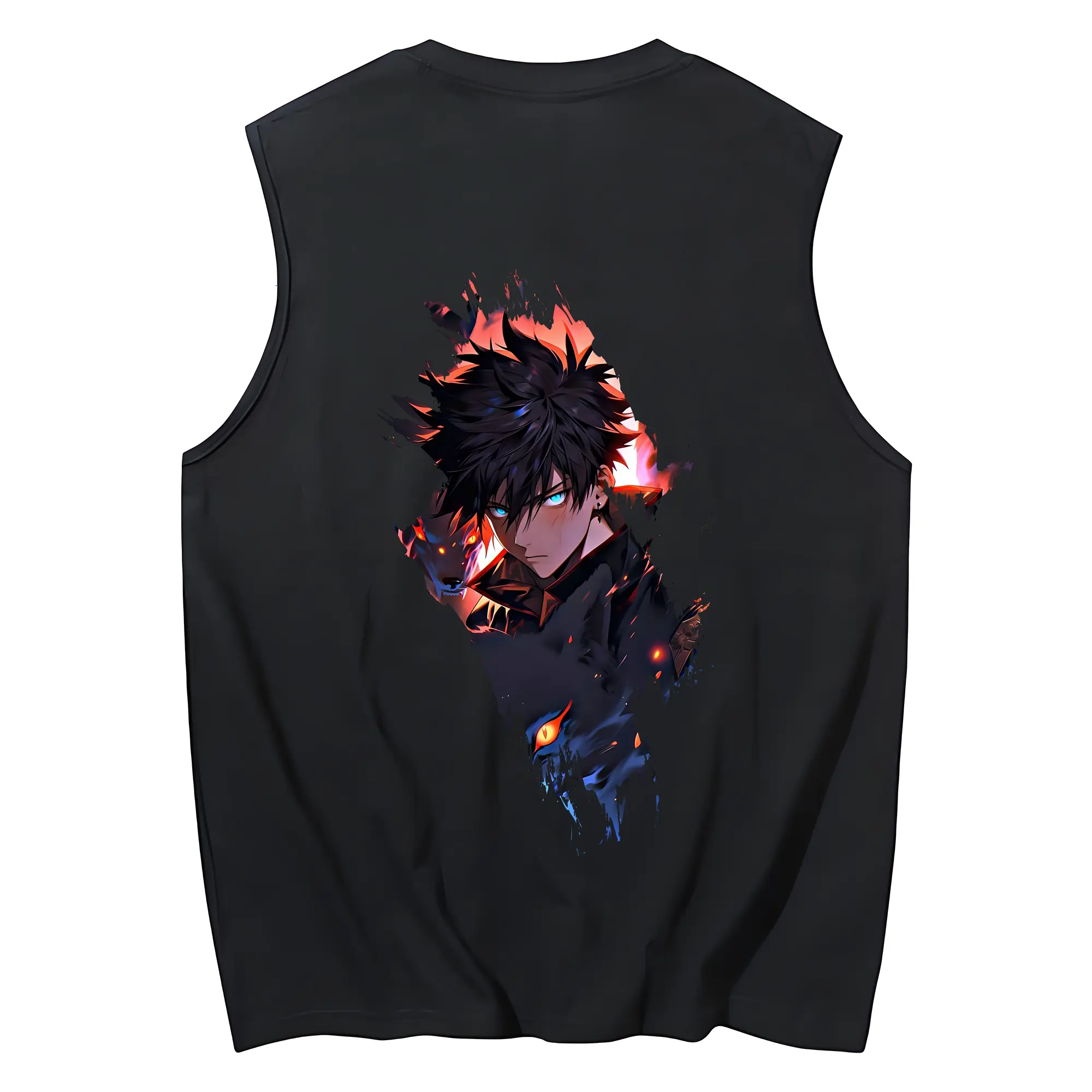 呪術廻戦 グッズ,伏黒 恵 - コットン100% タンクトップ ・ 背面プリント ・ タイトシルエット ・ 快適 通気性 ・ スポーツ カジュアル 散歩用