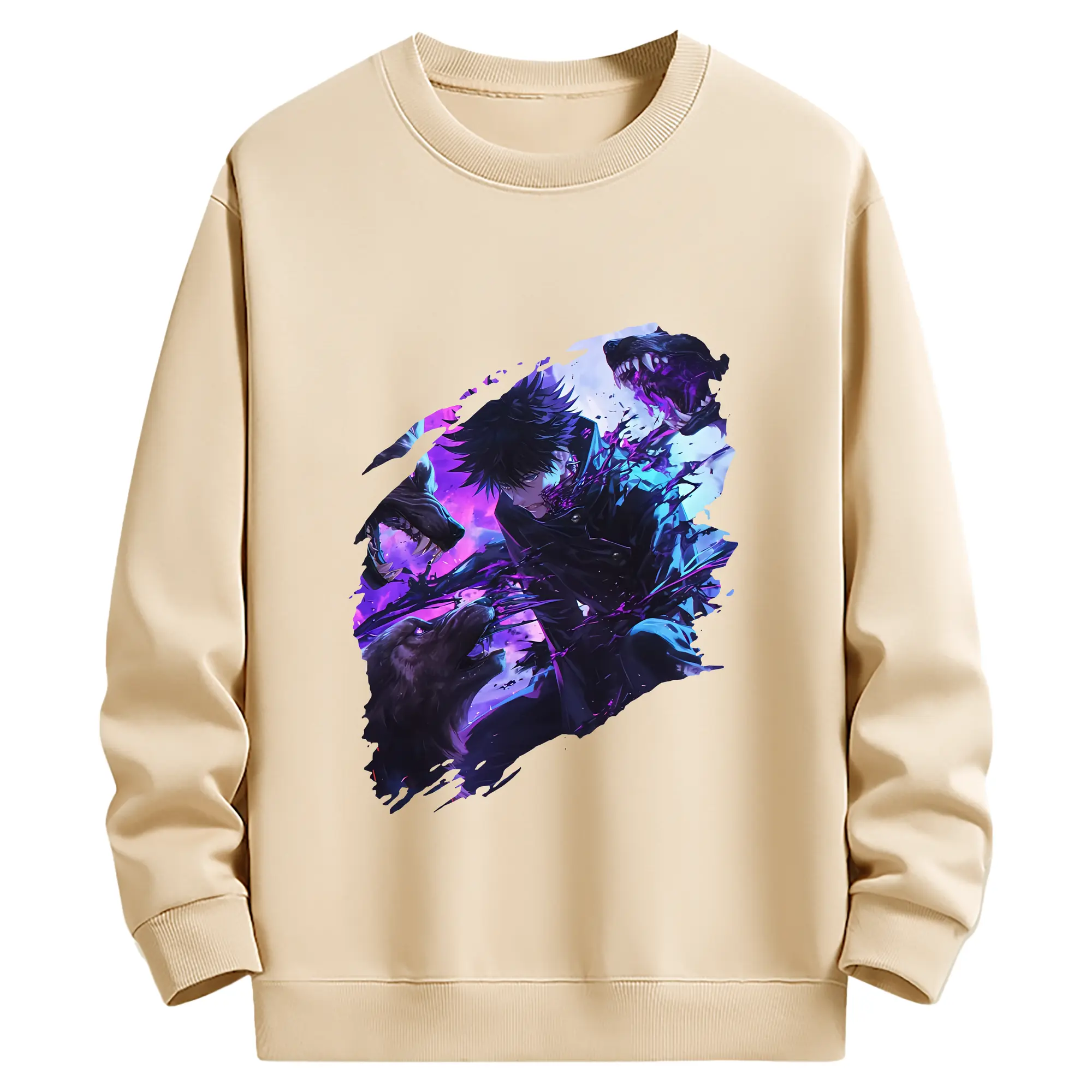 呪術廻戦 グッズ,伏黒 恵 - 薄手 クルーネック スウェット 裏毛260g · ポリエステル 春秋向け カジュアル 男女兼用 · トレーナー デイリー スポーツ 散歩に最適