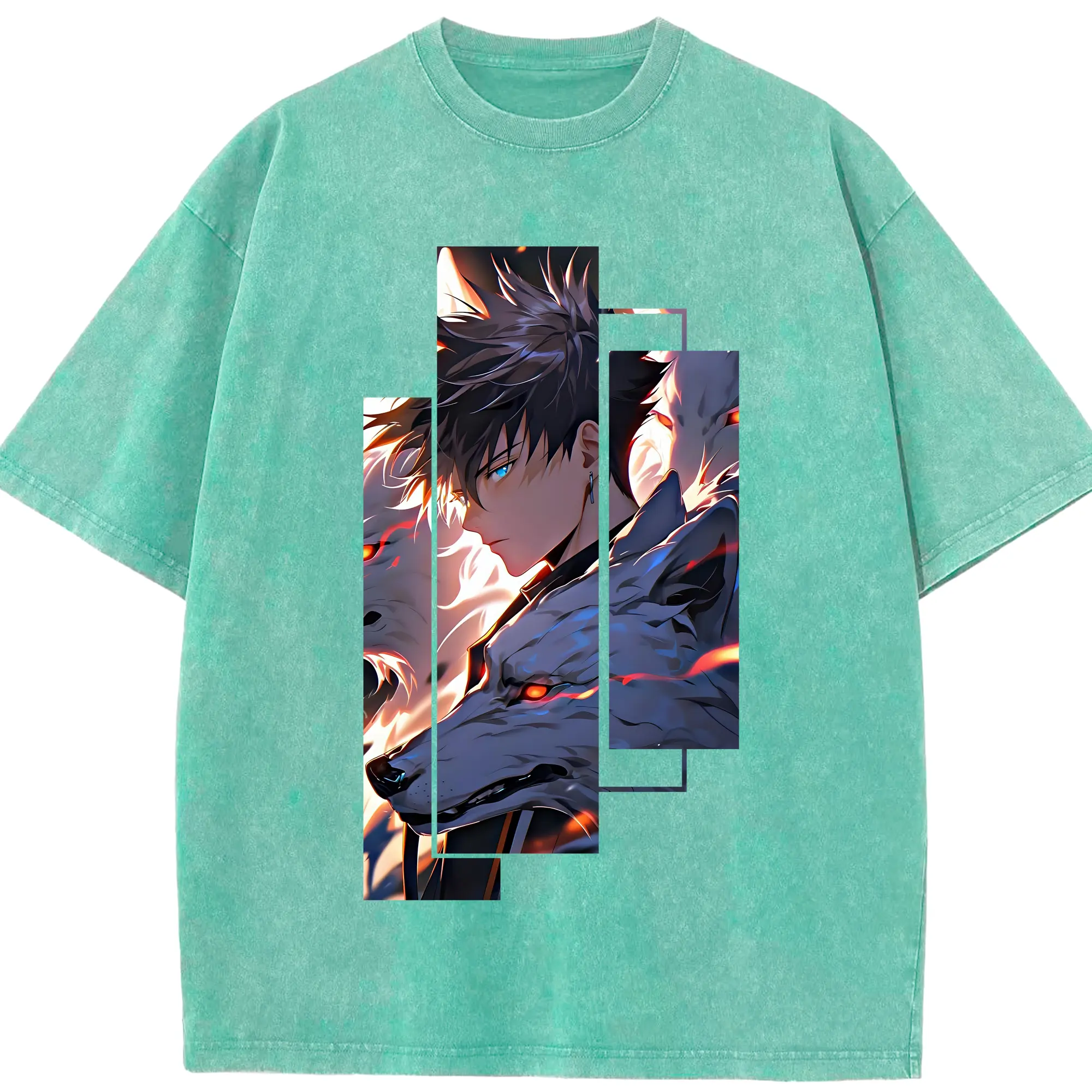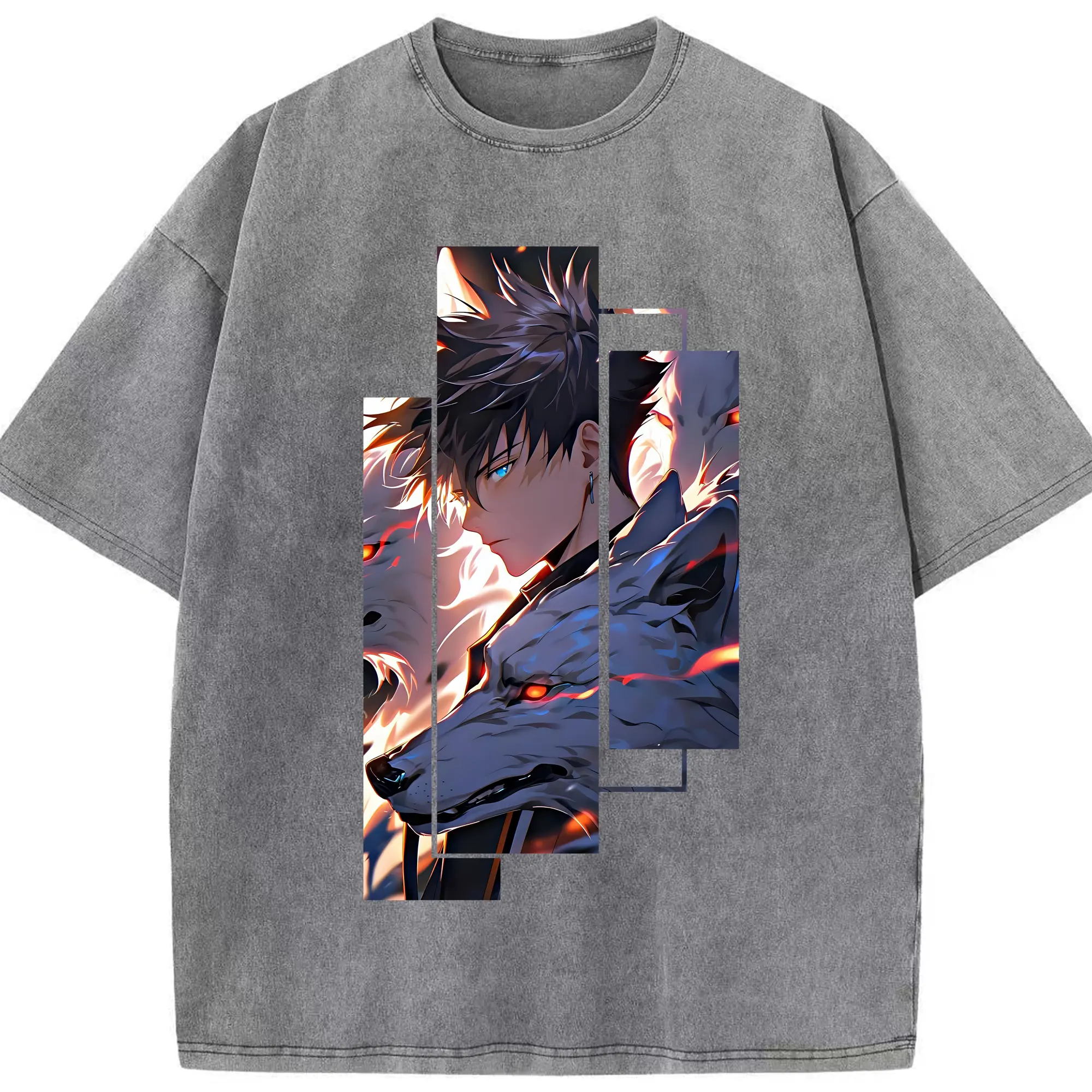 呪術廻戦 グッズ,伏黒 恵 - 綿100% 半袖Tシャツ ・ バックプリント ・ 快適 通気性 ・ 日常使い 散歩 スポーツ用