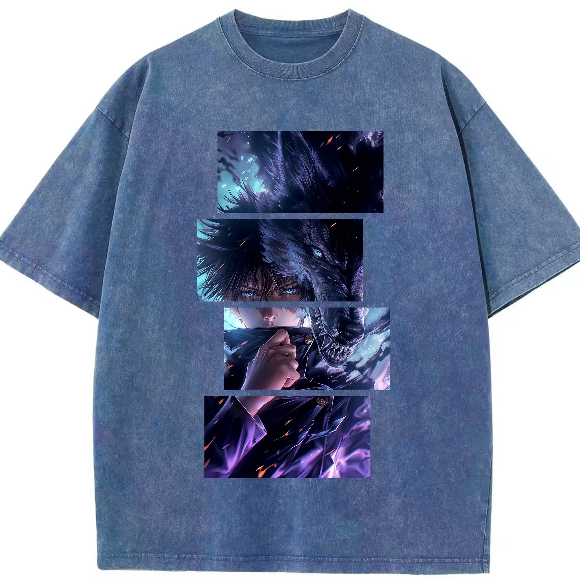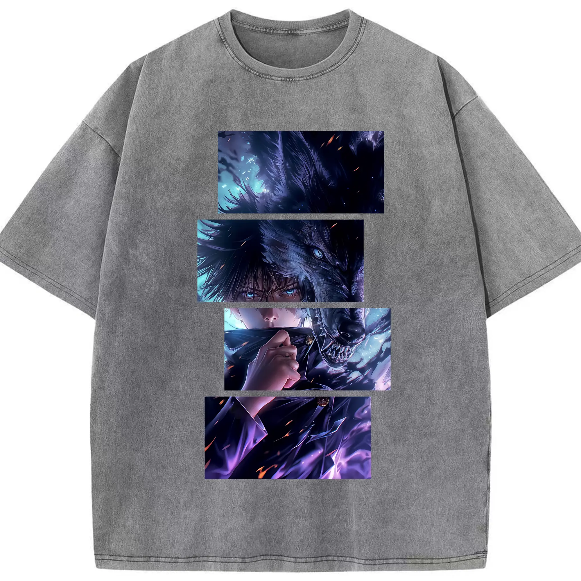 呪術廻戦 グッズ,伏黒 恵 - 綿100% 半袖Tシャツ ・ バックプリント ・ 快適 通気性 ・ 日常使い 散歩 スポーツ用