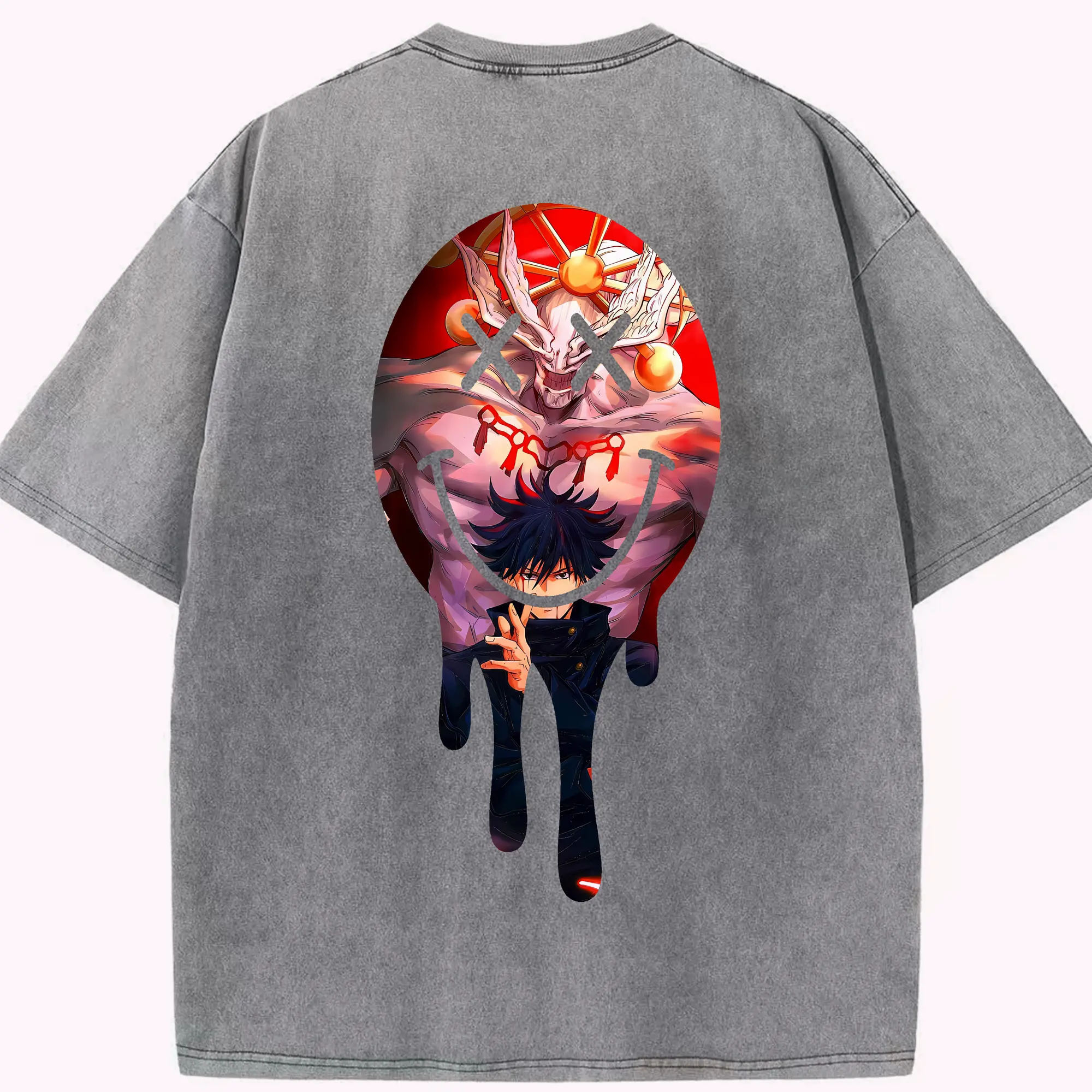 呪術廻戦 グッズ,伏黒 恵 - 綿100% 半袖Tシャツ ・ バックプリント ・ 快適 通気性 ・ 日常使い 散歩 スポーツ用