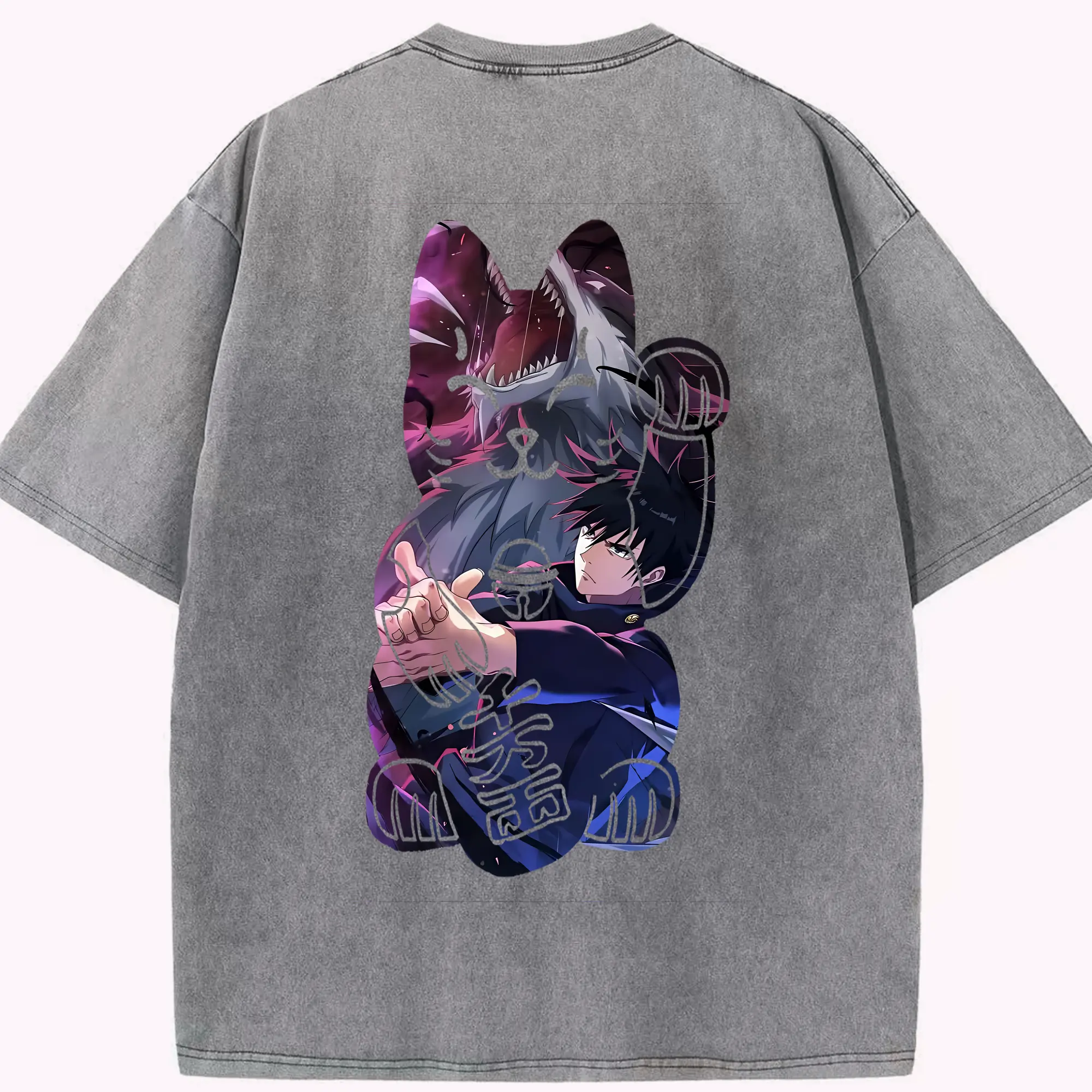 呪術廻戦 グッズ,伏黒 恵 - 綿100% 半袖Tシャツ ・ バックプリント ・ 快適 通気性 ・ 日常使い 散歩 スポーツ用