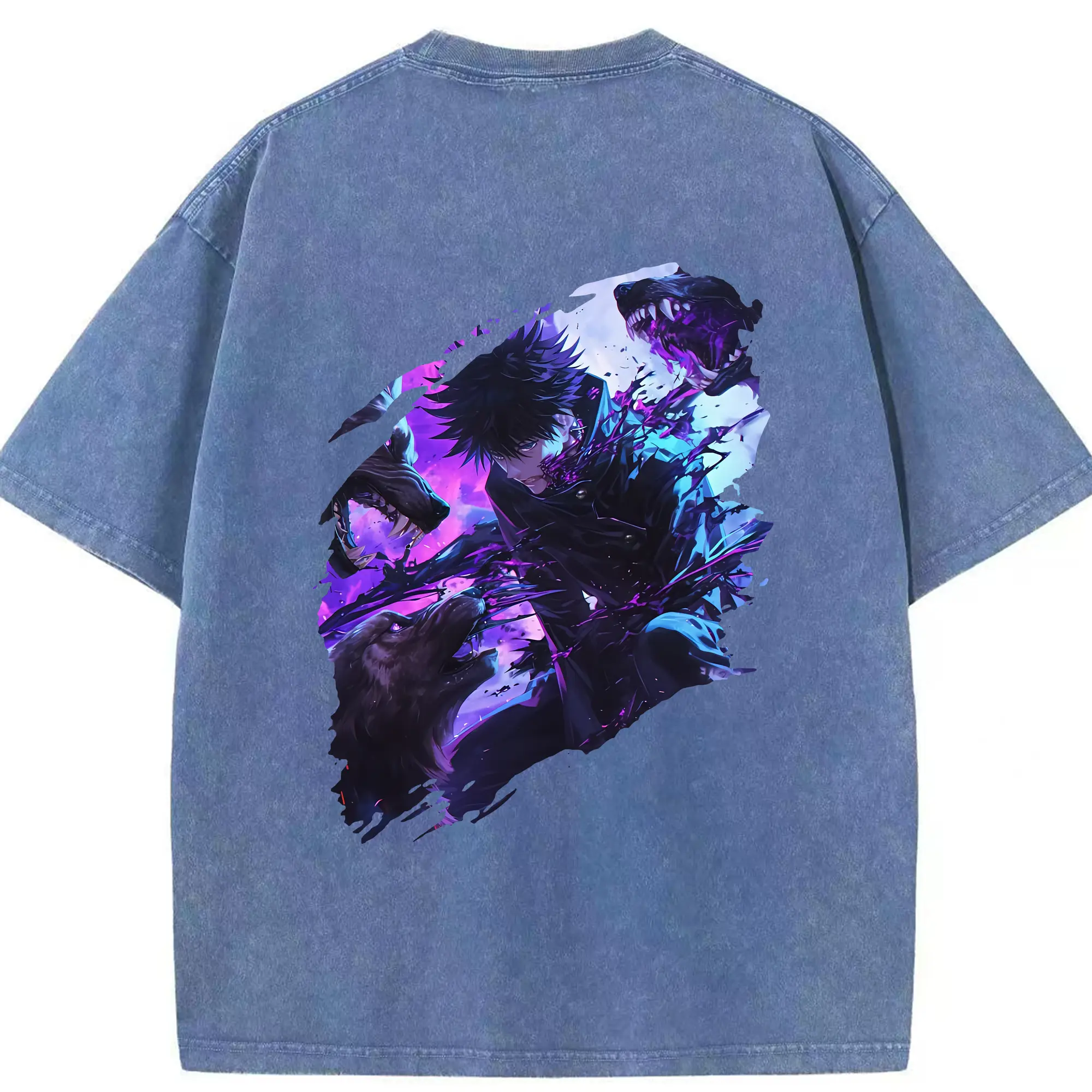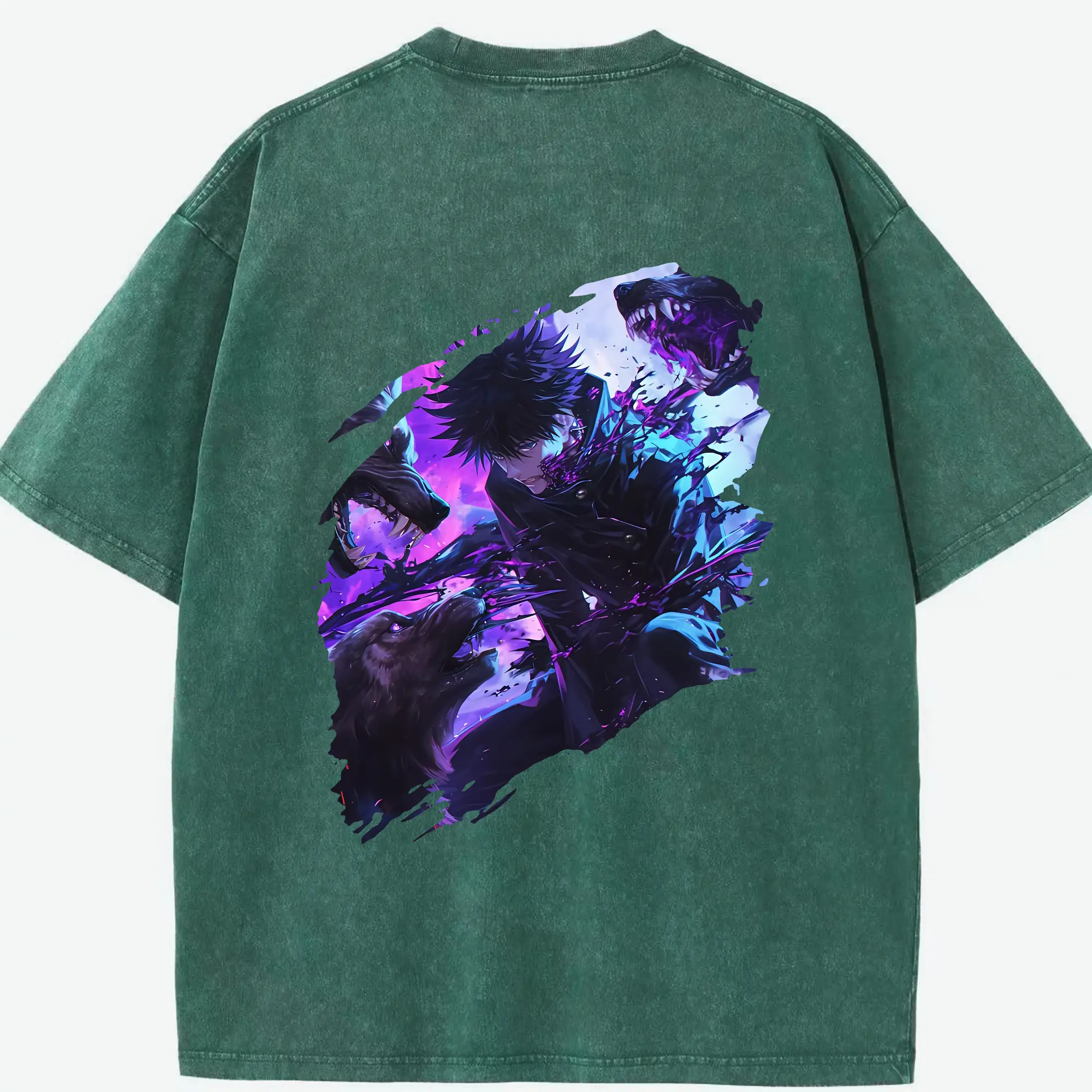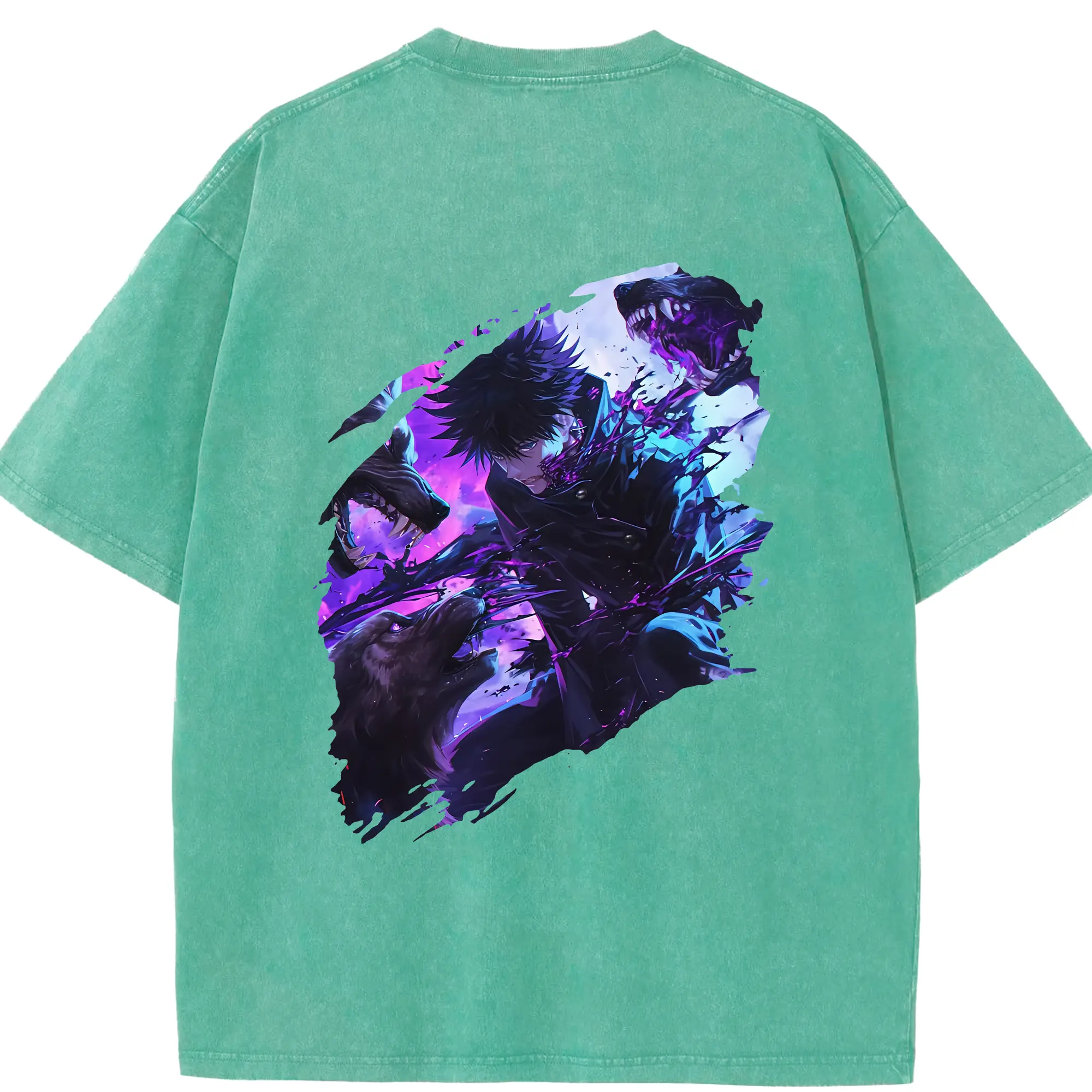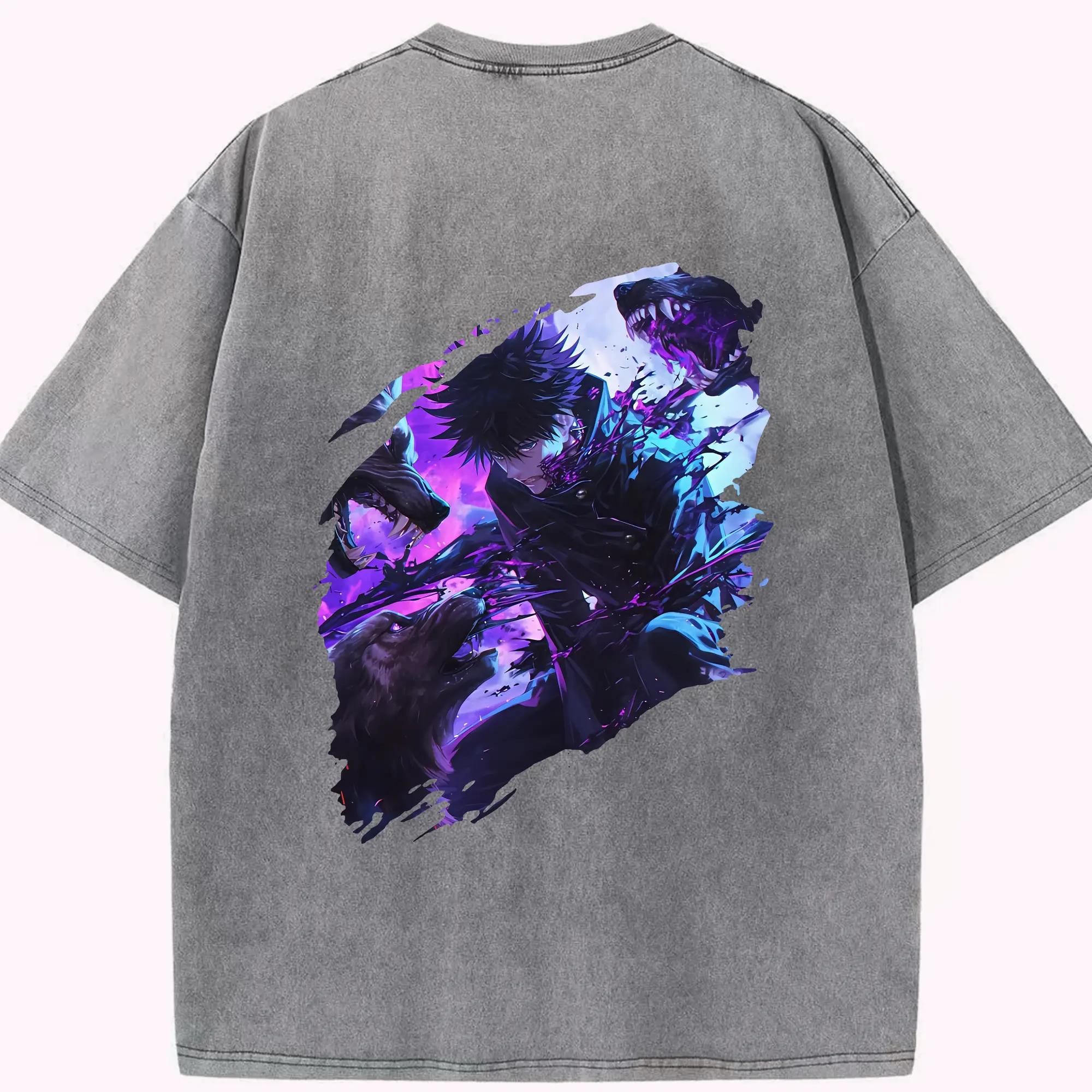 呪術廻戦 グッズ,伏黒 恵 - 綿100% ヴィンテージ風 半袖Tシャツ ・ 背面プリント ・ 柔らか肌触り ・ 通気性 快適 ・ スポーツ カジュアル 外出用