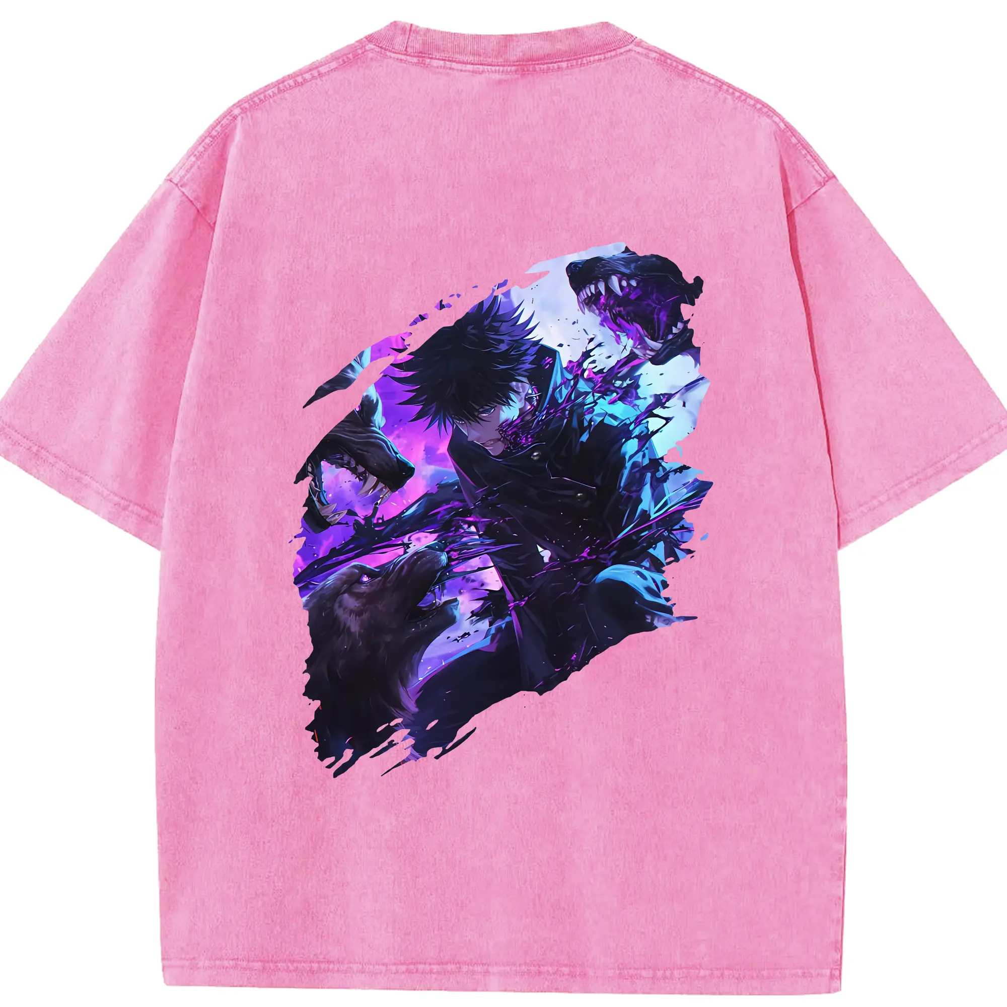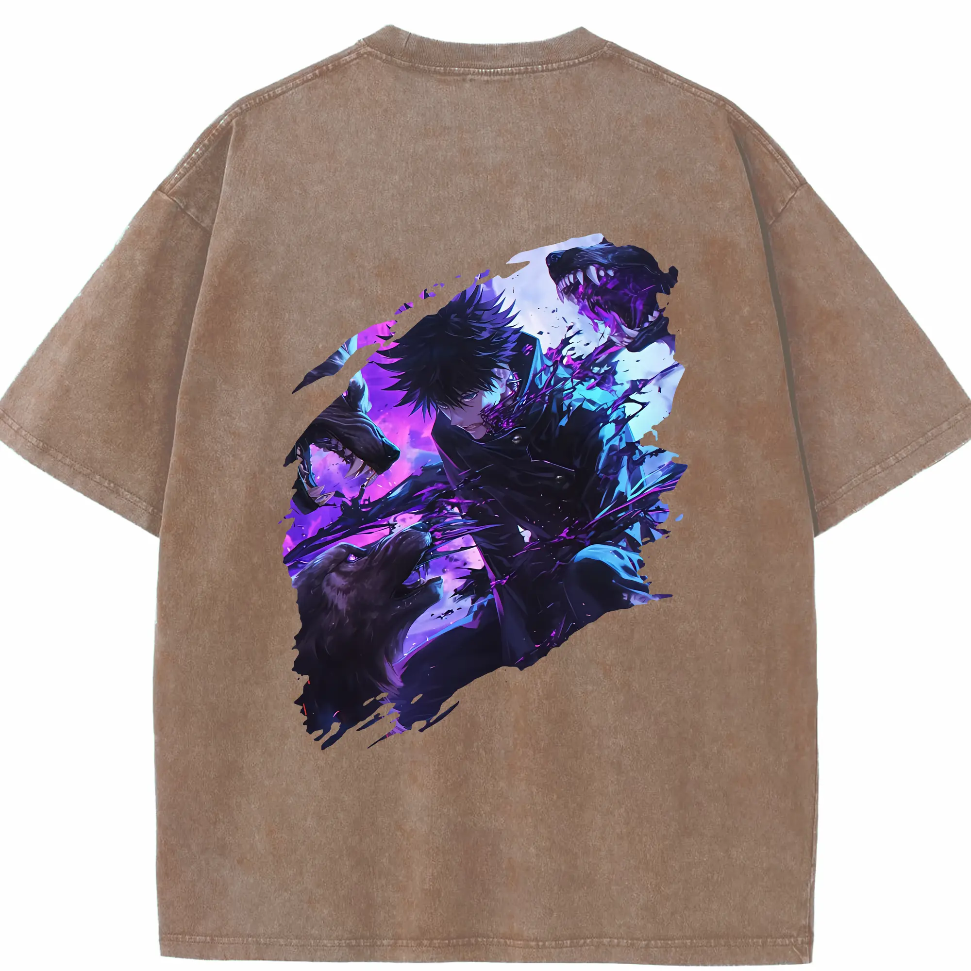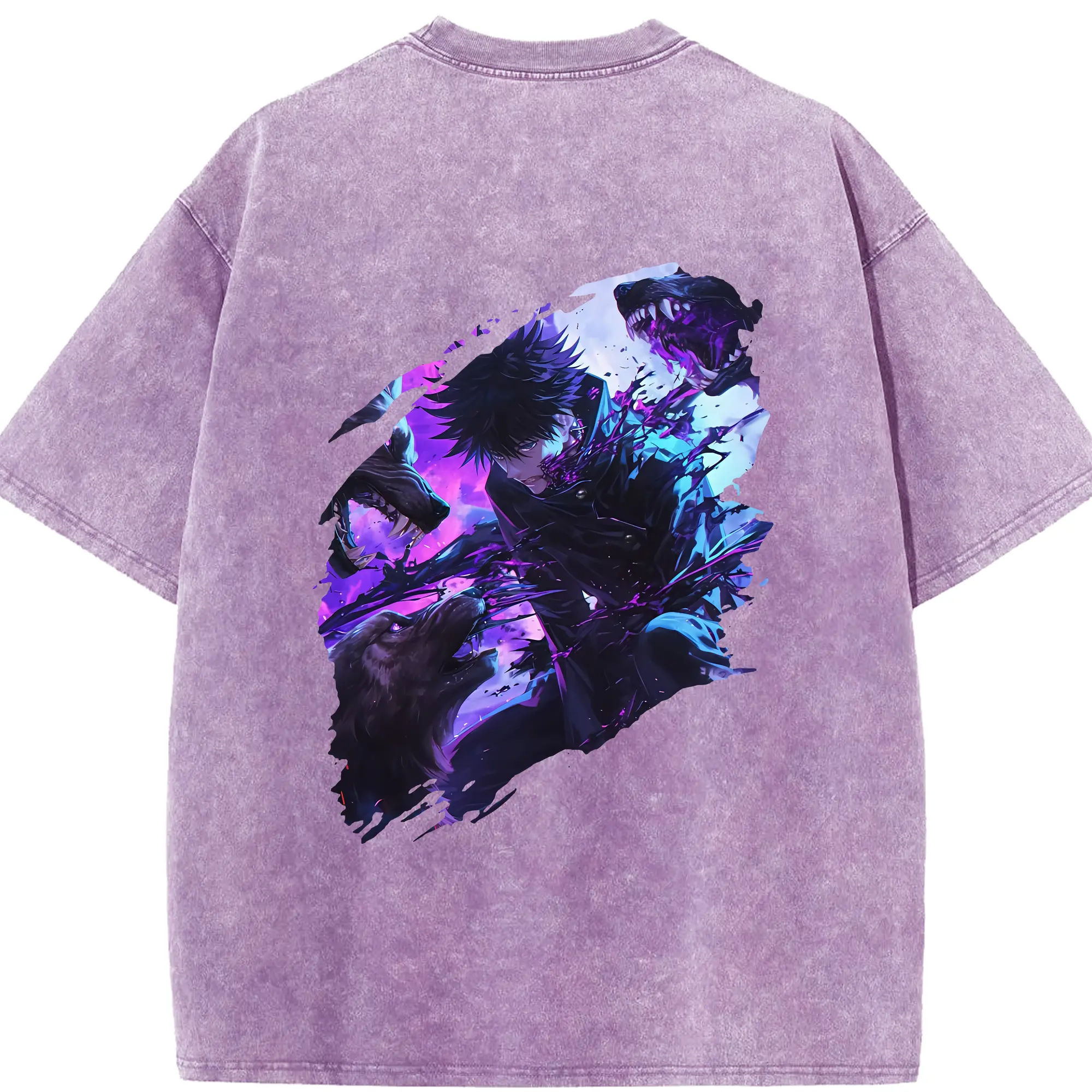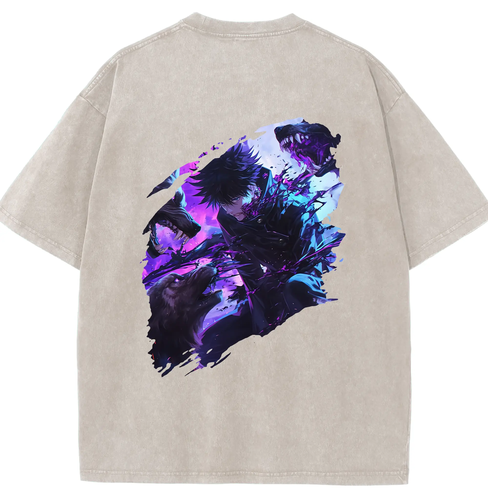 呪術廻戦 グッズ,伏黒 恵 - 綿100% ヴィンテージ風 半袖Tシャツ ・ 背面プリント ・ 柔らか肌触り ・ 通気性 快適 ・ スポーツ カジュアル 外出用