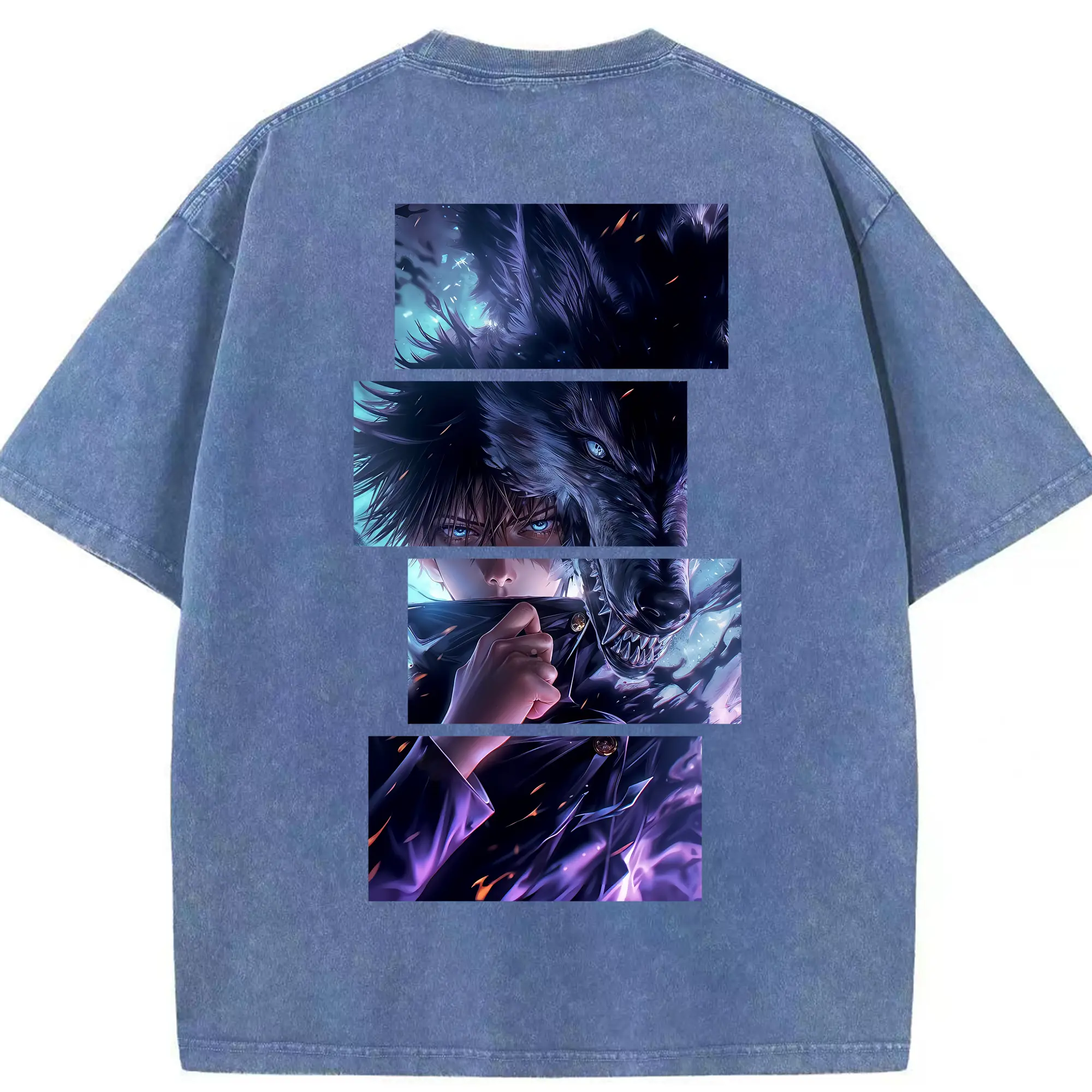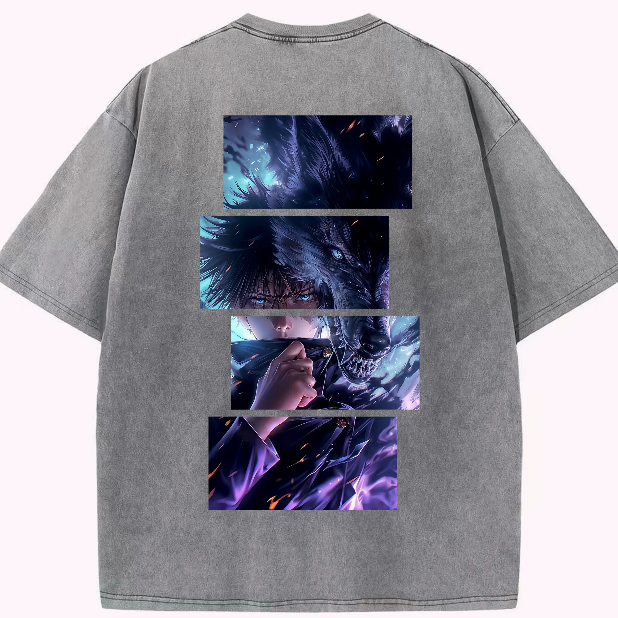 呪術廻戦 グッズ,伏黒 恵 - 綿100% 半袖Tシャツ ・ バックプリント ・ 快適 通気性 ・ 日常使い 散歩 スポーツ用