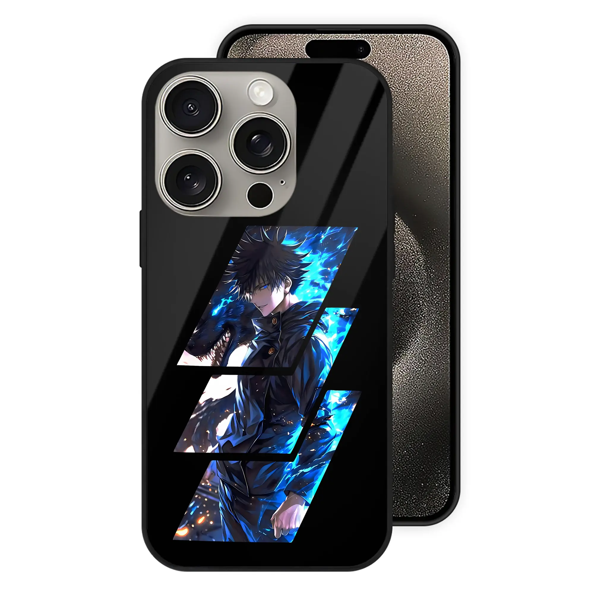 呪術廻戦 グッズ,伏黒 恵 - IPhone15Pro対応 ・ スマホケース ・ 背面ガラス ・ TPU+強化ガラス ・ 耐衝撃 ・ 黄変防止 ・ ワイヤレス充電対応 ・ 3D立体ボタン