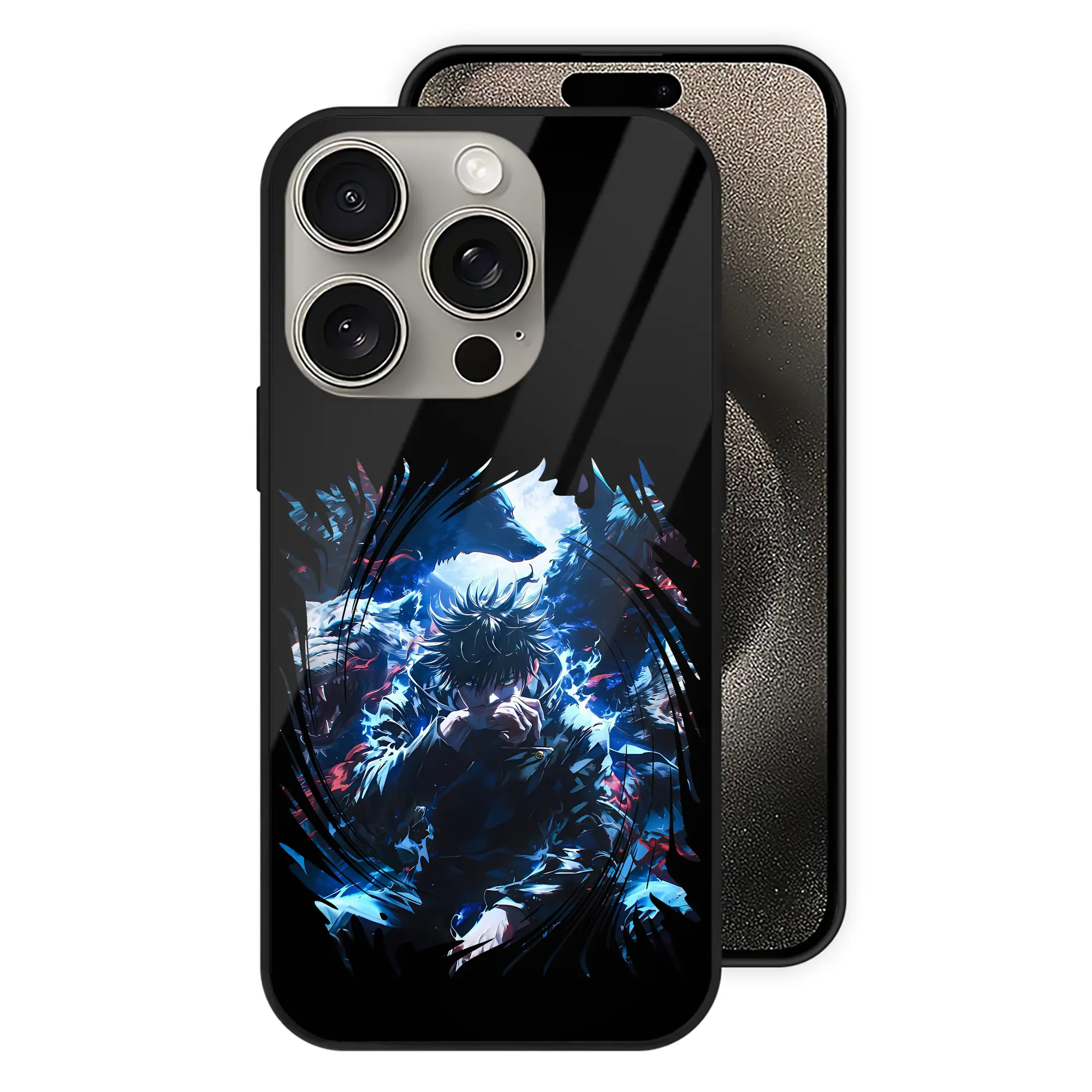 呪術廻戦 グッズ,伏黒 恵 - IPhone15Pro対応 ・ スマホケース ・ 背面ガラス ・ TPU+強化ガラス ・ 耐衝撃 ・ 黄変防止 ・ ワイヤレス充電対応 ・ 3D立体ボタン
