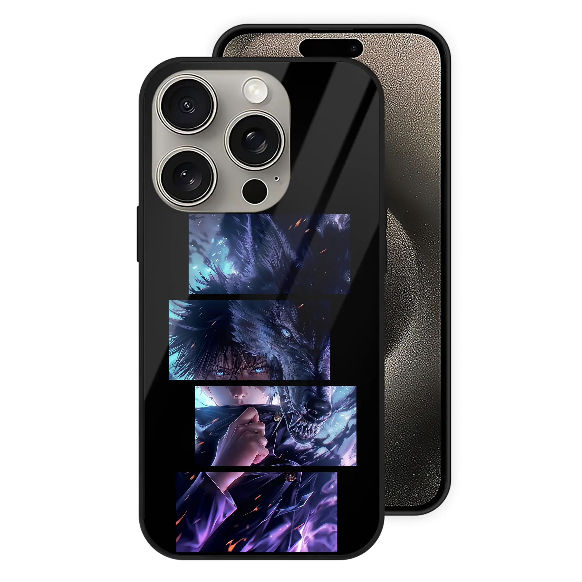 呪術廻戦 グッズ,伏黒 恵 - IPhone15Pro対応 ・ スマホケース ・ 背面ガラス ・ TPU+強化ガラス ・ 耐衝撃 ・ 黄変防止 ・ ワイヤレス充電対応 ・ 3D立体ボタン