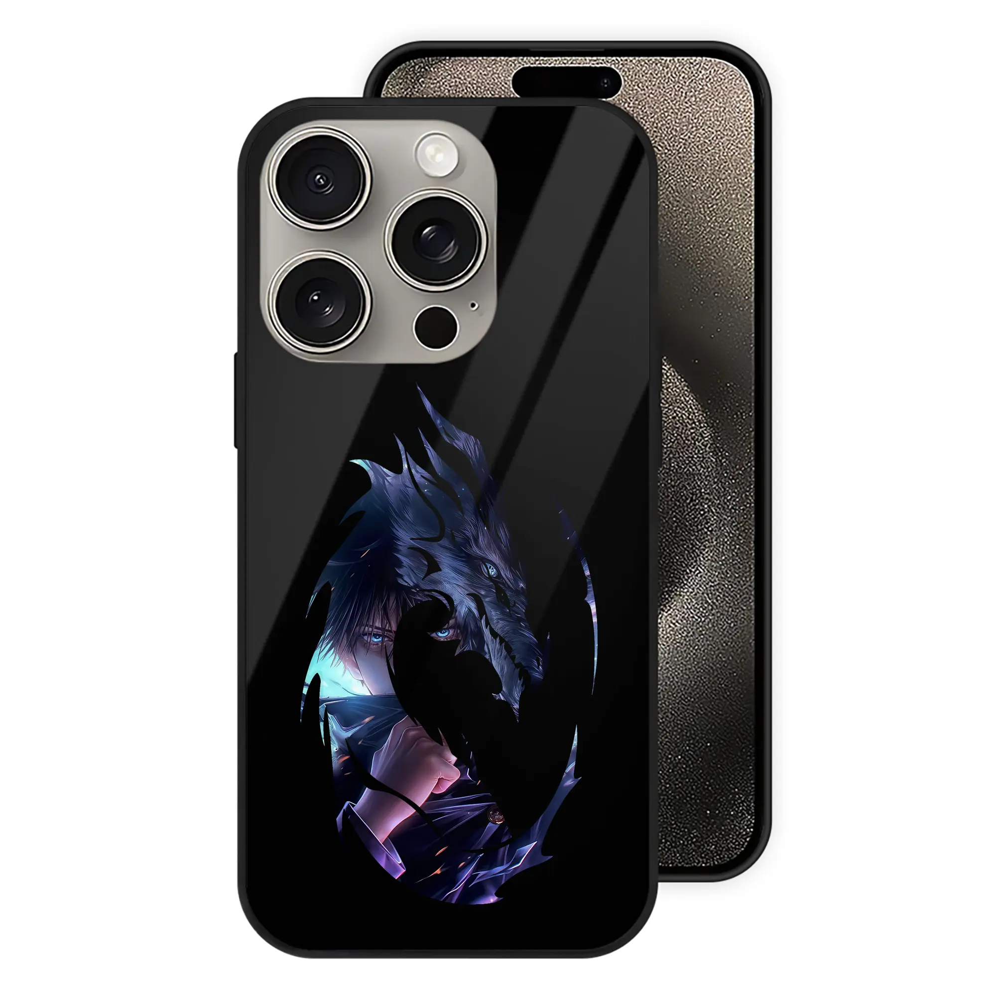呪術廻戦 グッズ,伏黒 恵 - IPhone15Pro対応 ・ スマホケース ・ 背面ガラス ・ TPU+強化ガラス ・ 耐衝撃 ・ 黄変防止 ・ ワイヤレス充電対応 ・ 3D立体ボタン