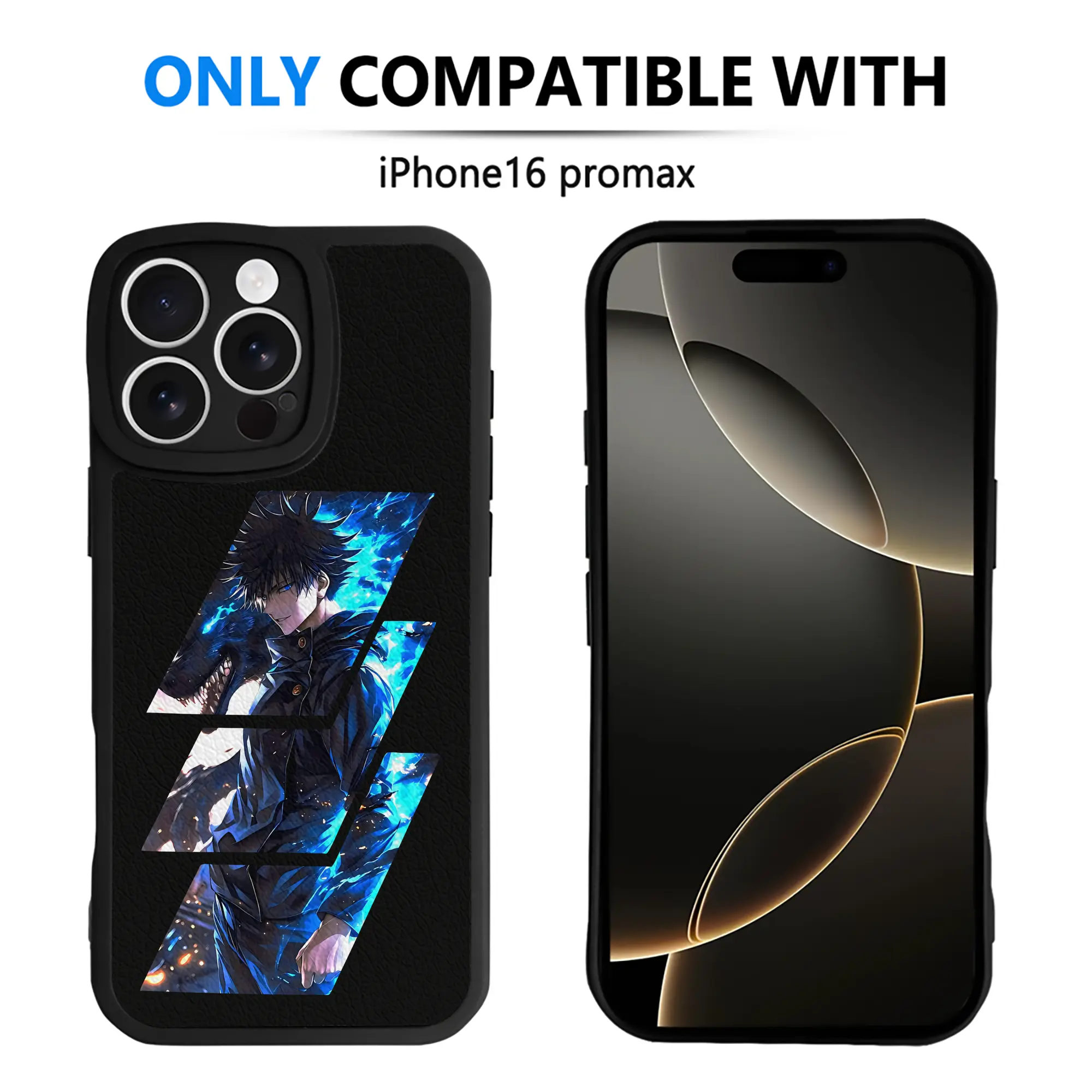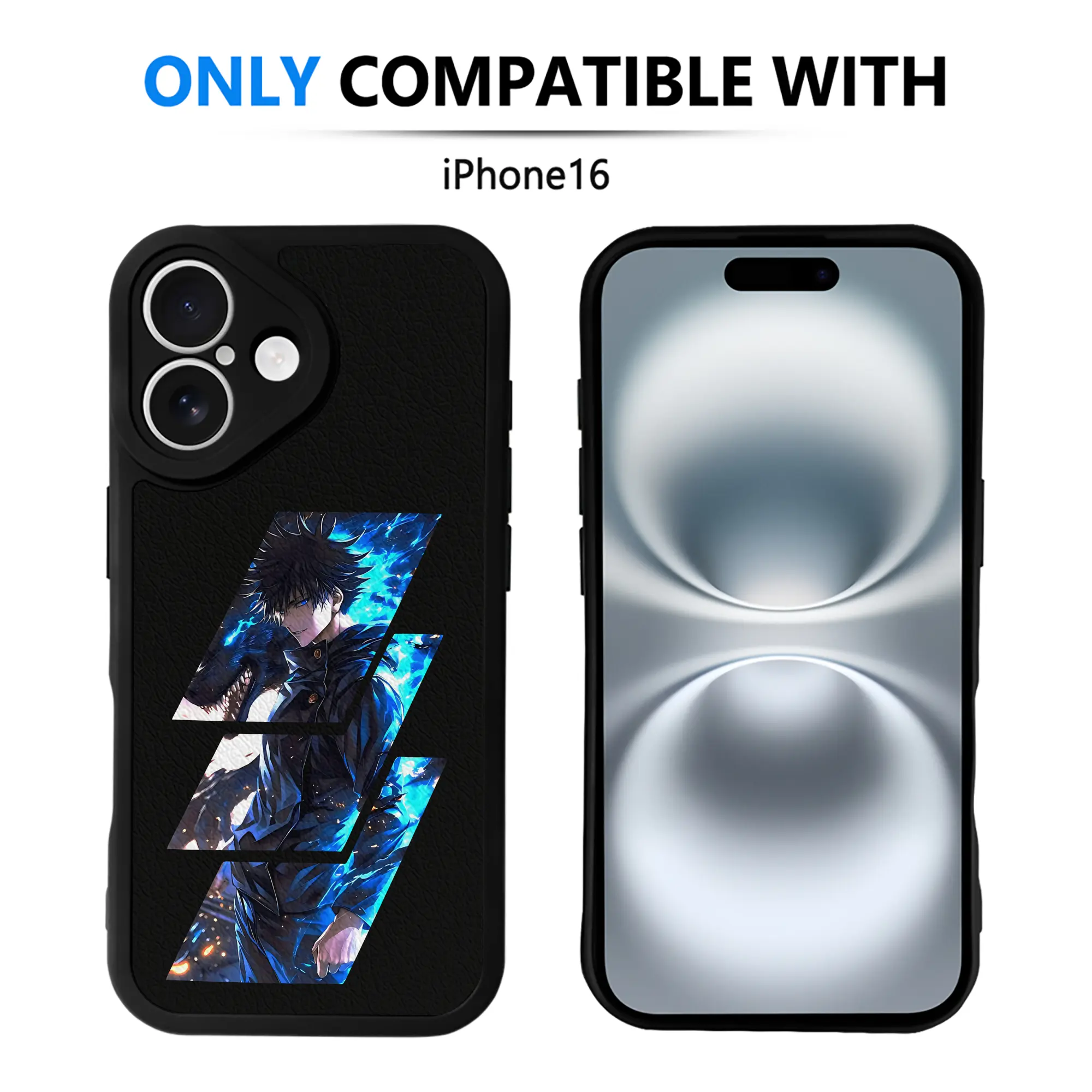 呪術廻戦 グッズ,伏黒 恵 - IPhone 16シリーズ対応 ・ シリコンスマホケース ・ レザー調 ・ 高精度フィット ・ 耐衝撃 ・ ワイヤレス充電対応 ・ 精密カット