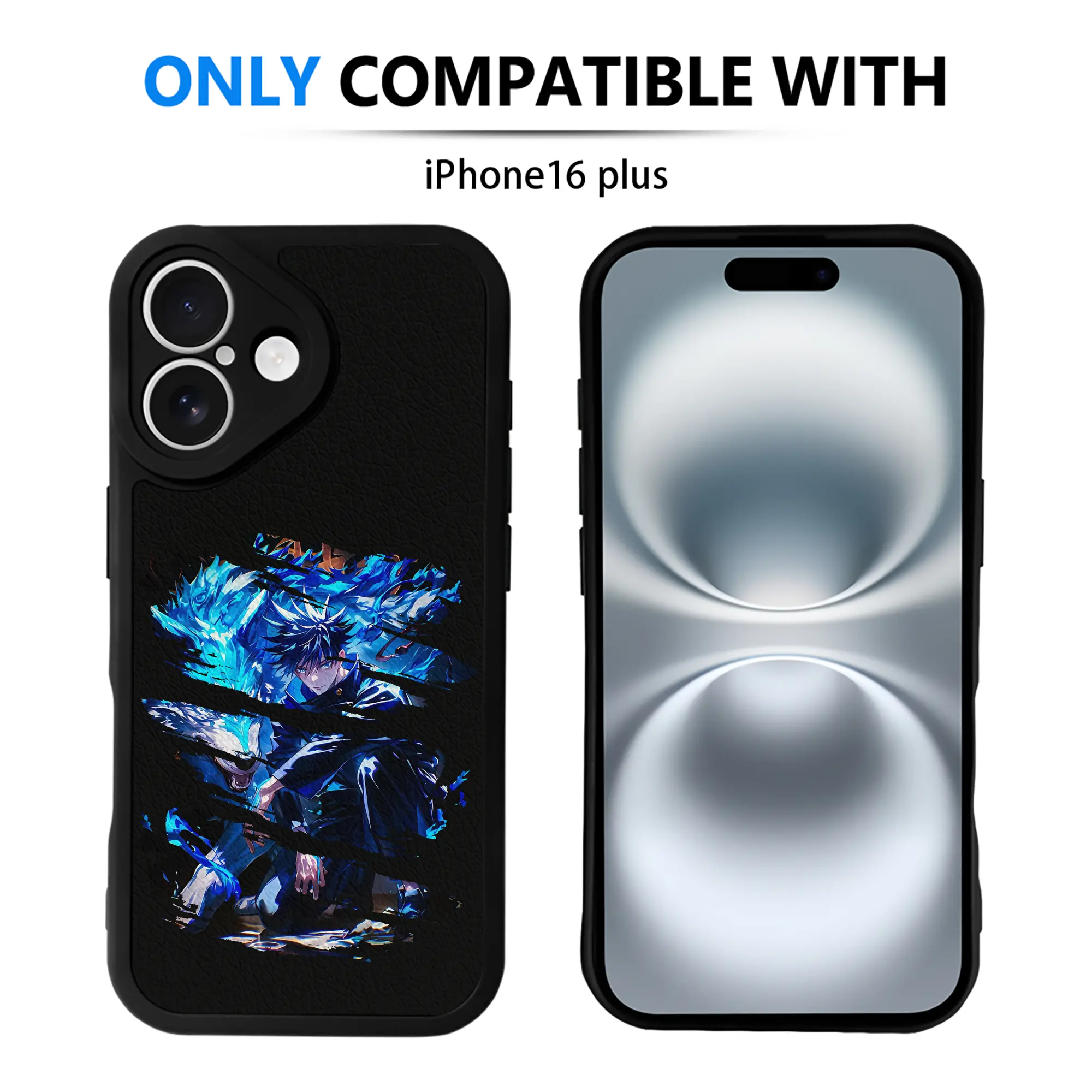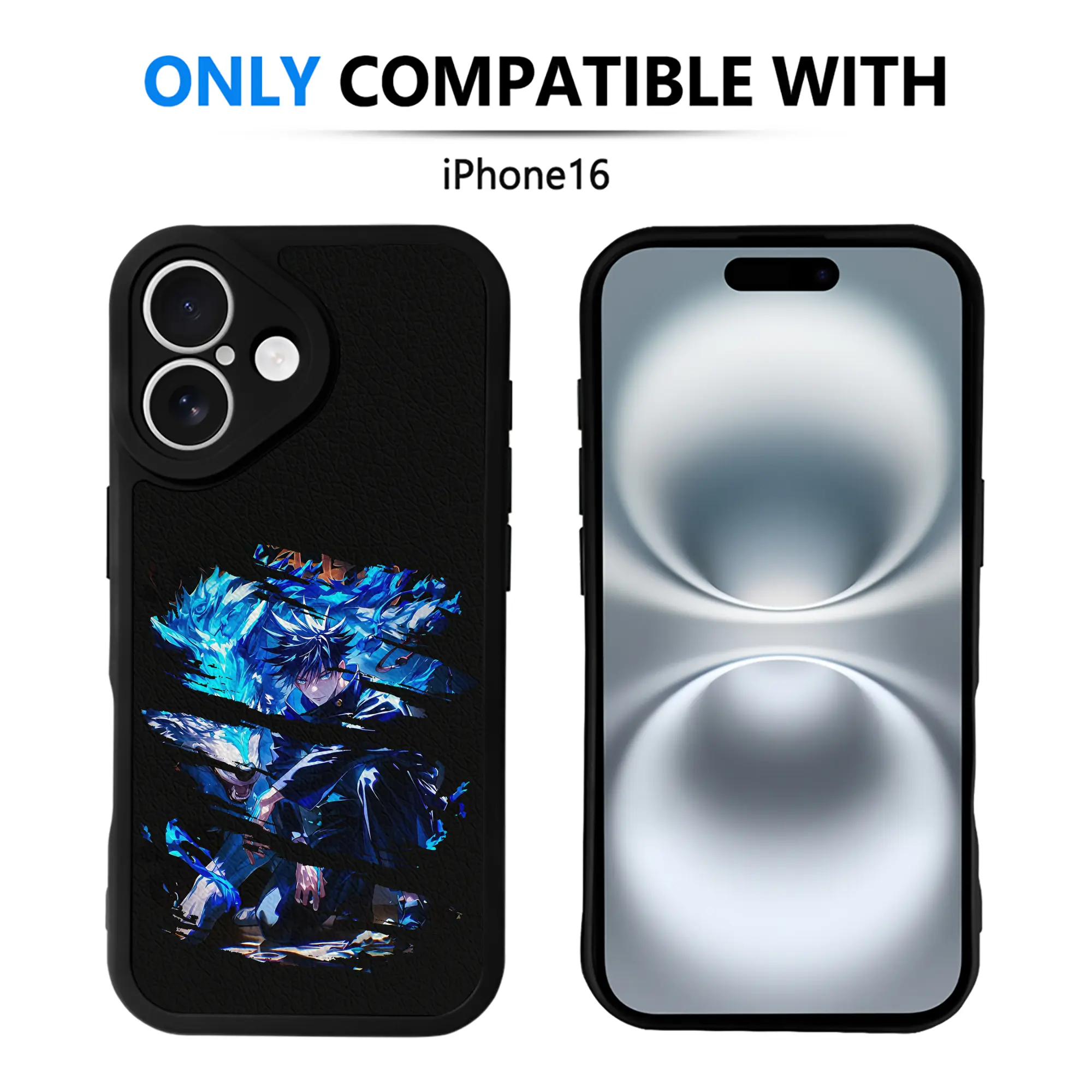 呪術廻戦 グッズ,伏黒 恵 - IPhone 16シリーズ対応 ・ シリコンスマホケース ・ レザー調 ・ 高精度フィット ・ 耐衝撃 ・ ワイヤレス充電対応 ・ 精密カット