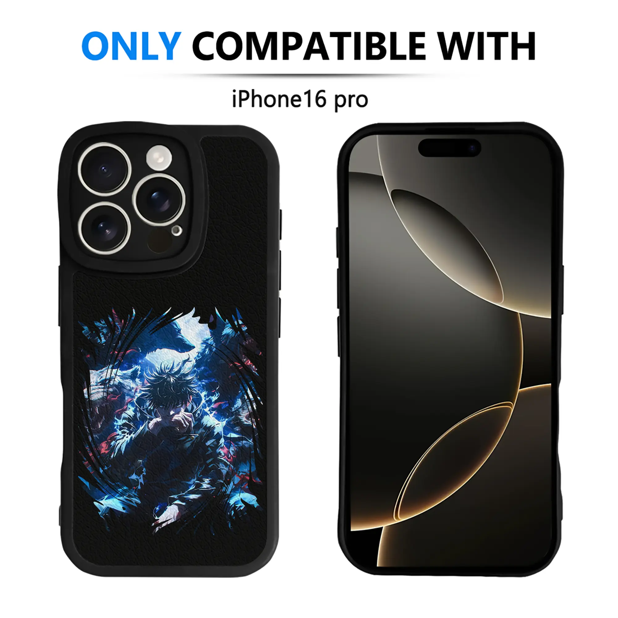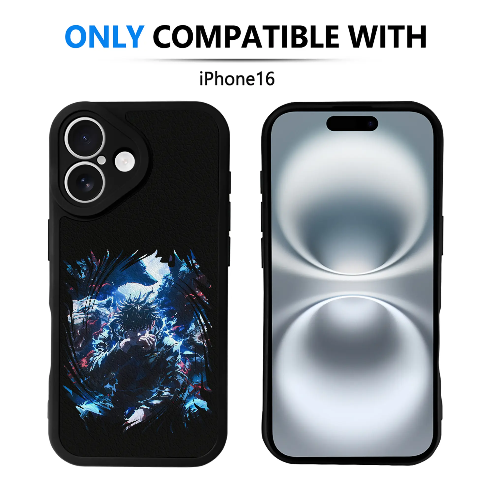 呪術廻戦 グッズ,伏黒 恵 - IPhone 16シリーズ対応 ・ シリコンスマホケース ・ レザー調 ・ 高精度フィット ・ 耐衝撃 ・ ワイヤレス充電対応 ・ 精密カット